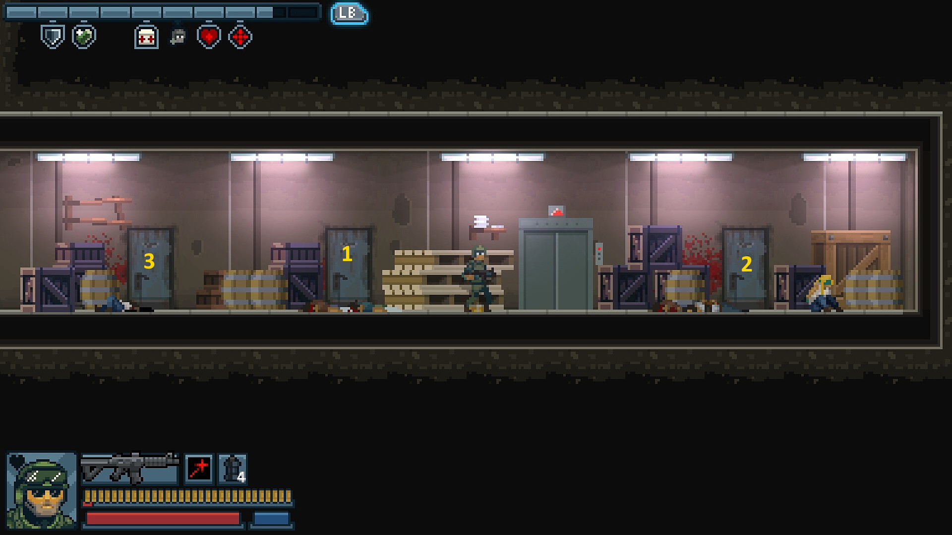 - ここの敵はランダムっぽい。ランダムなのは配置場所ではなく敵の種類。1回目にギャングがいた場所がショットガン持ちになっている場所がある