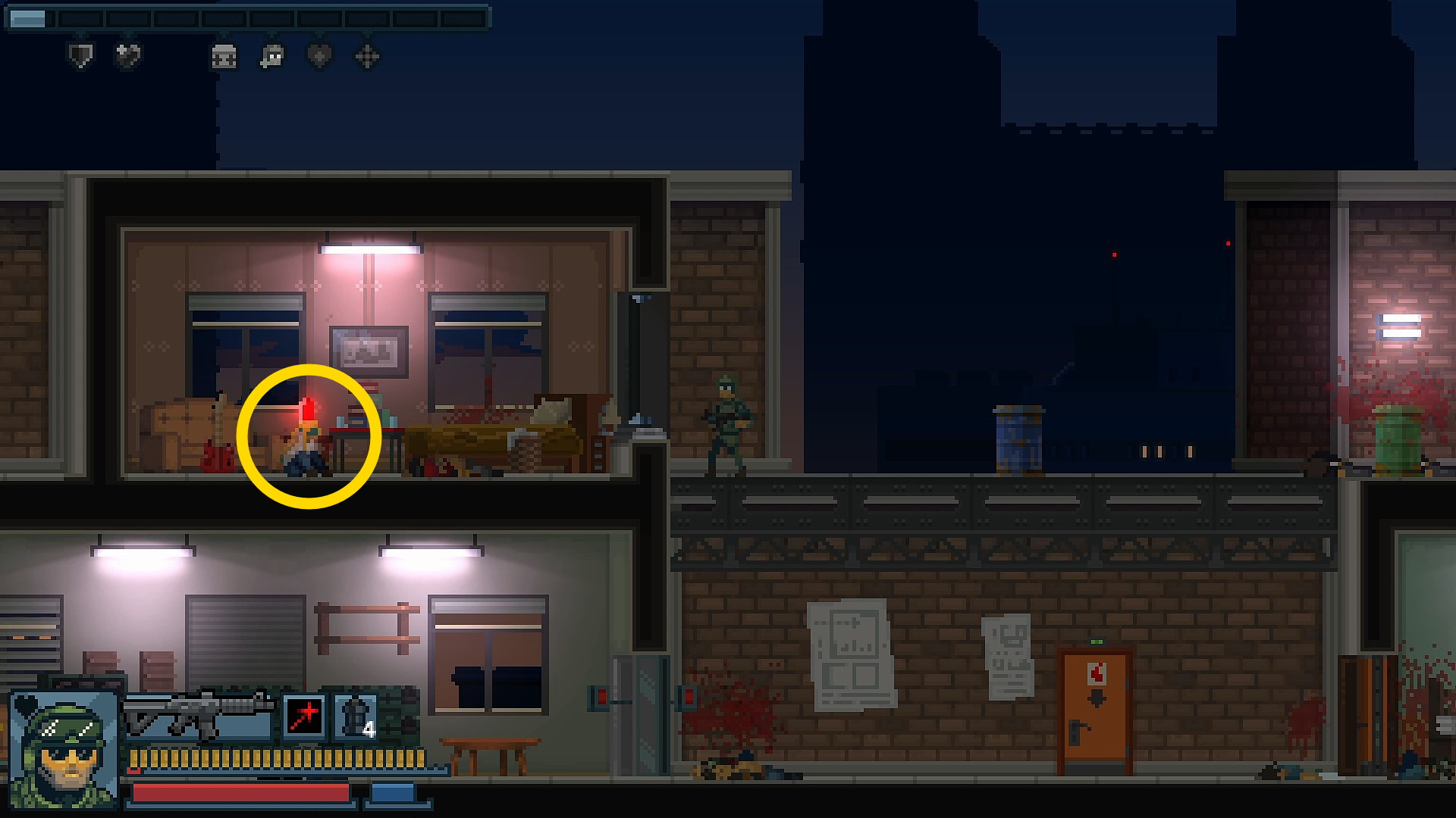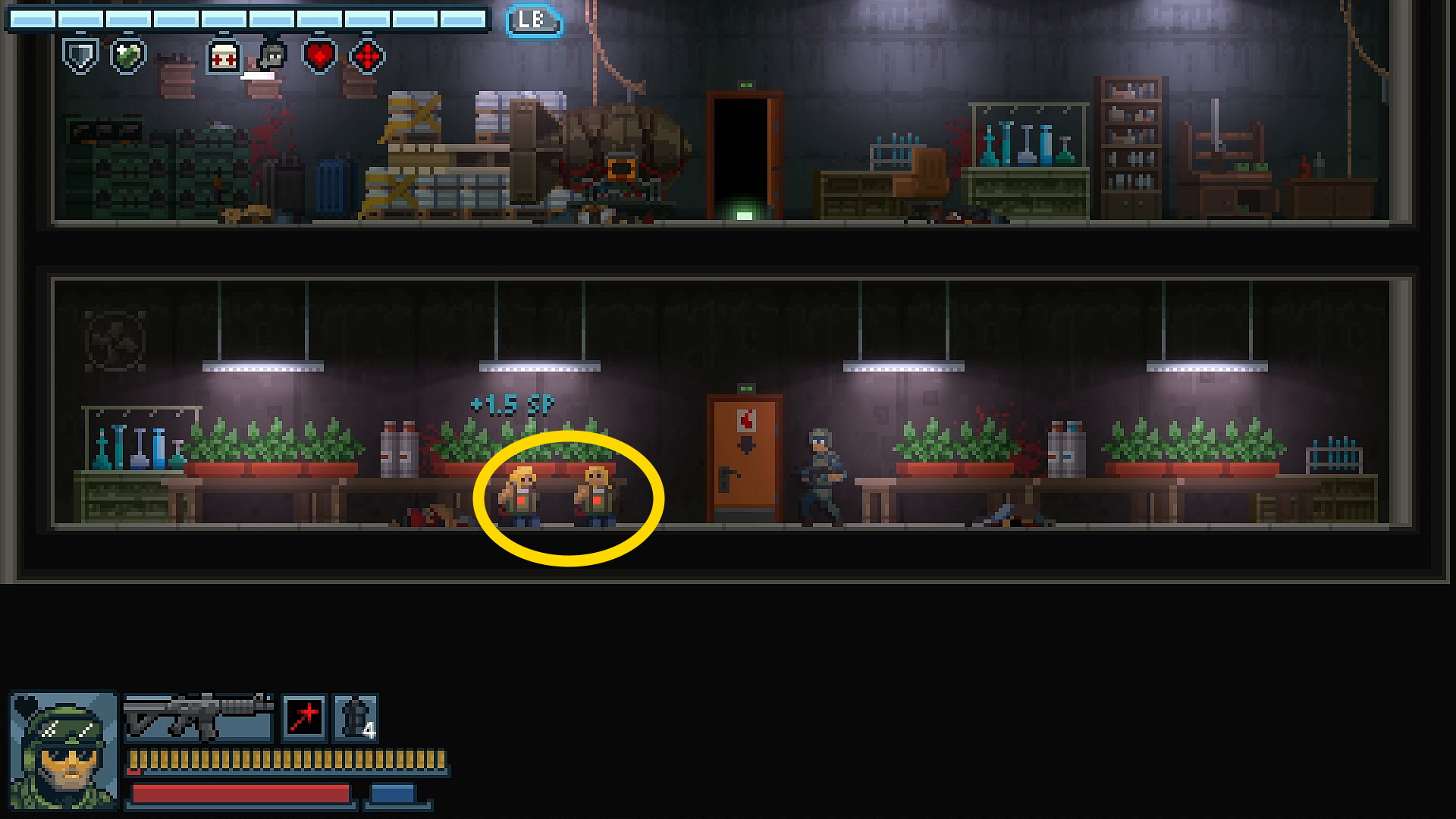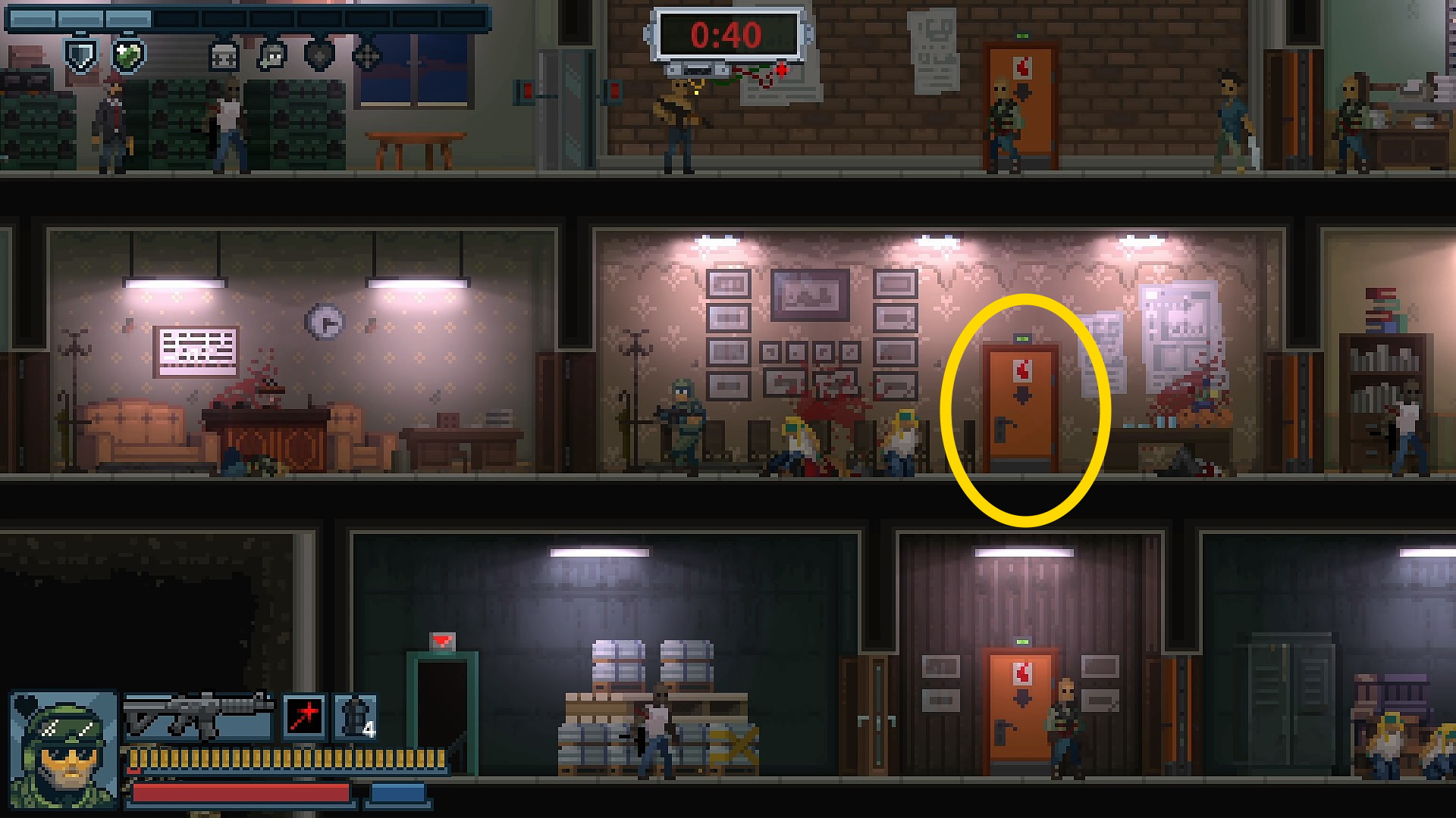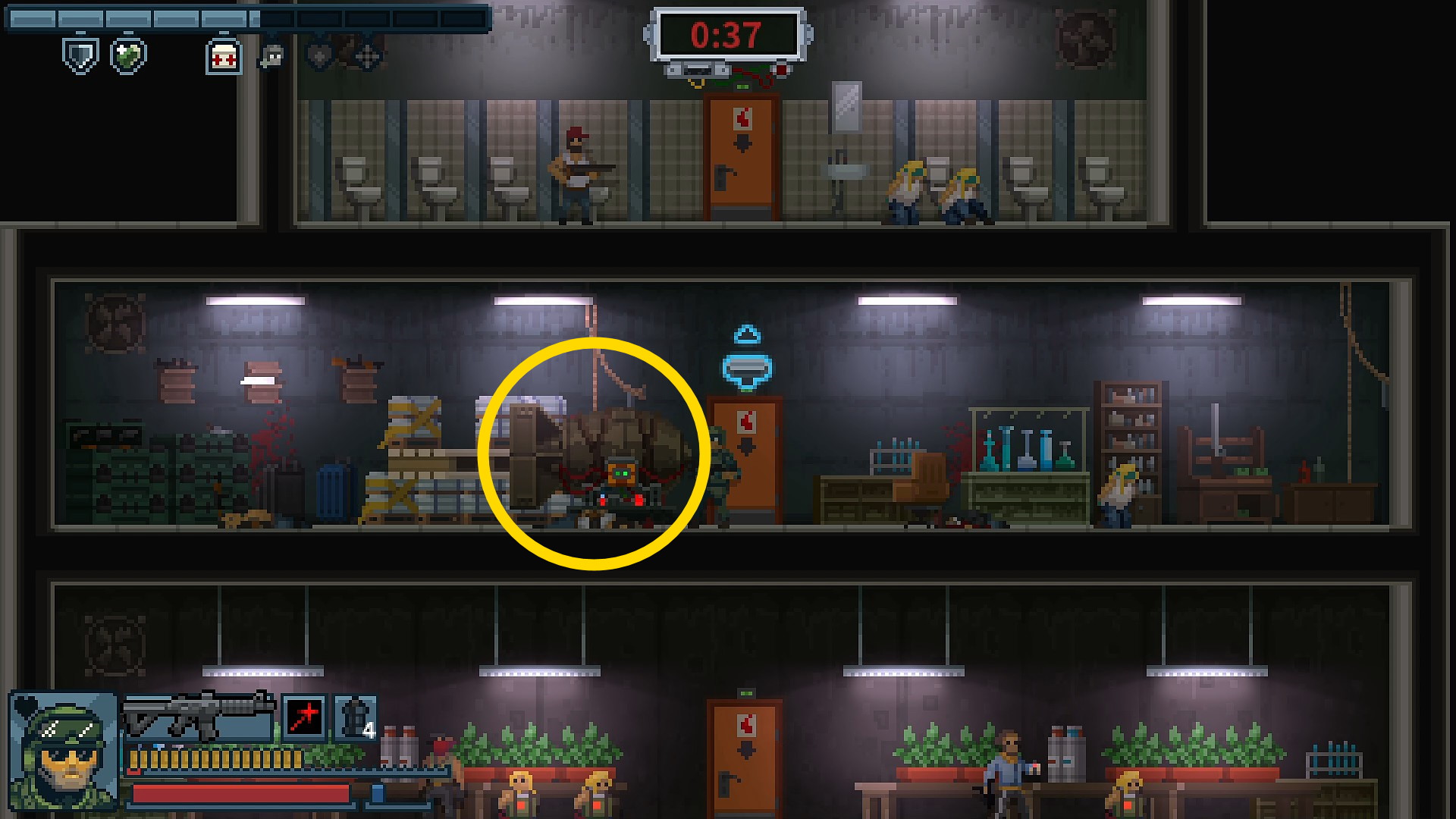 - ショットガン持ち、ハット、ランボーがいる部屋に爆弾がある