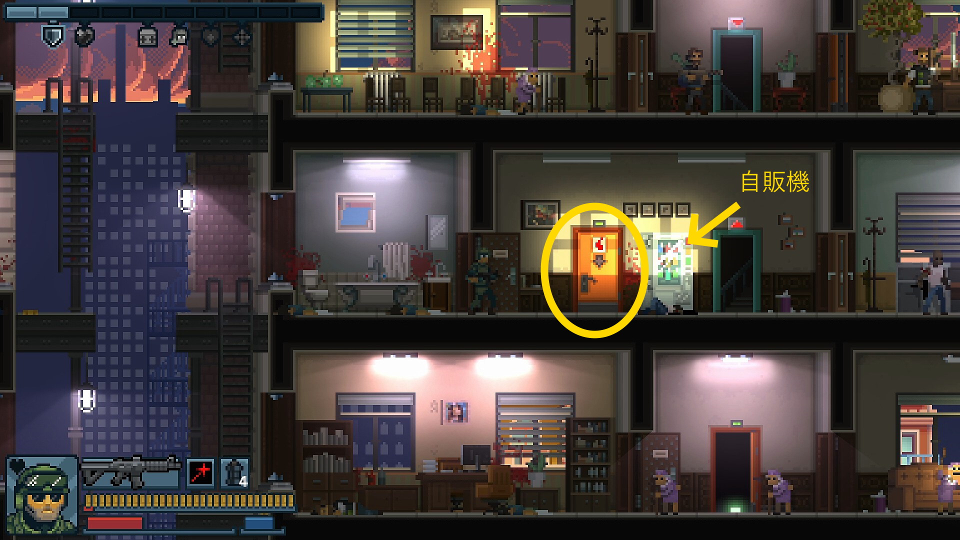 - 個人的に一番注意したいのが3番目の建物の4階にあるドア(自販機がある)
