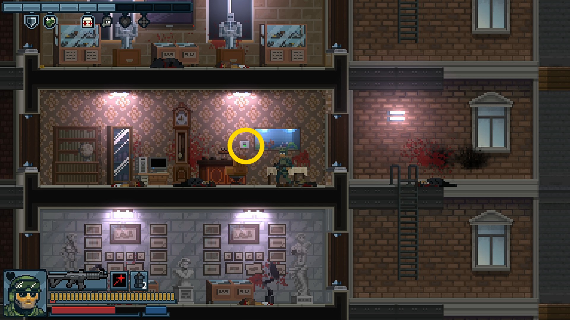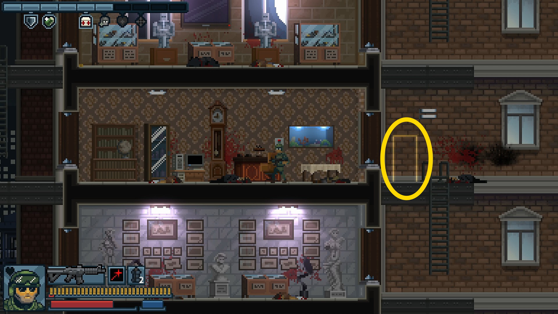 • 2つの建物があり、屋上と地下、それぞれでつながっているので好みのルートから侵入するとよい
