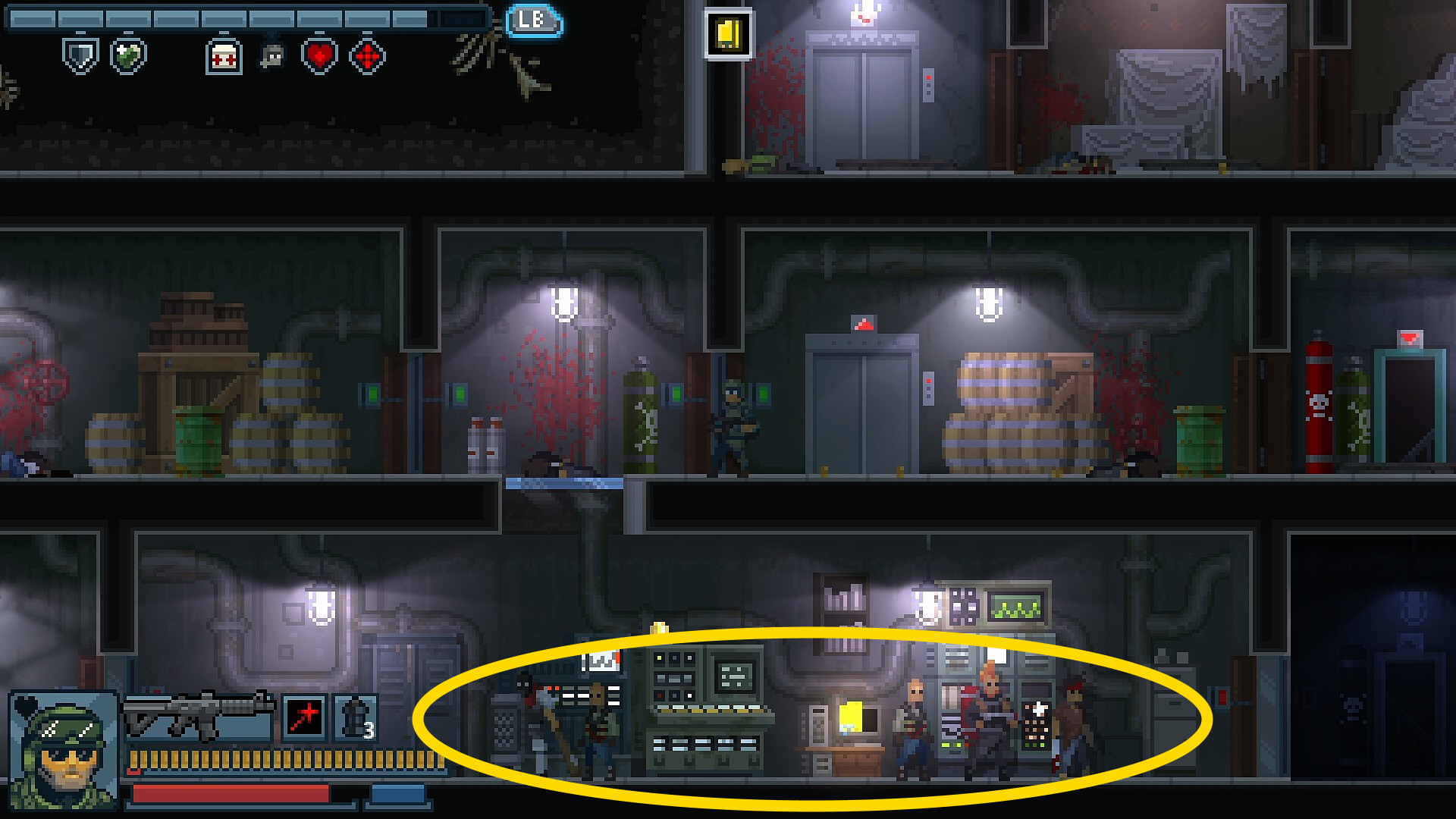 • 最下層、火炎放射器持ち、シールダーらがいるのでカードキーでドアを開けたら上階にすぐ避難してタイミングを計る