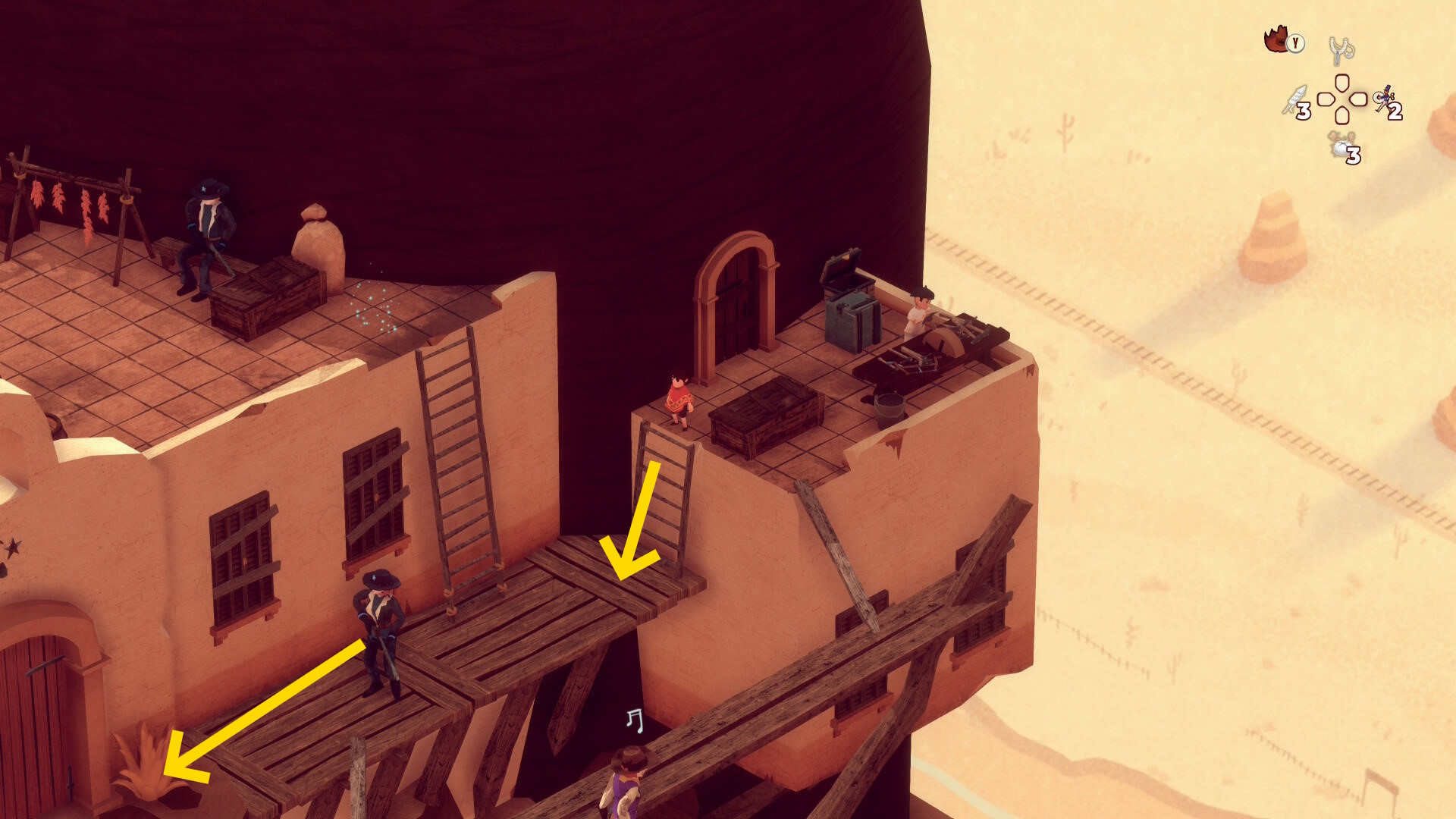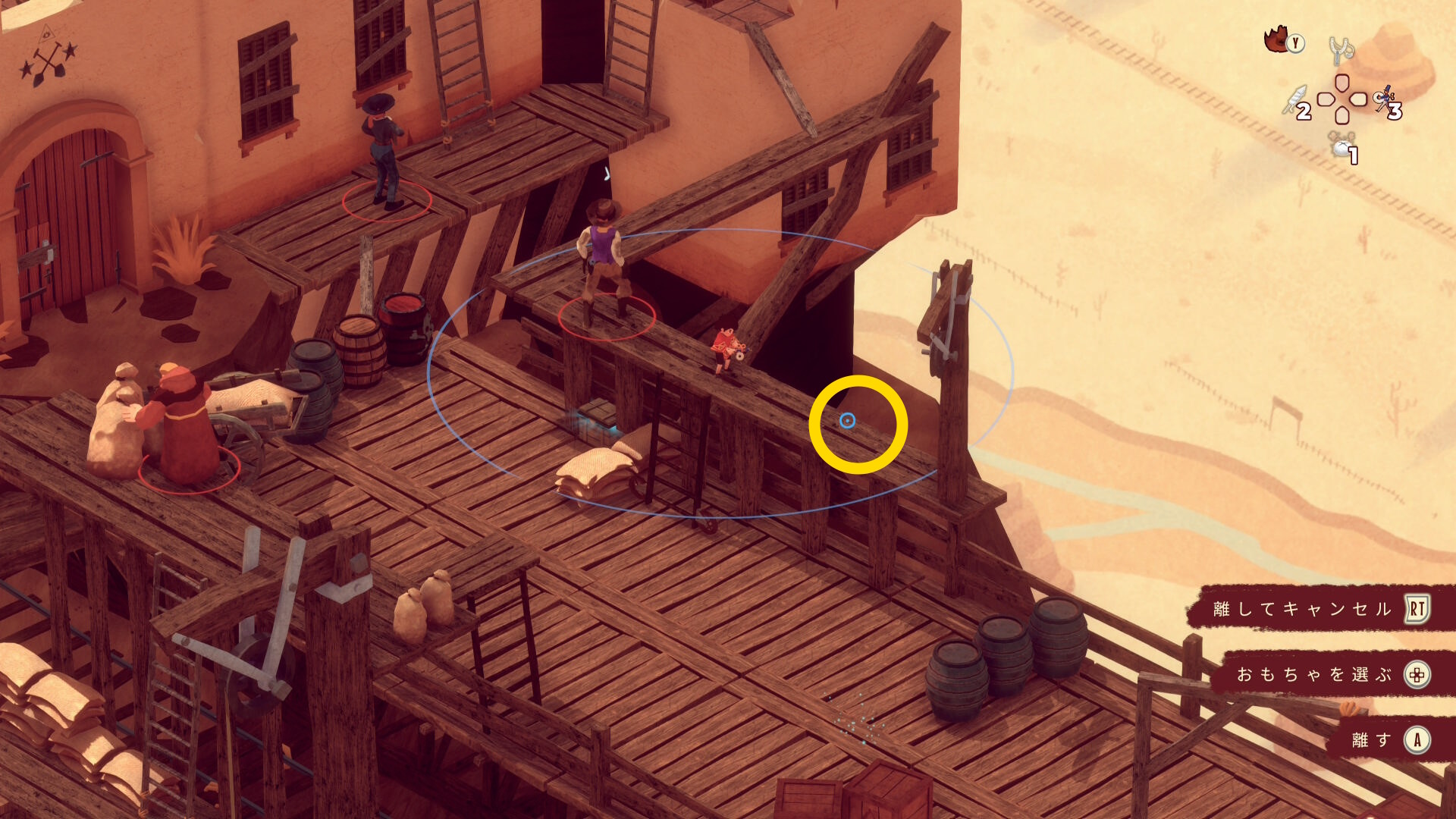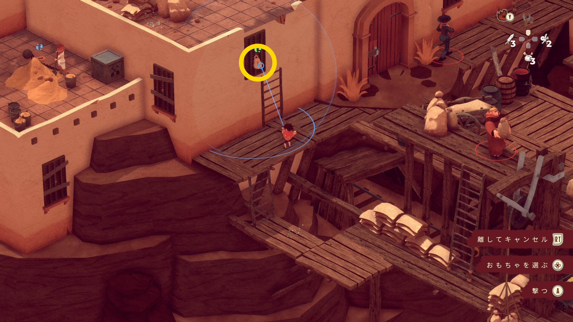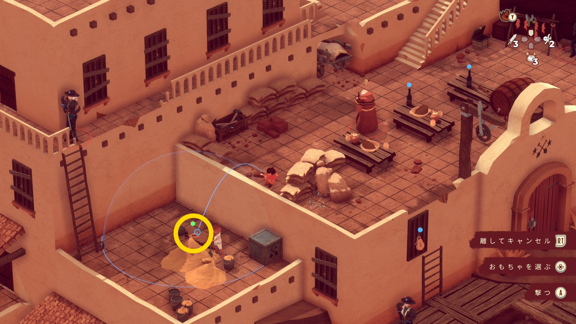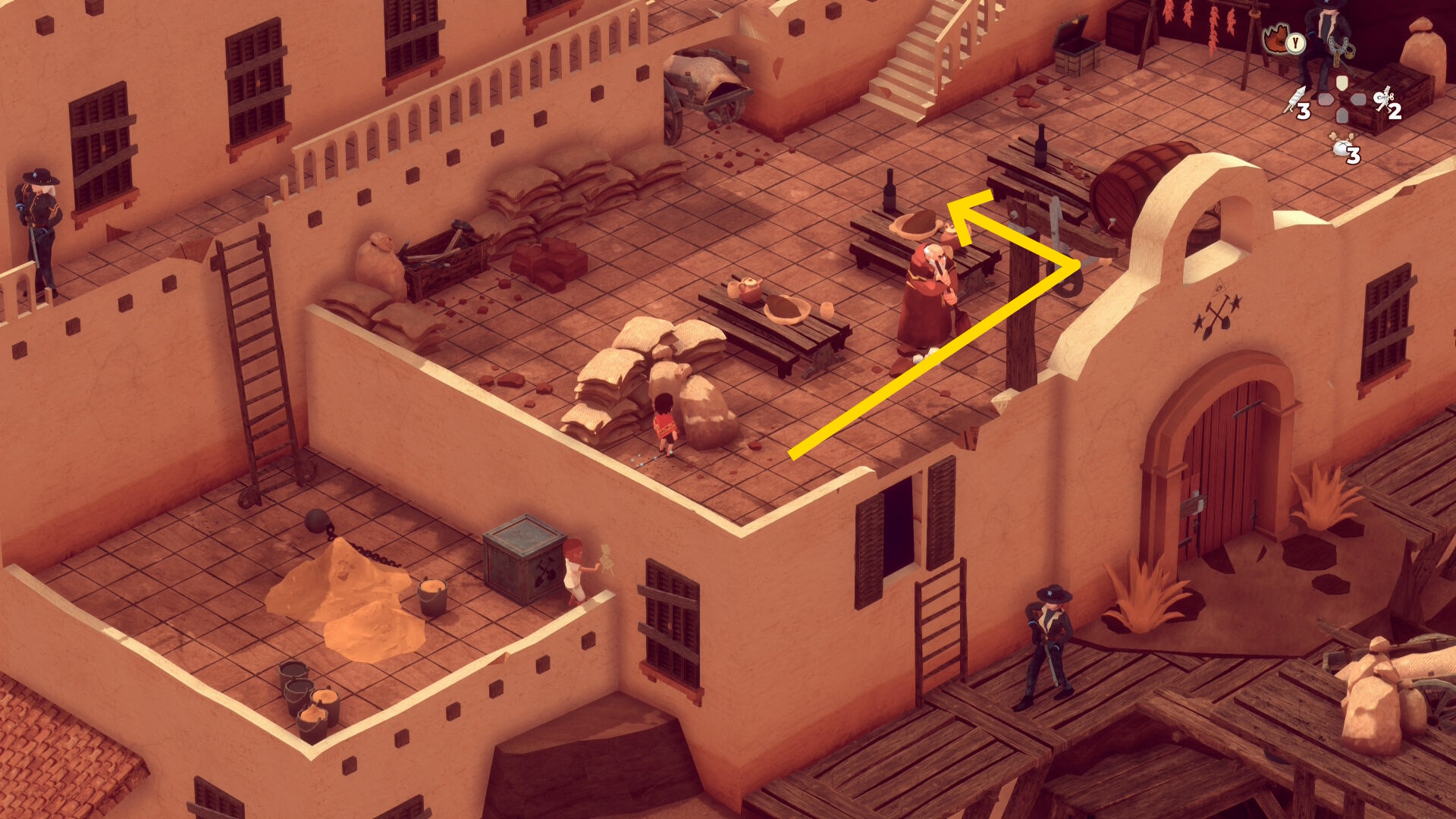 - レンガ運びの盗賊が戻ってくるのでソンブレロに隠れる or 荷車まで戻って隠れる(当サイト的にはソンブレロを推奨)