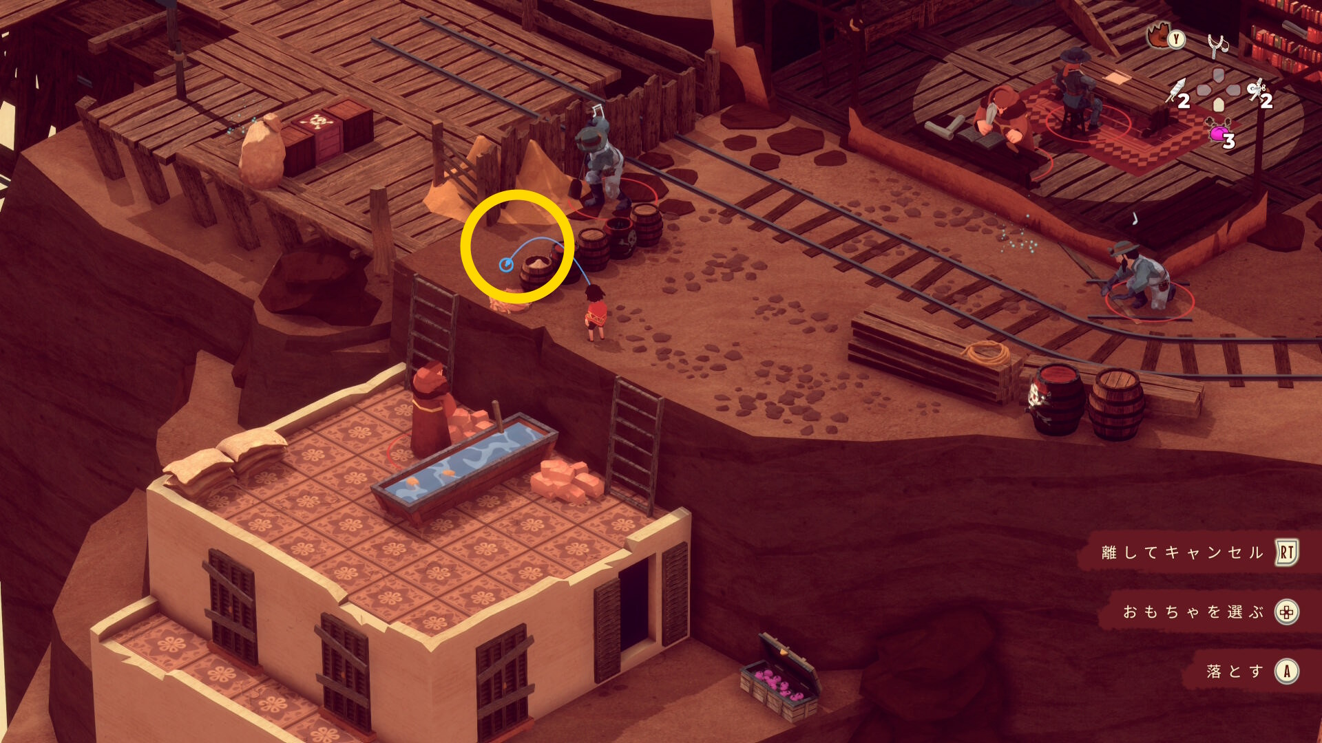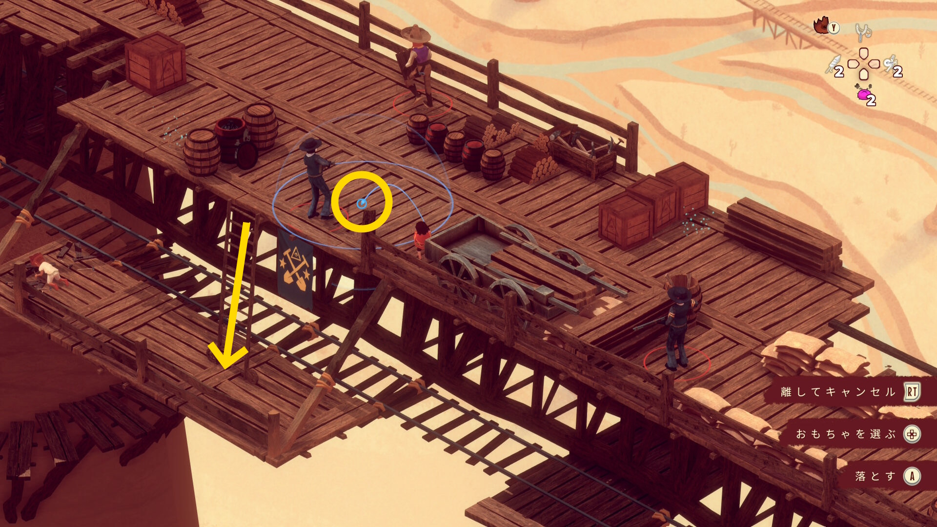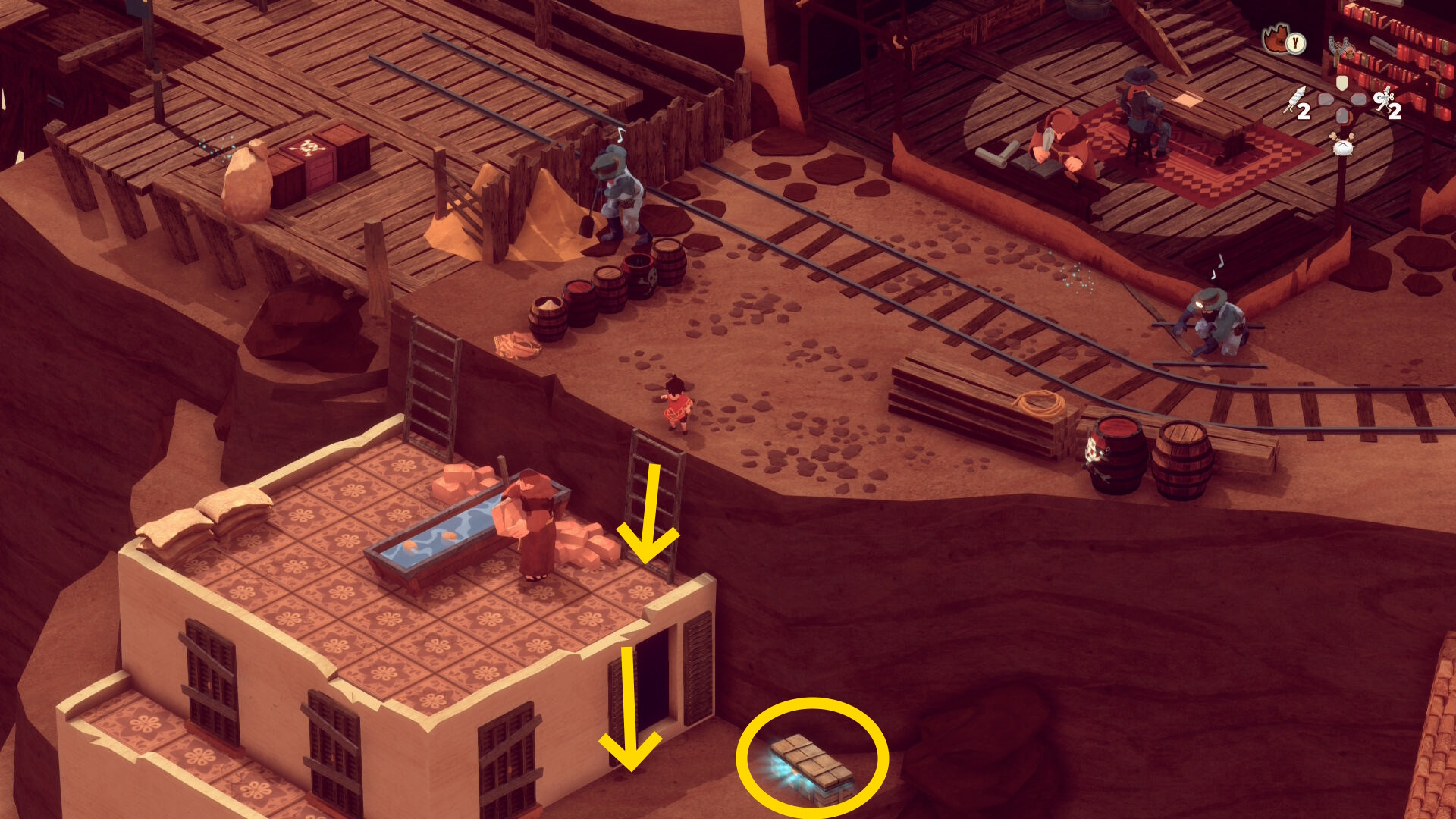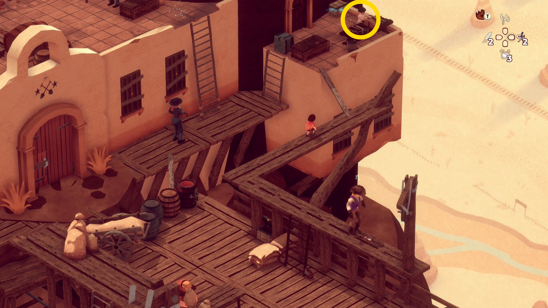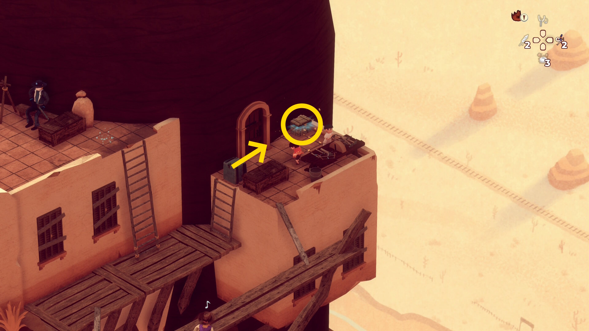 - レンガ運びの盗賊が戻ってくるのでソンブレロに隠れる or 荷車まで戻って隠れる(当サイト的にはソンブレロを推奨)
