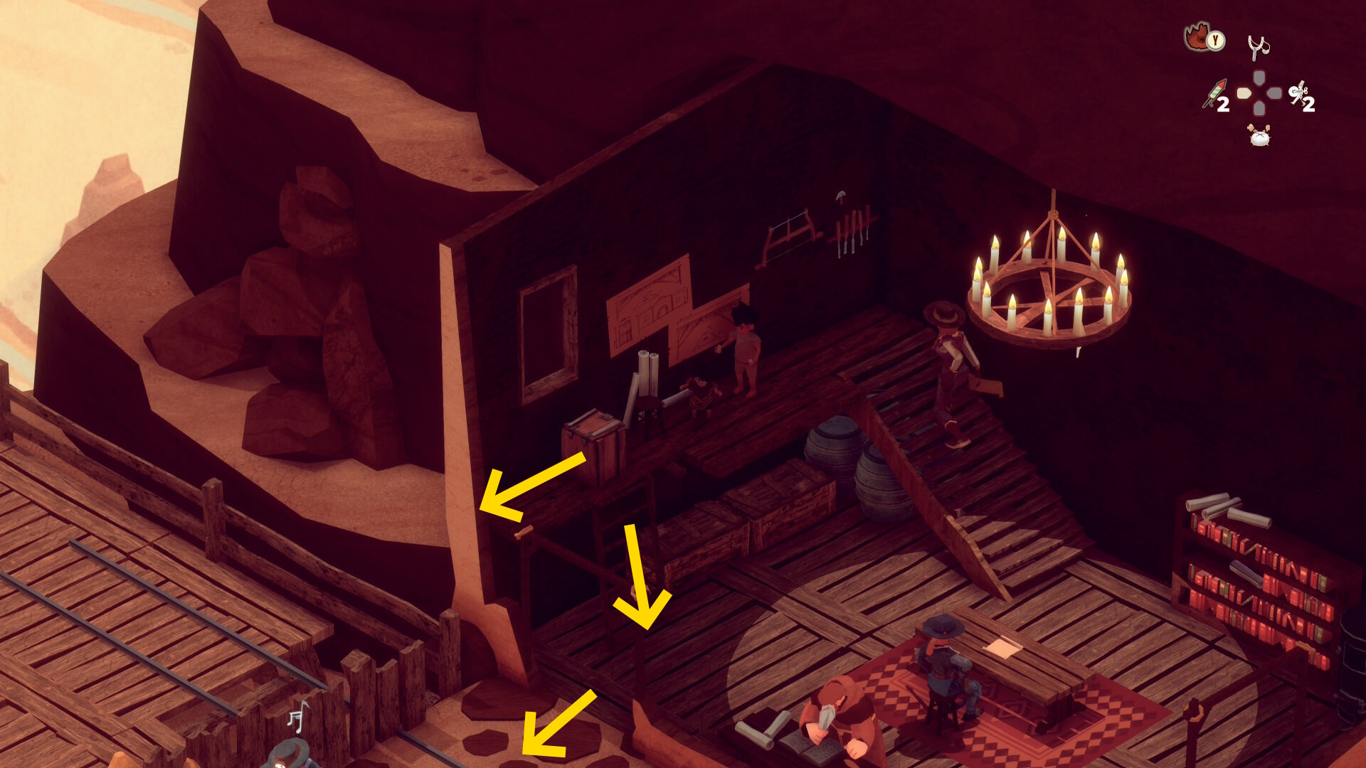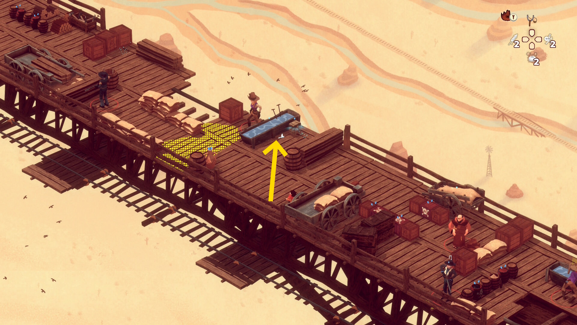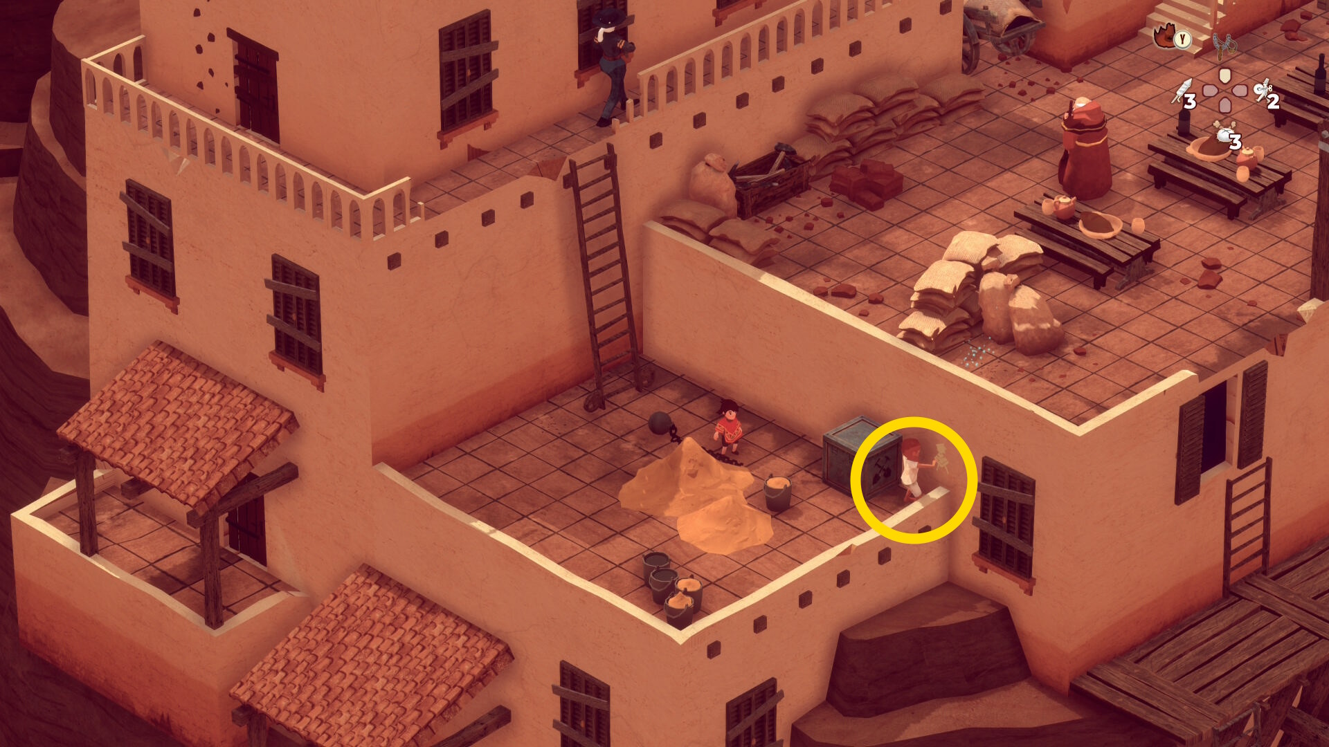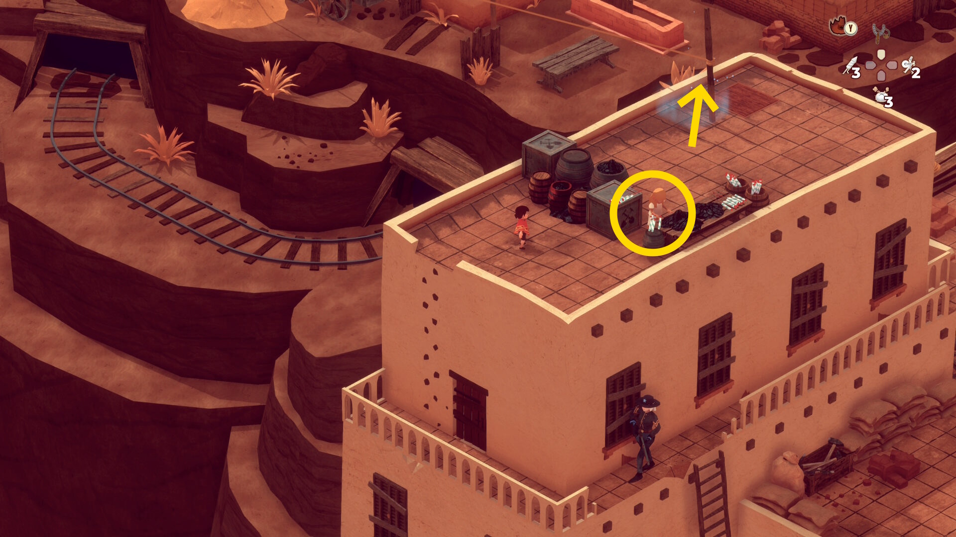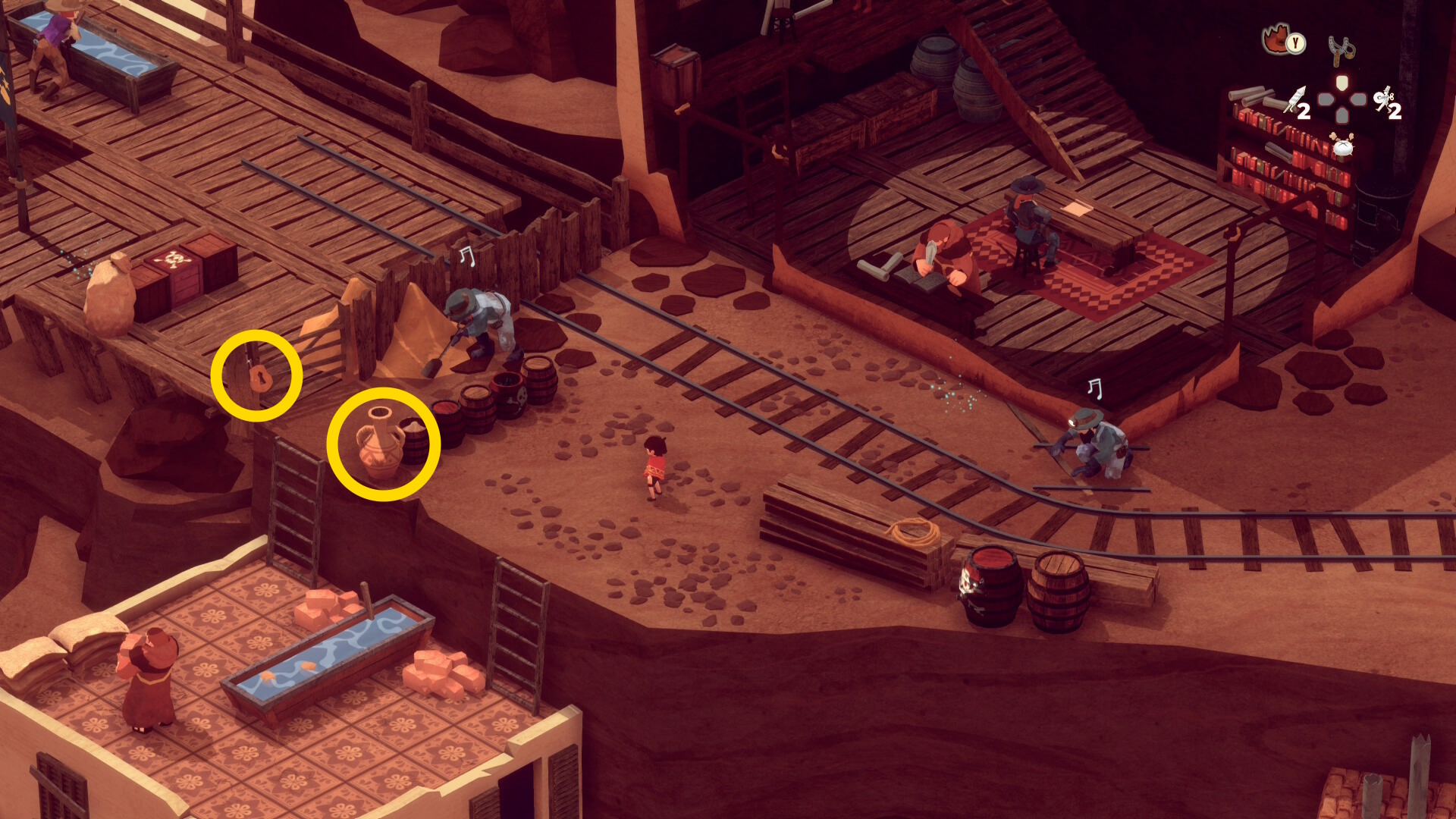 - レンガ運びの盗賊が戻ってくるのでソンブレロに隠れる or 荷車まで戻って隠れる(当サイト的にはソンブレロを推奨)