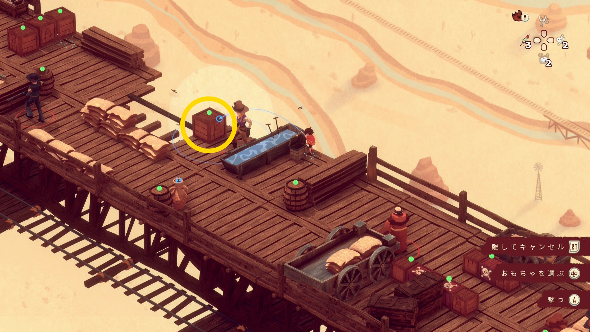 - その先、立ったまま動かない銃兵に サボテンを投げる