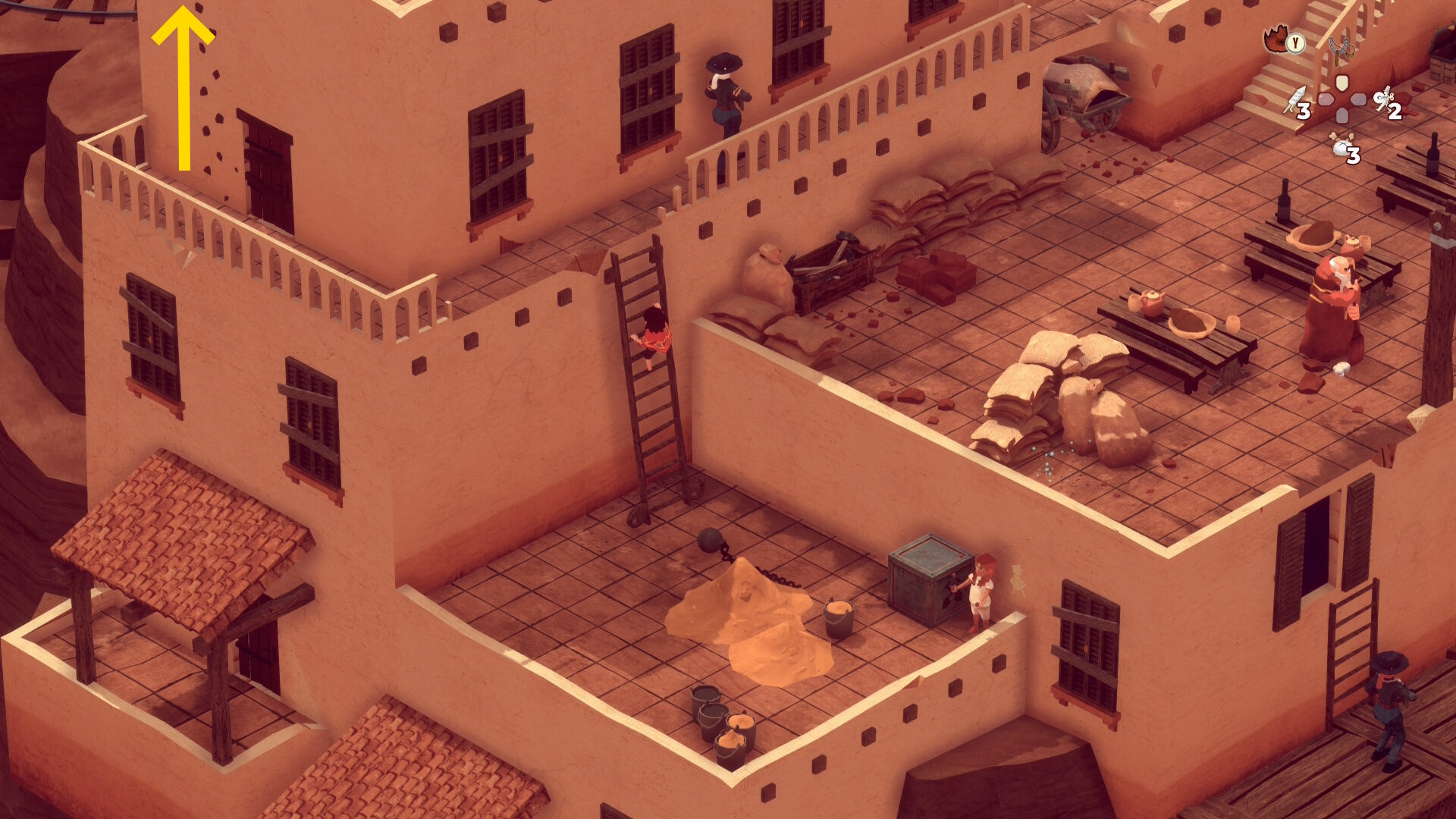 - ハシゴの上に盗賊がいる