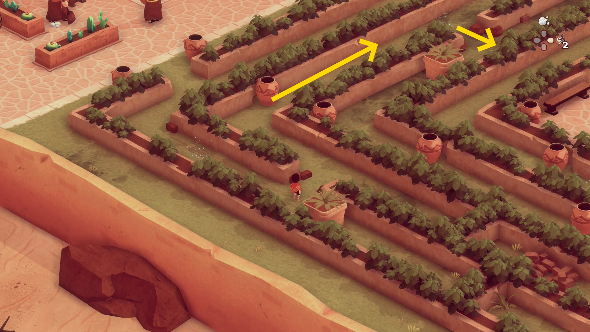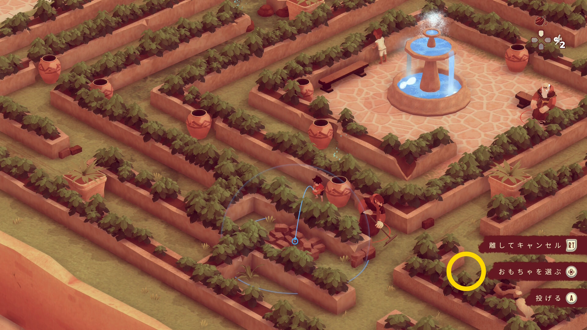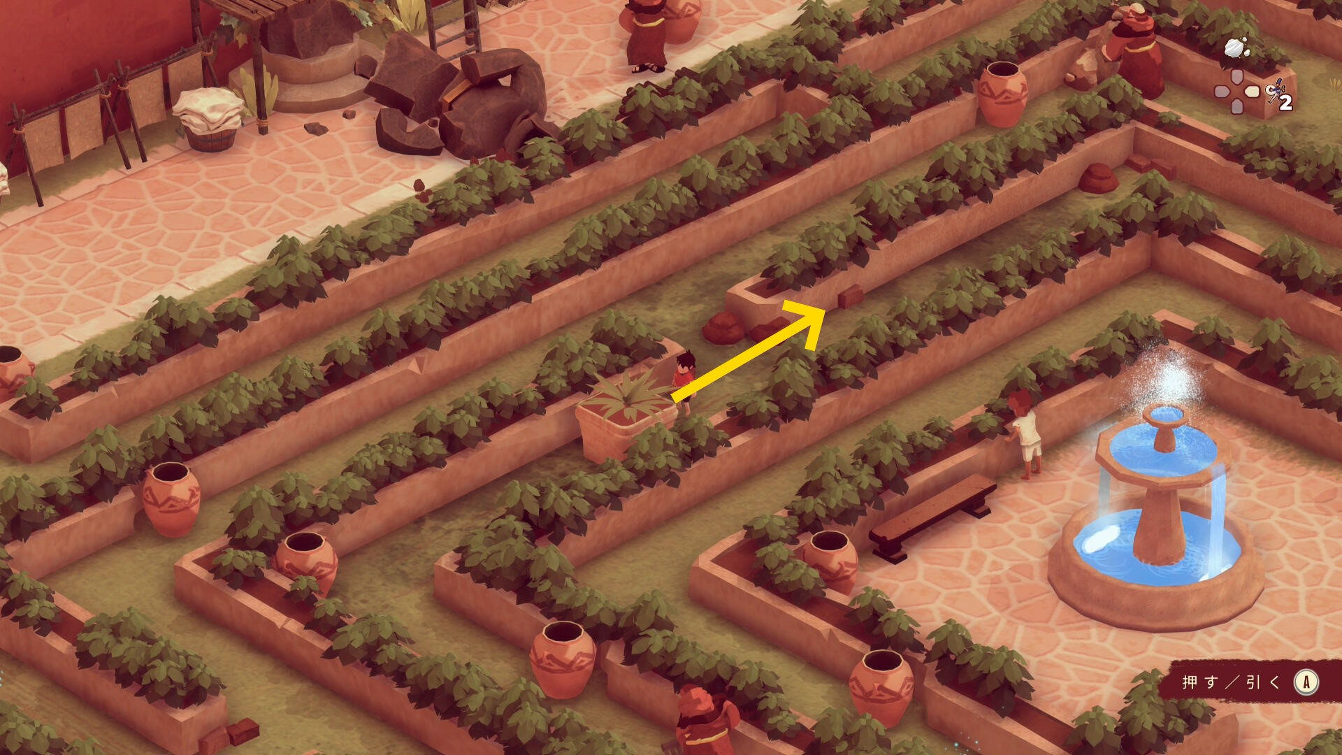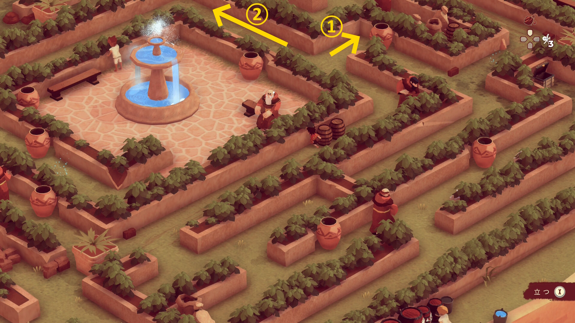 - 左下に進むと迷路風の庭園が見えてくる