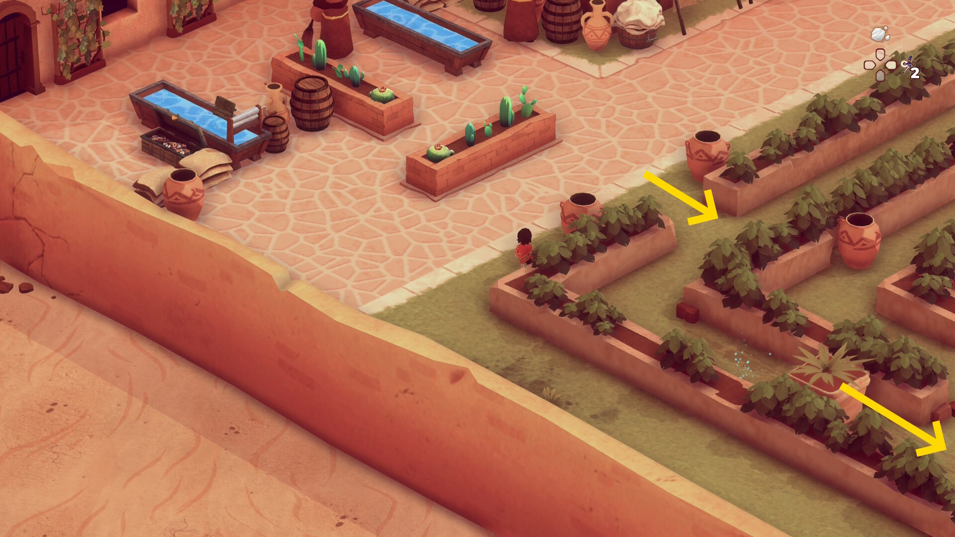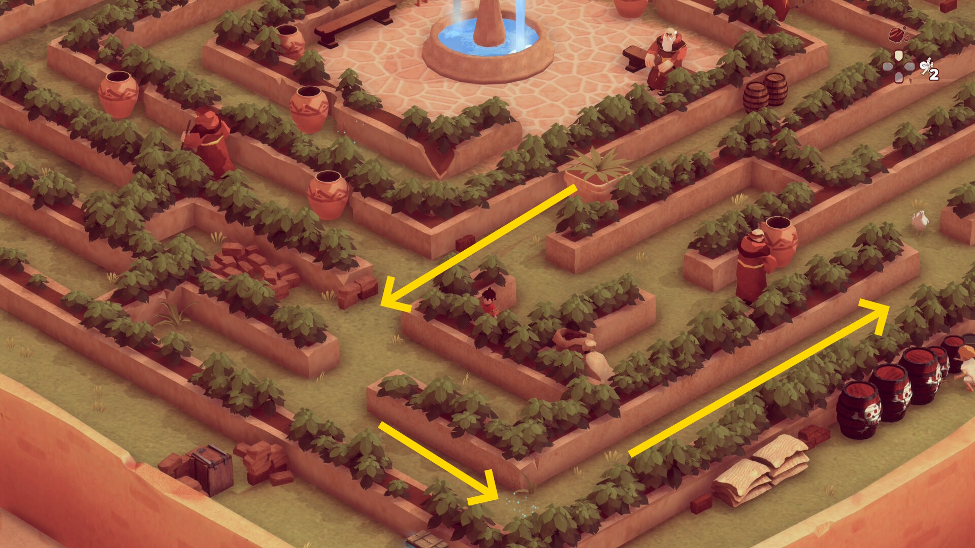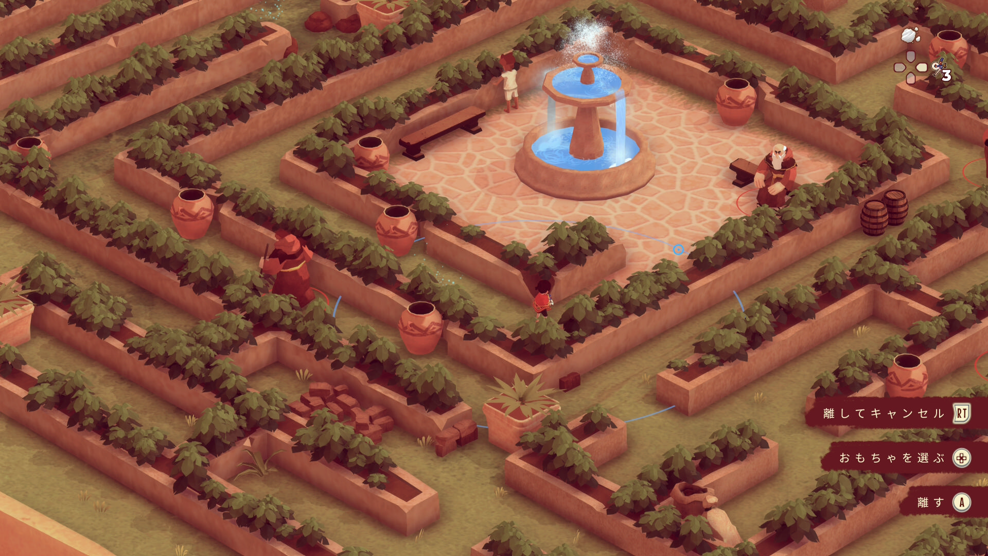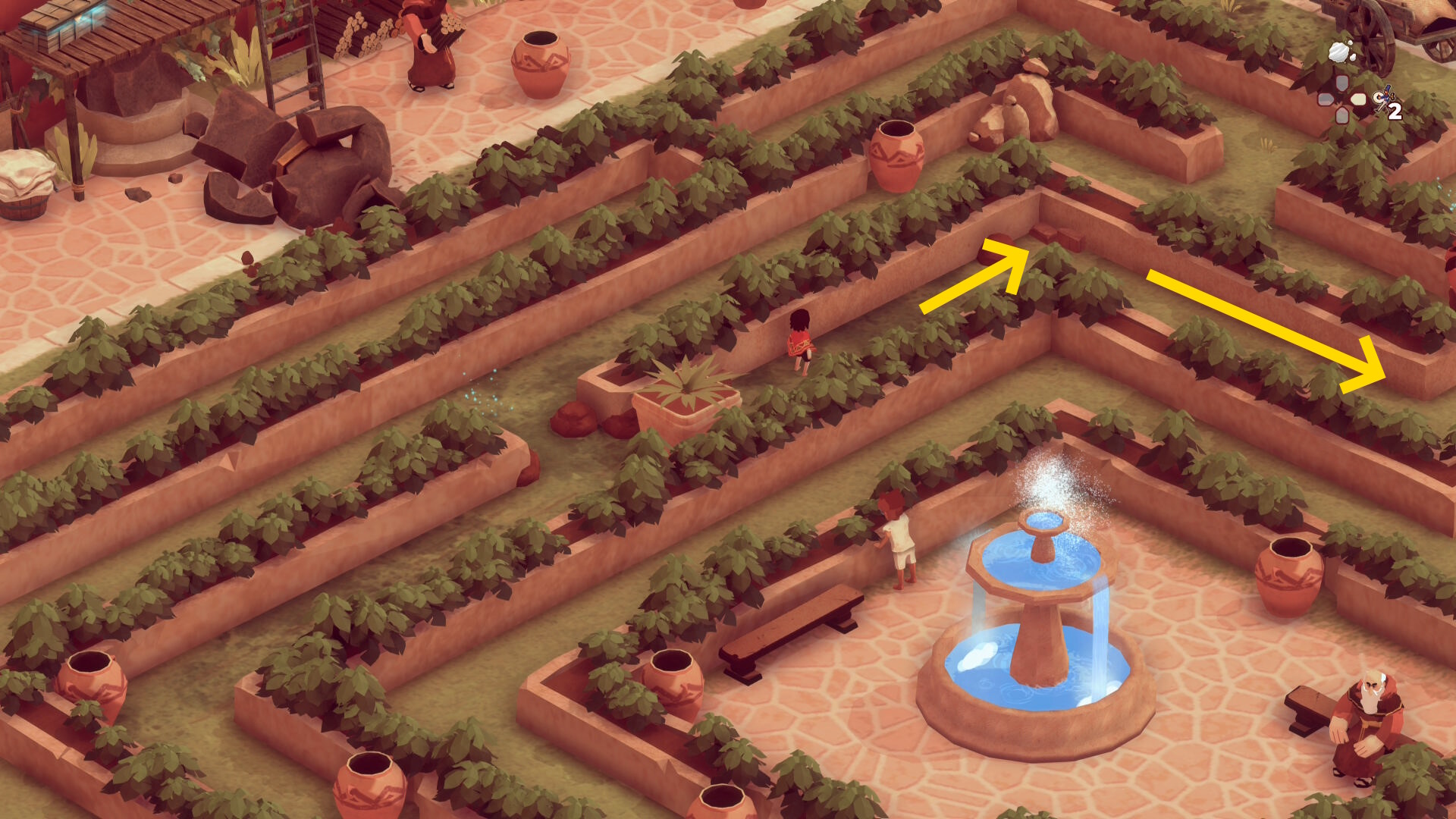 - 左下に進むと迷路風の庭園が見えてくる
