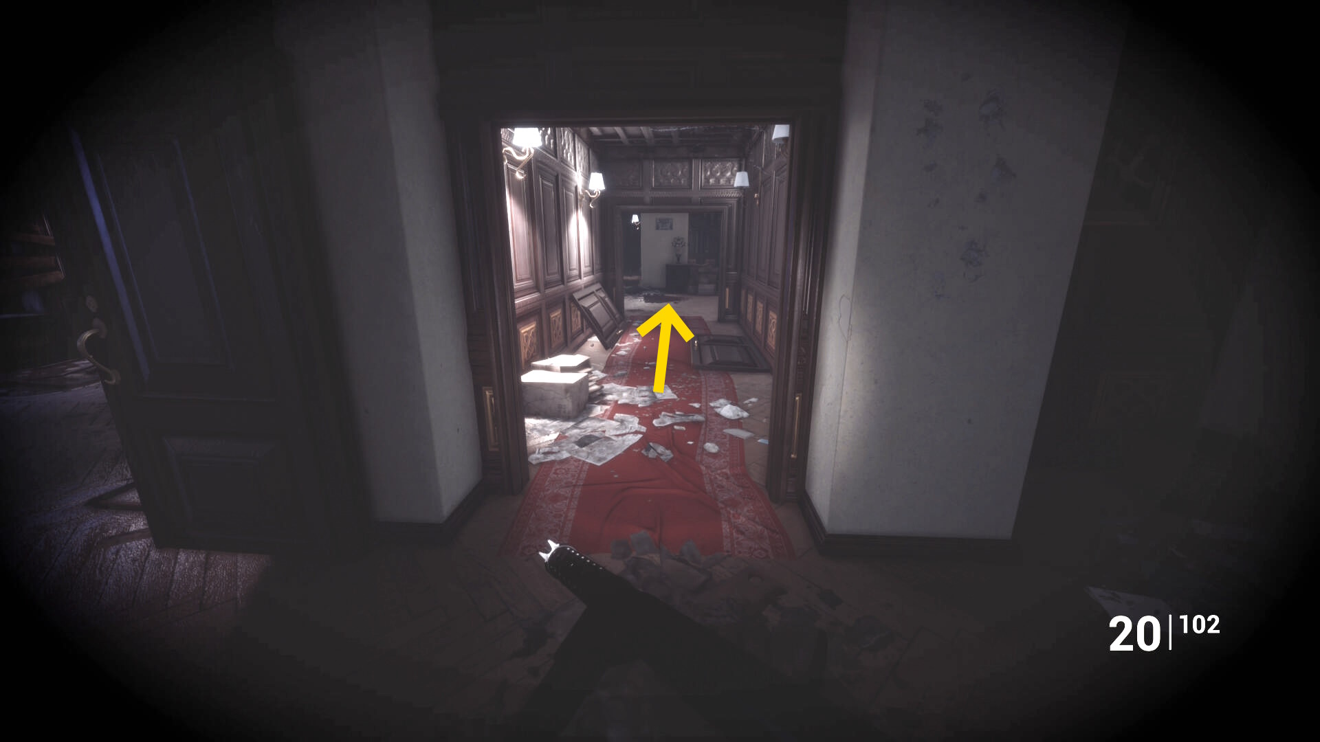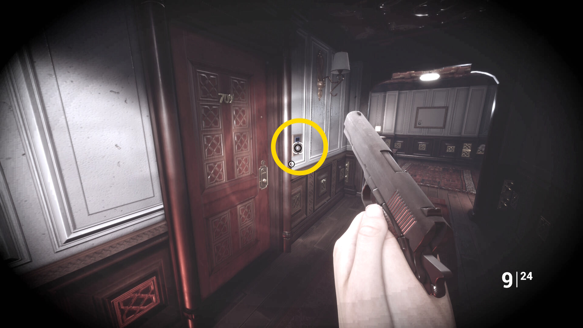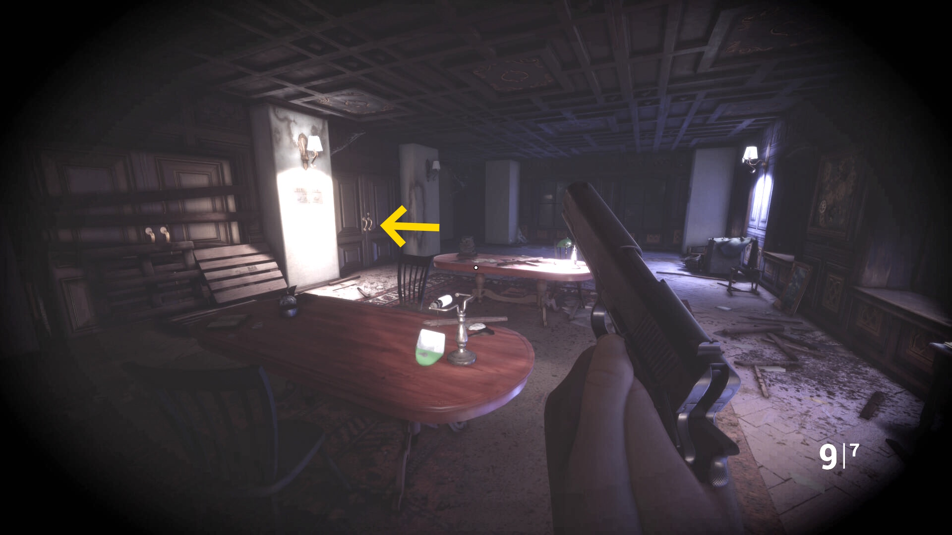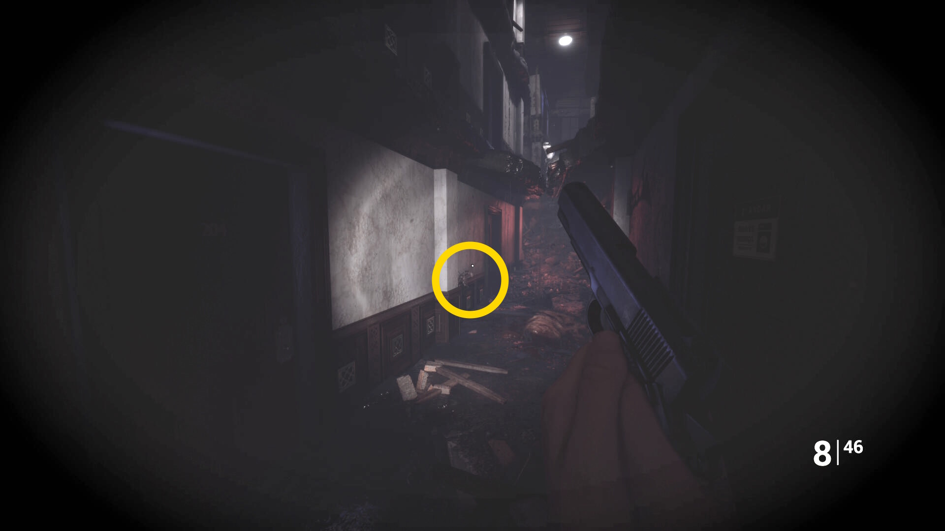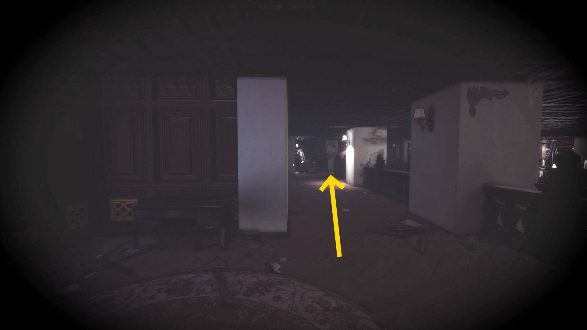 • ピストル弾薬がある引き出しのところから後ろを向き、奥に伸びる廊下を進む
