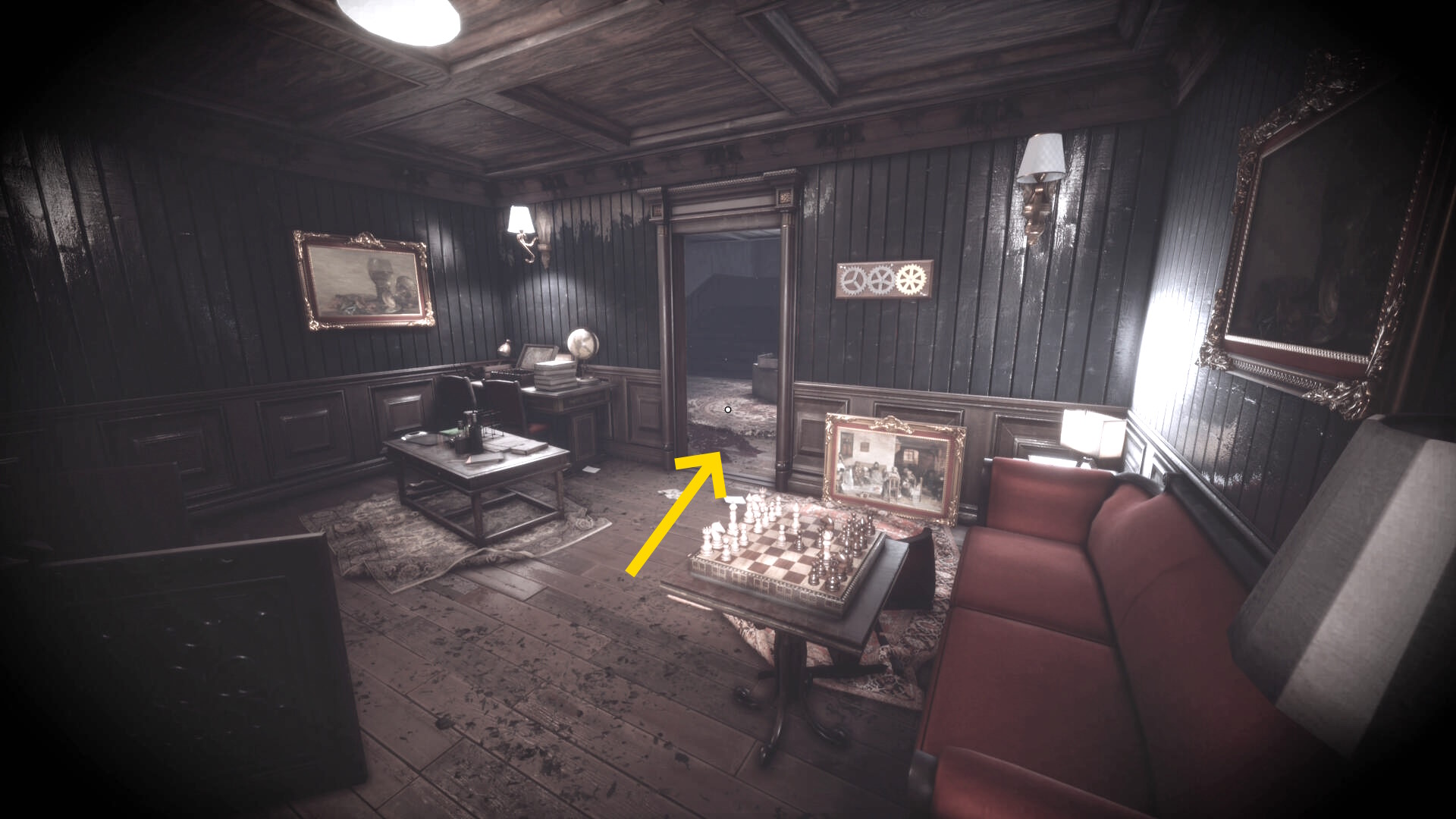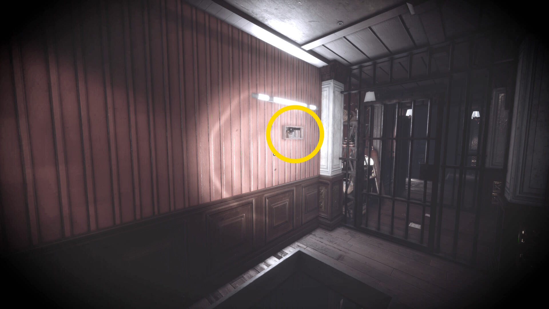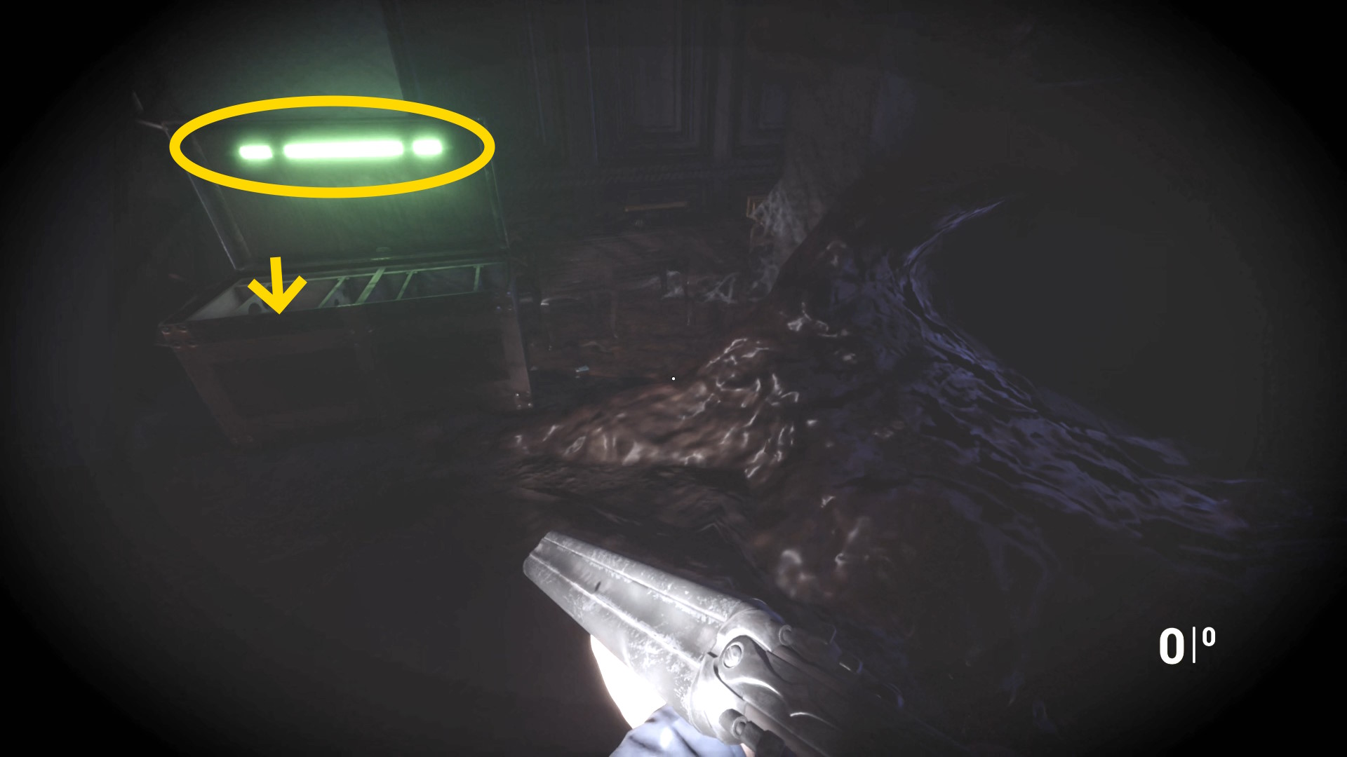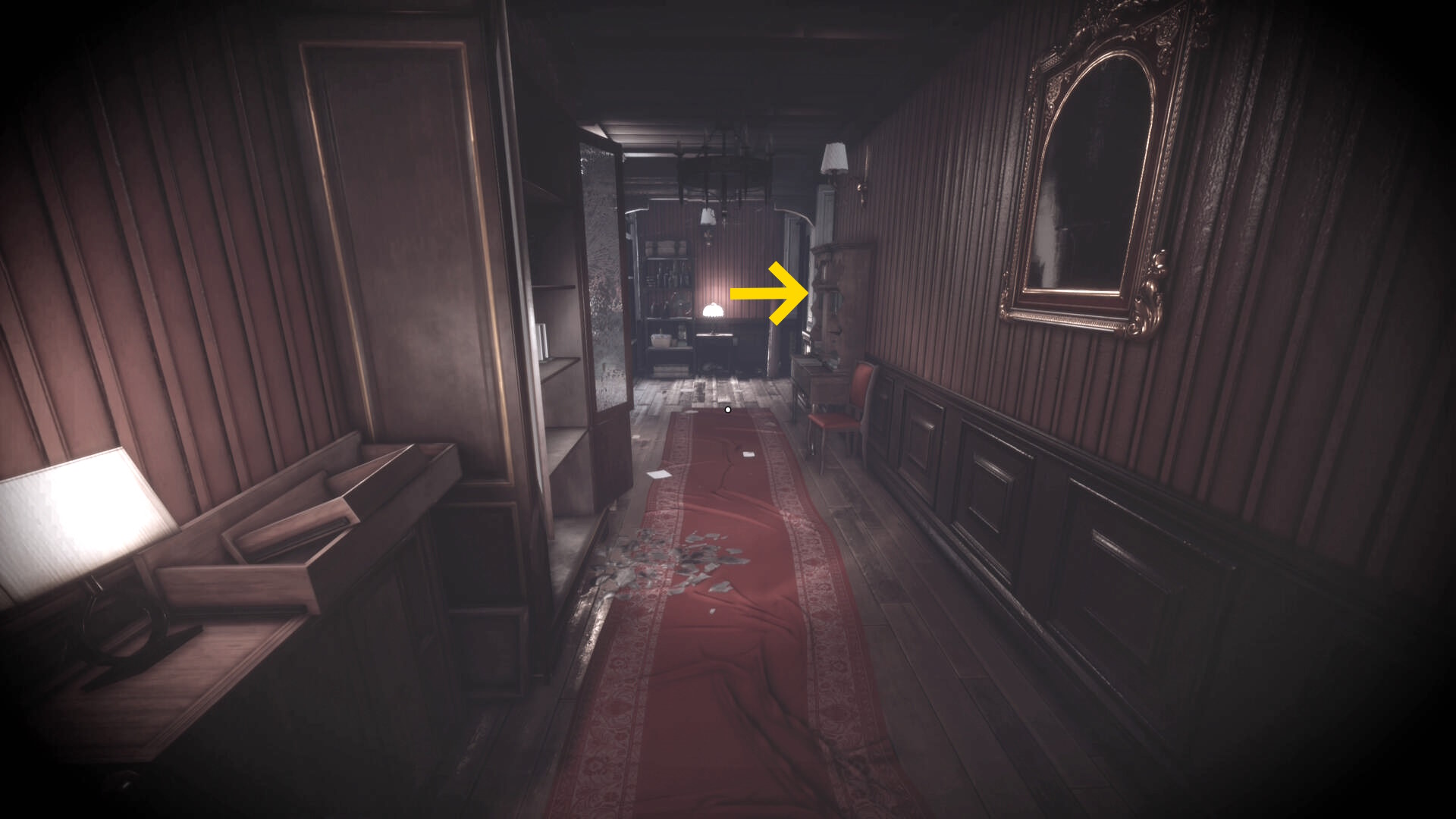 • ピストル弾薬がある引き出しのところから後ろを向き、奥に伸びる廊下を進む