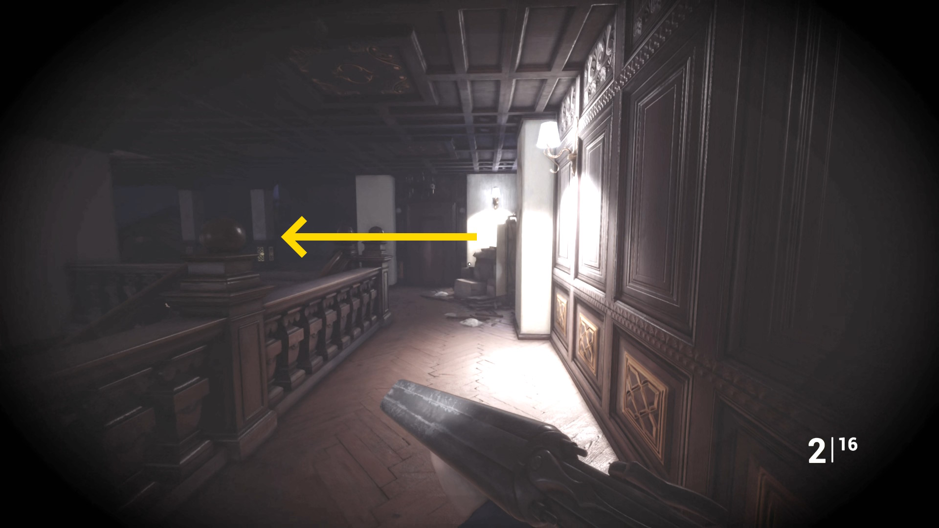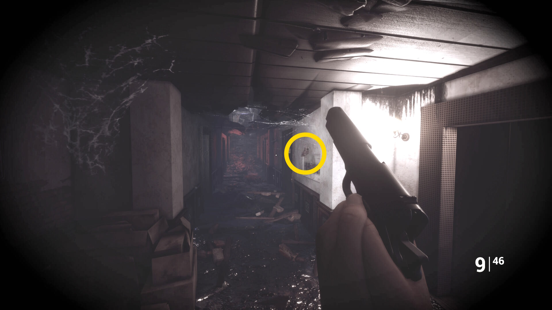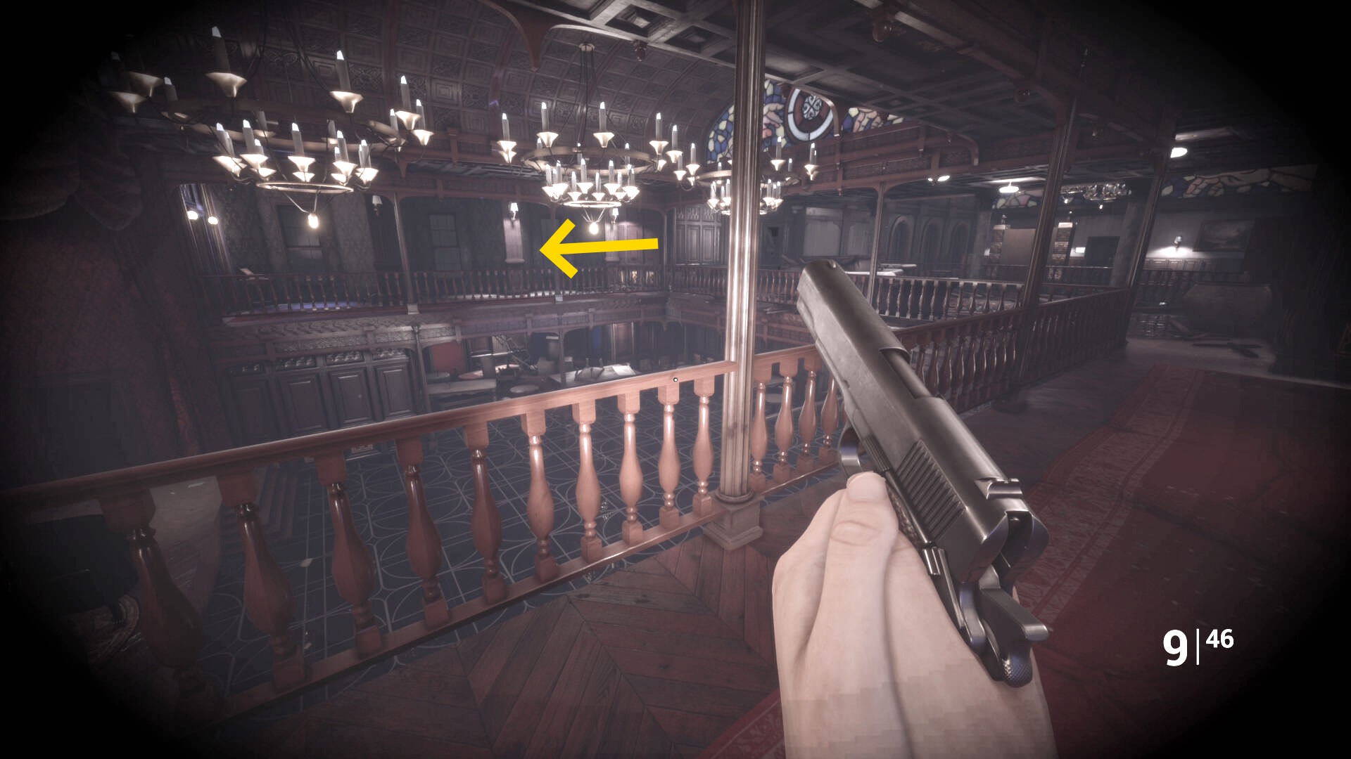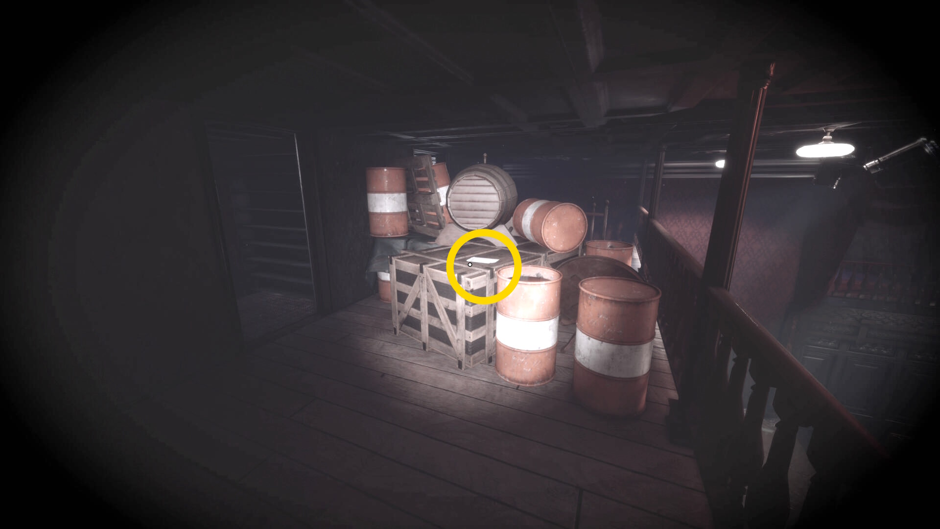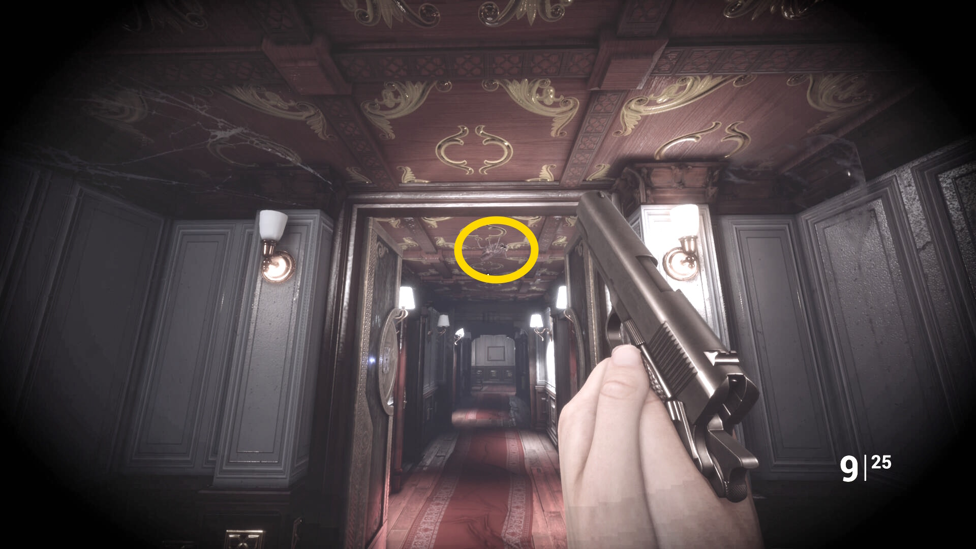 • ピストル弾薬がある引き出しのところから後ろを向き、奥に伸びる廊下を進む