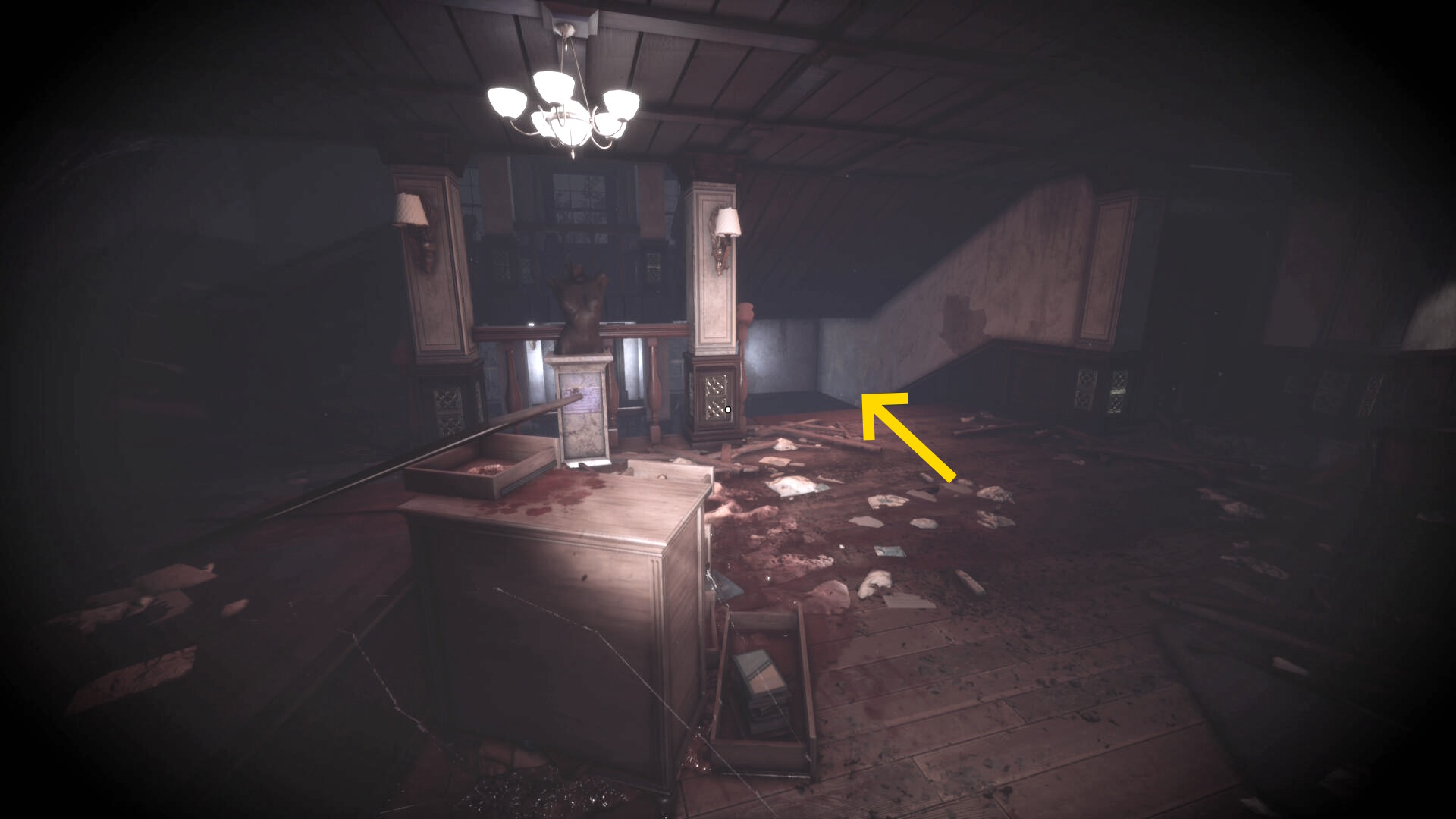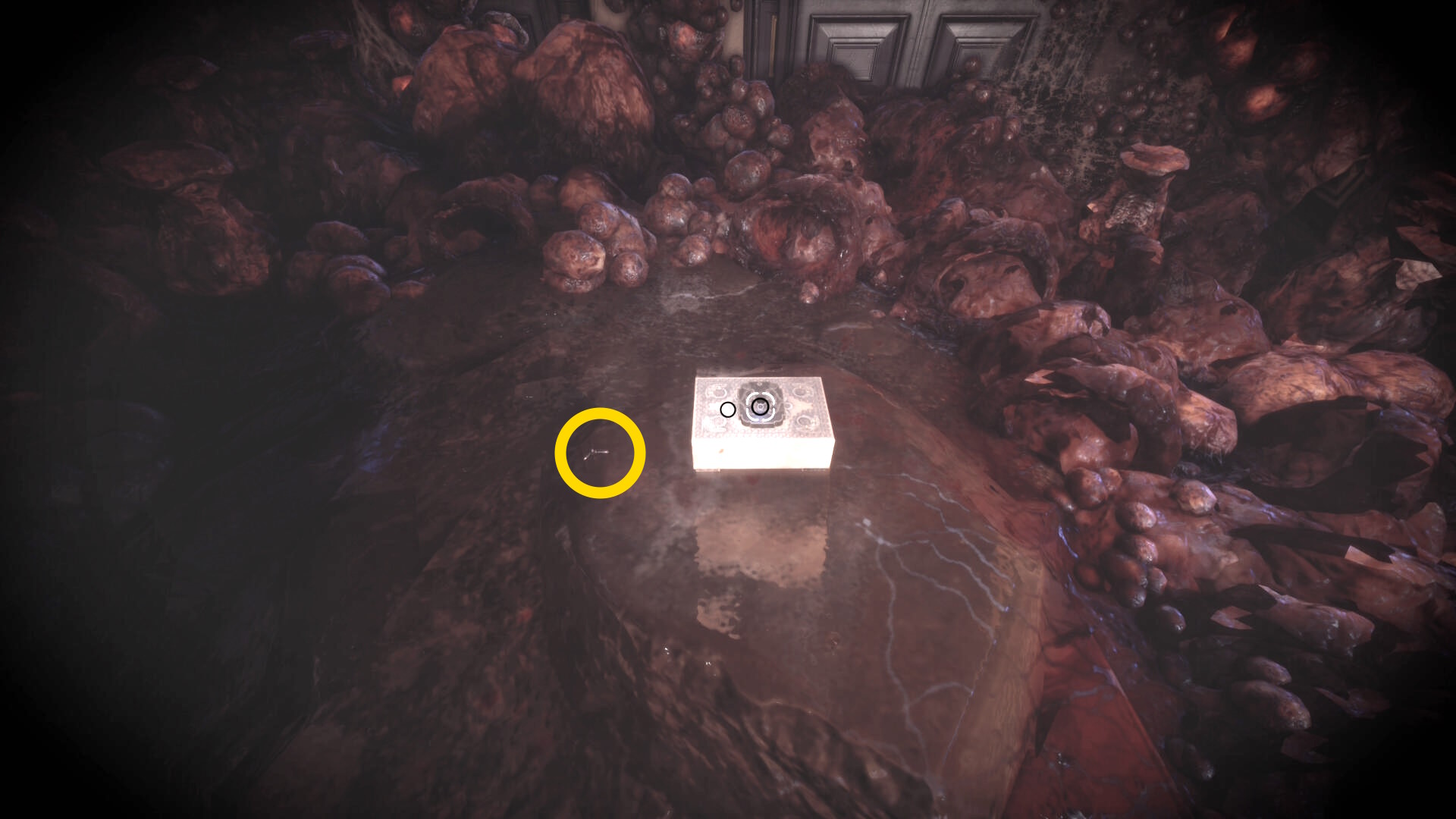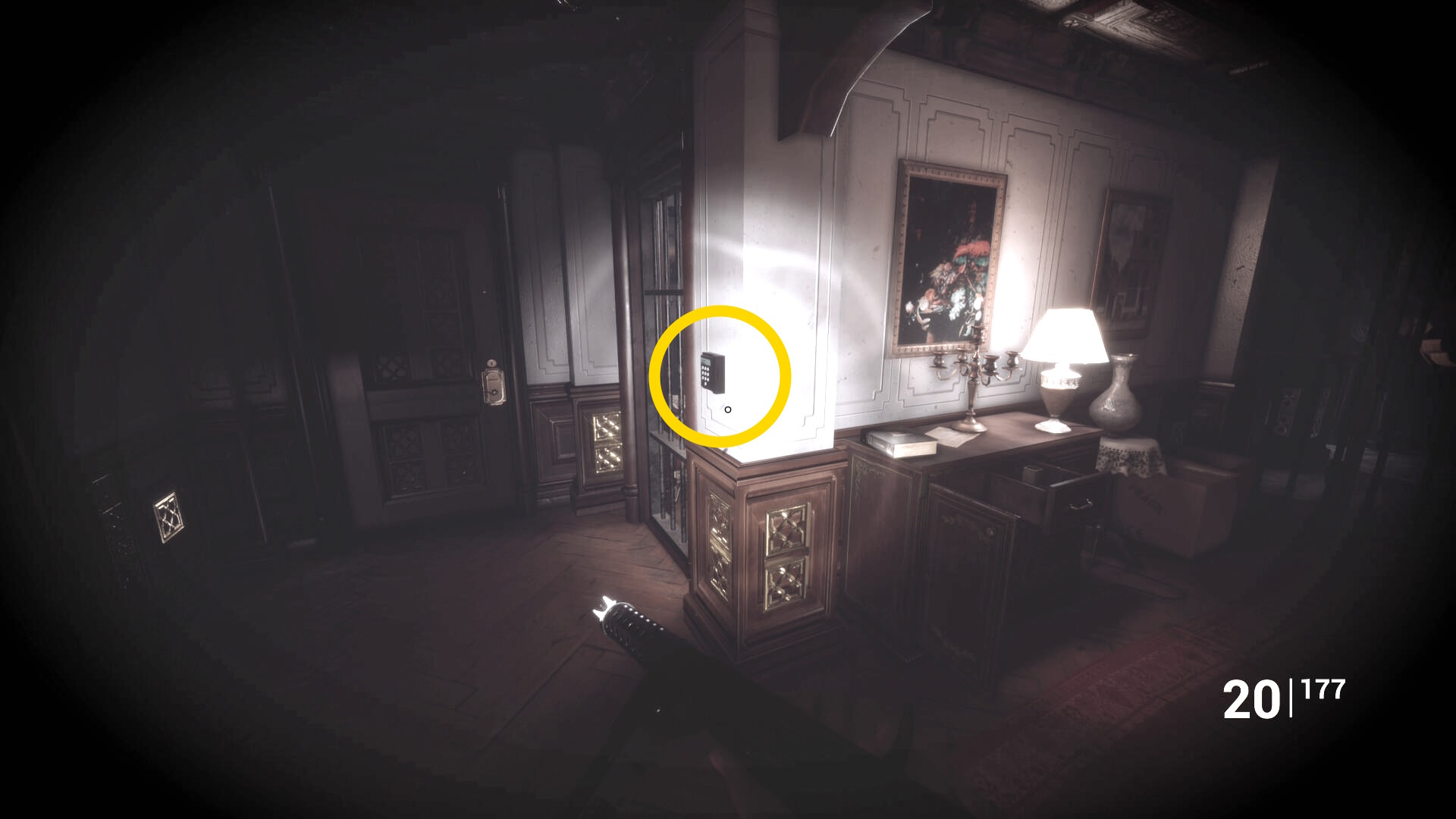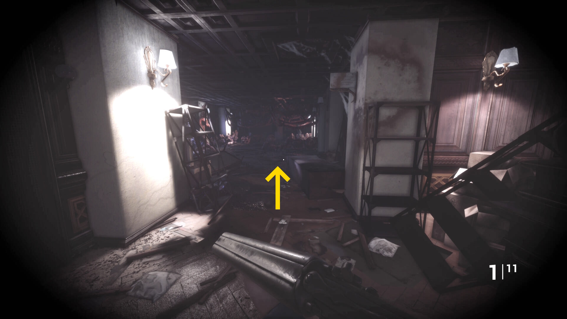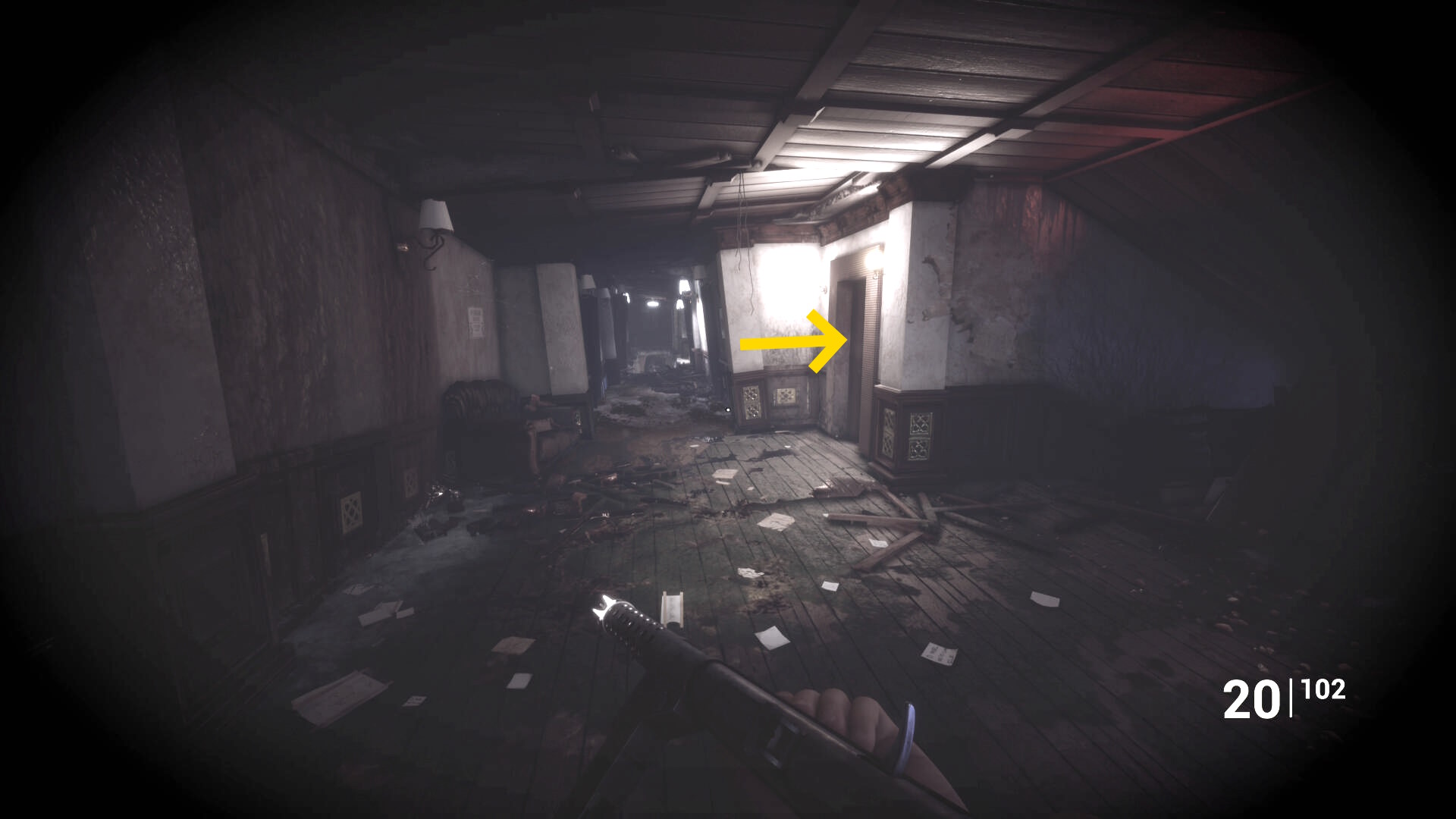 • ピストル弾薬がある引き出しのところから後ろを向き、奥に伸びる廊下を進む