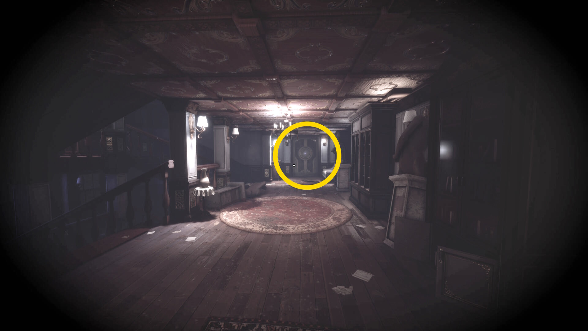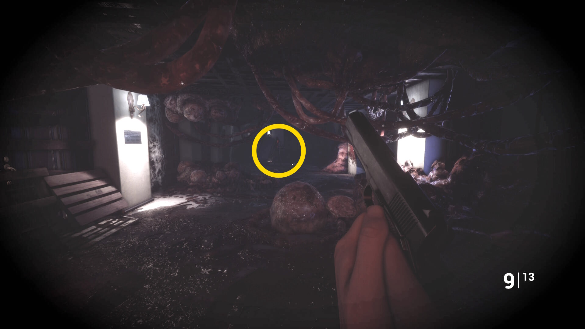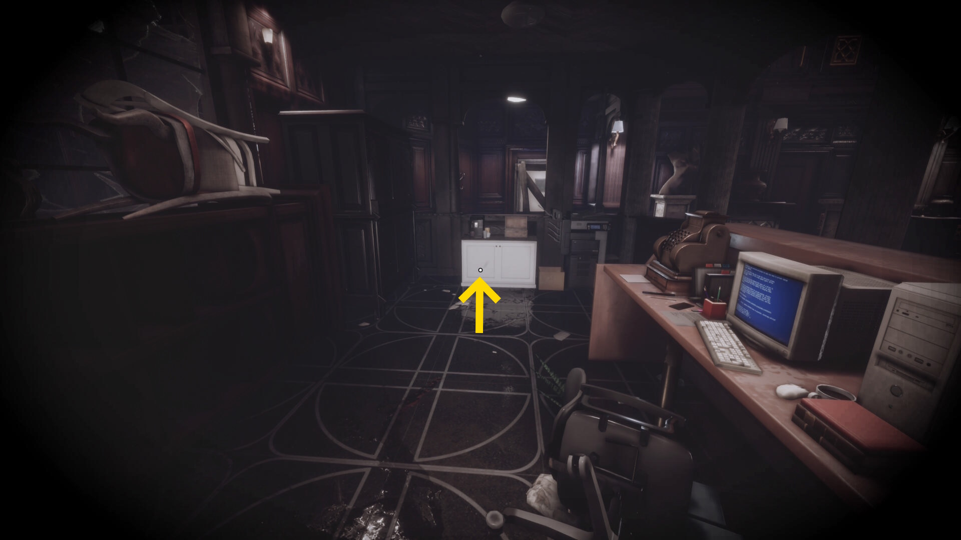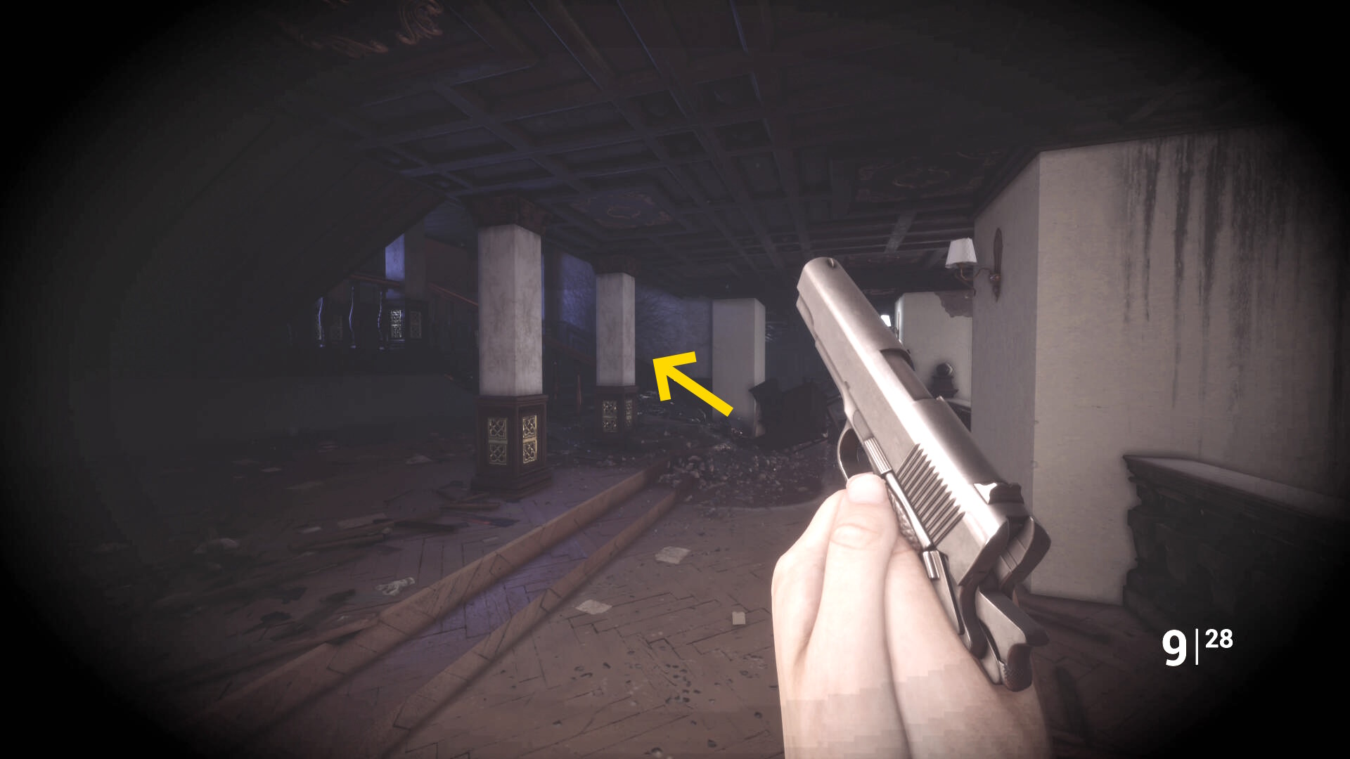 • ピストル弾薬がある引き出しのところから後ろを向き、奥に伸びる廊下を進む