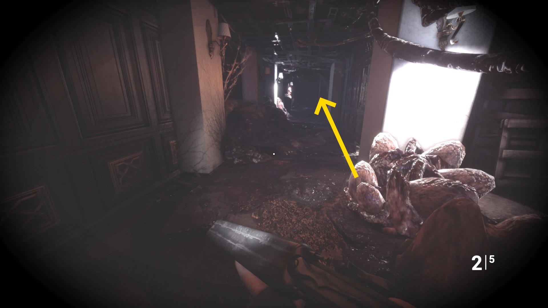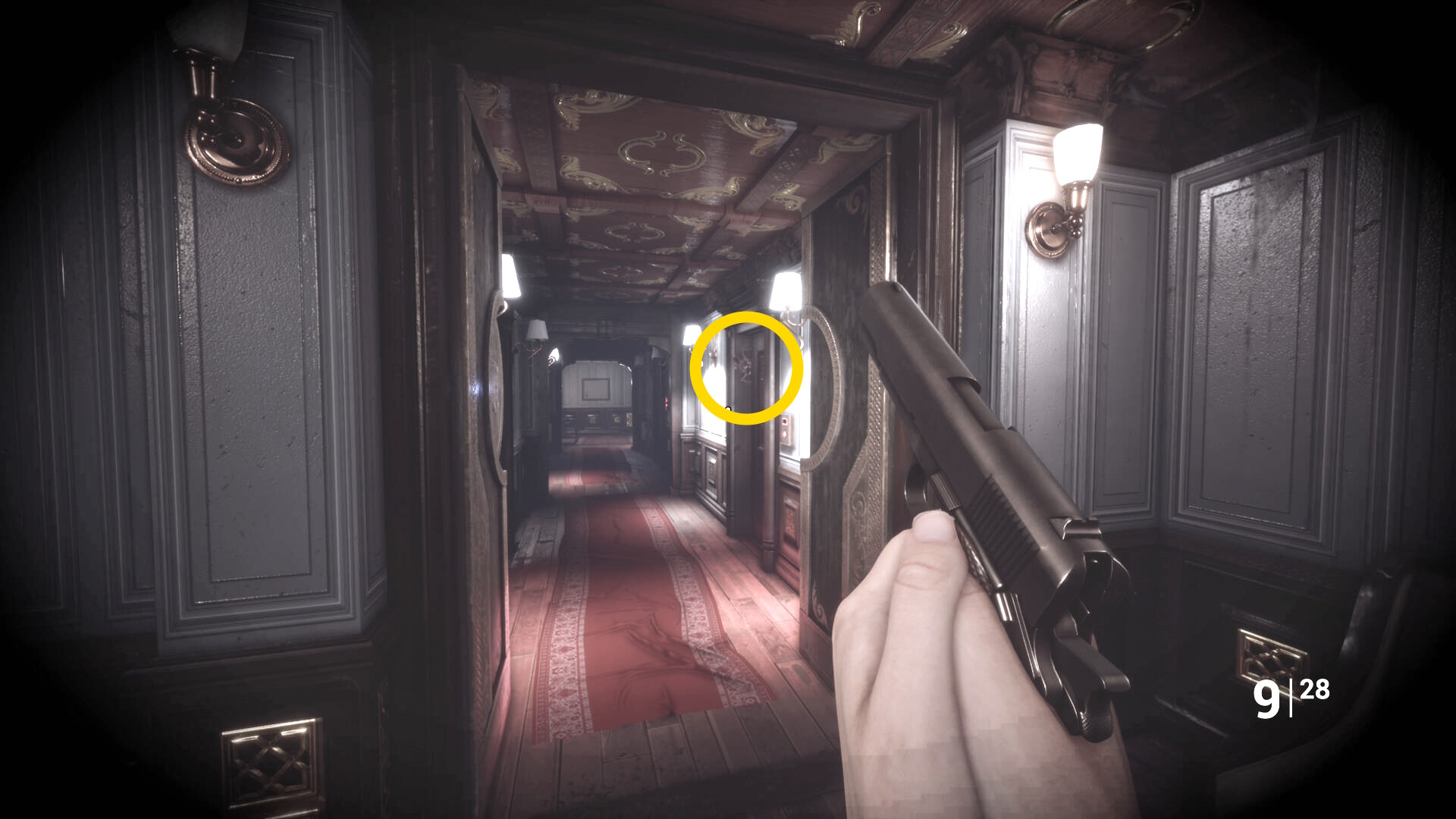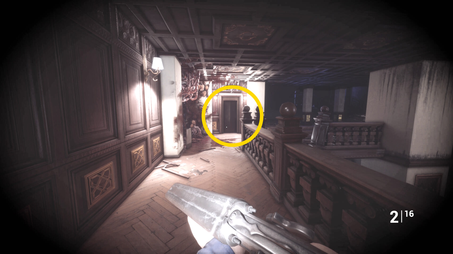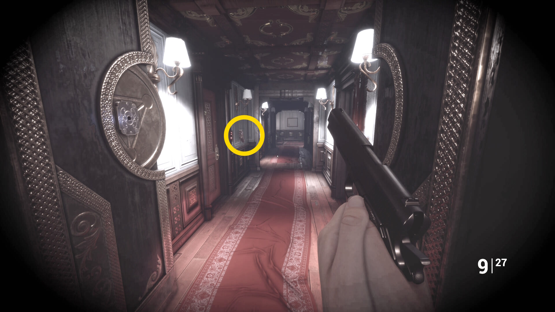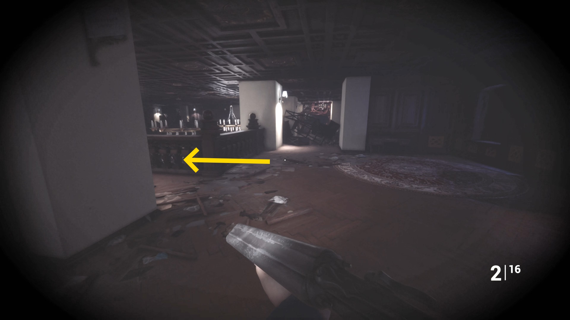 • ピストル弾薬がある引き出しのところから後ろを向き、奥に伸びる廊下を進む