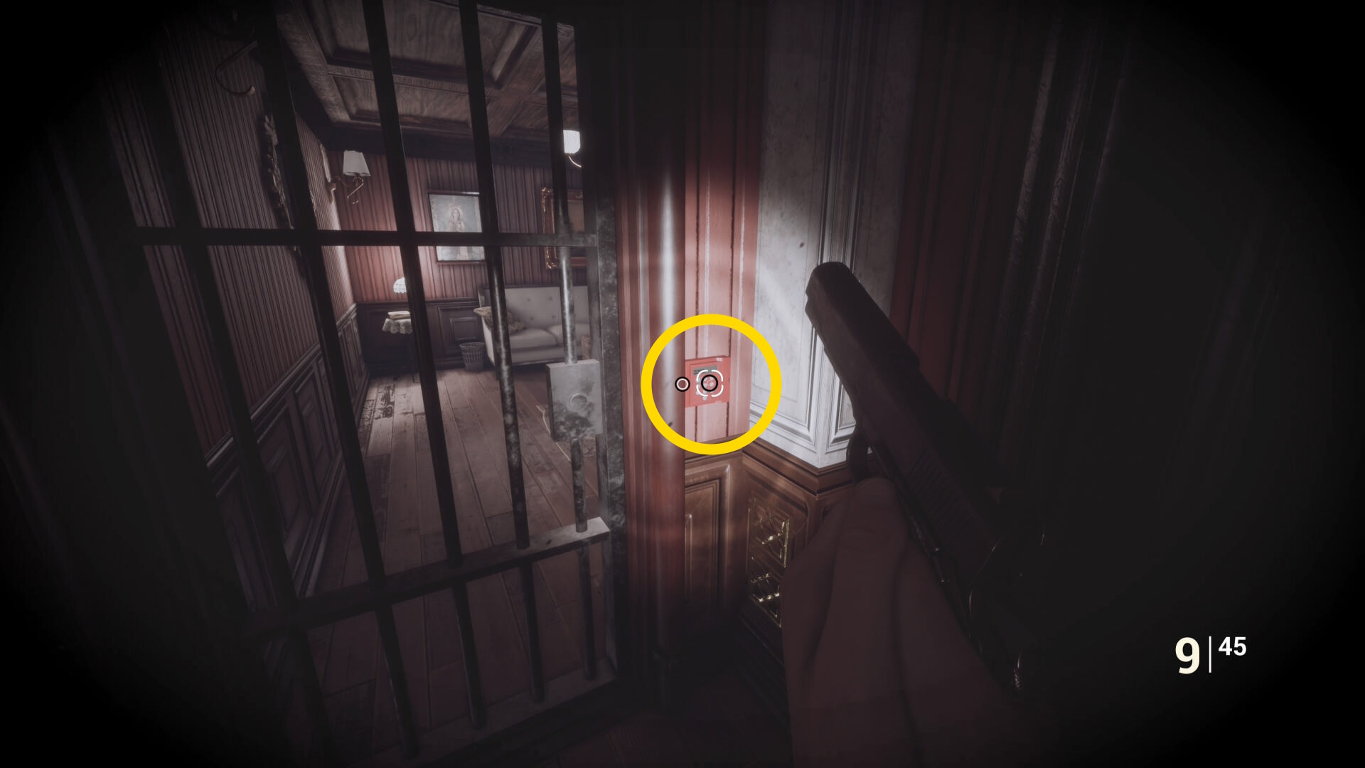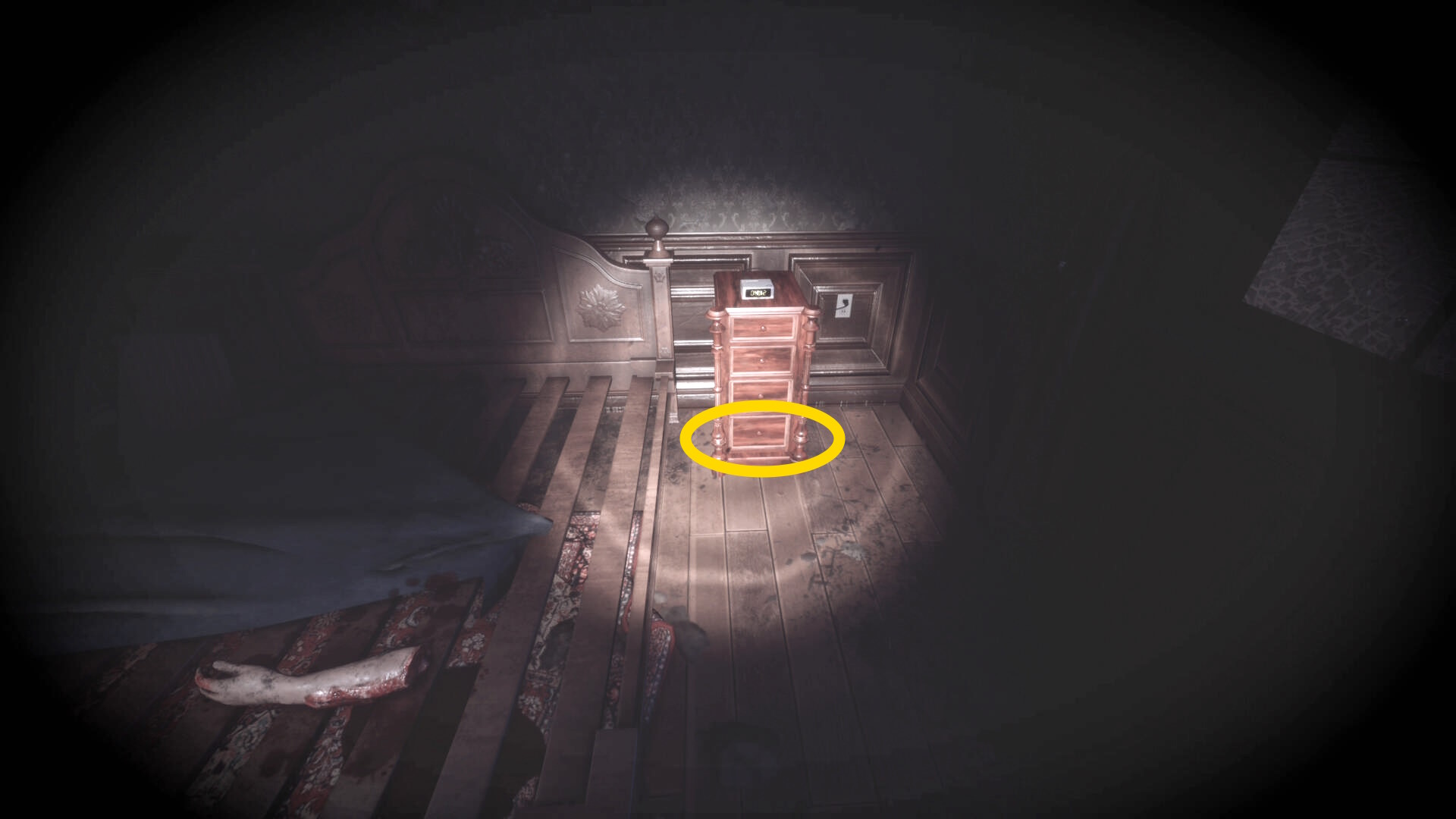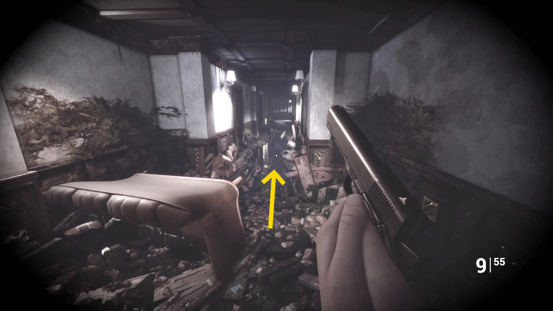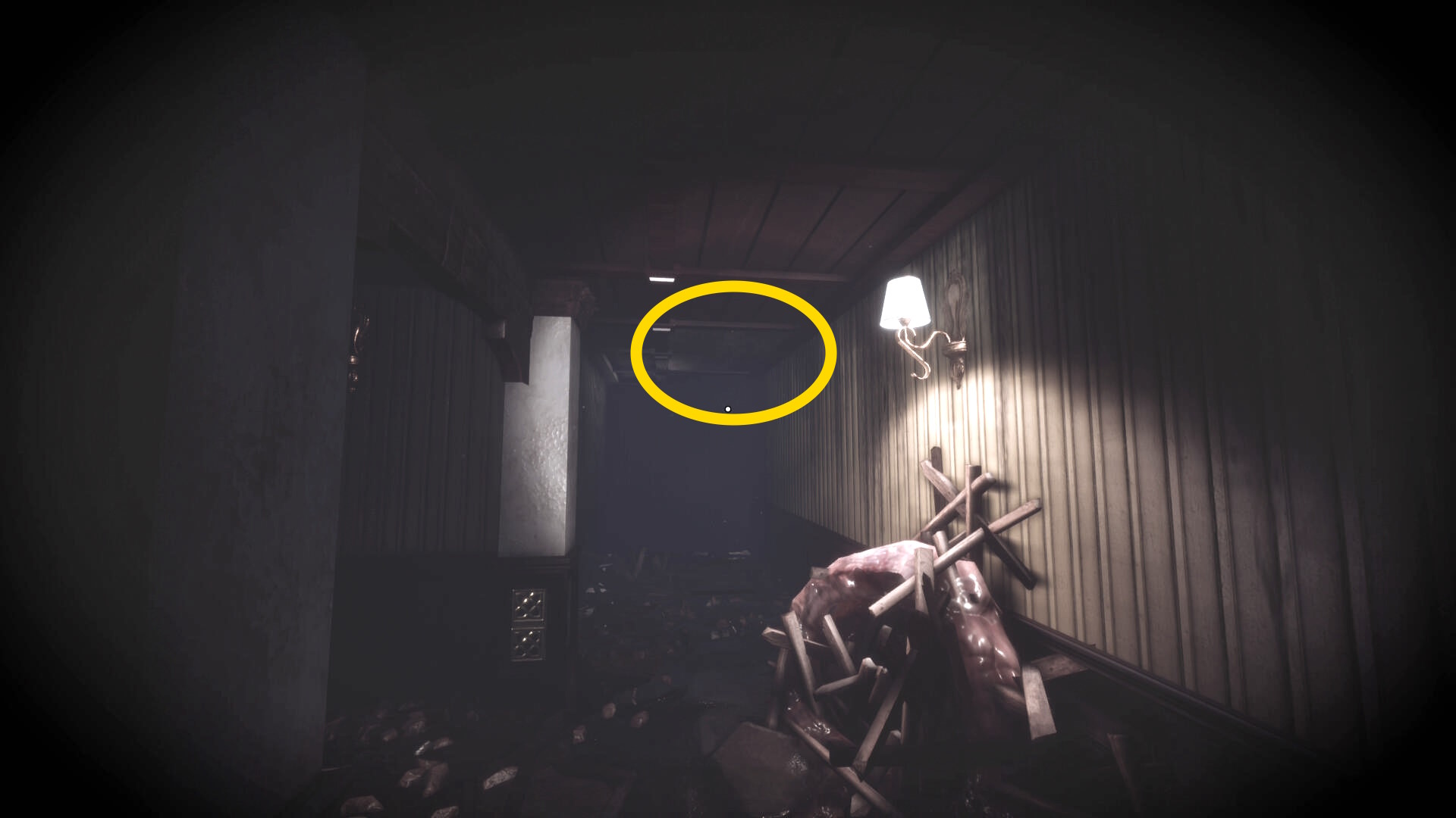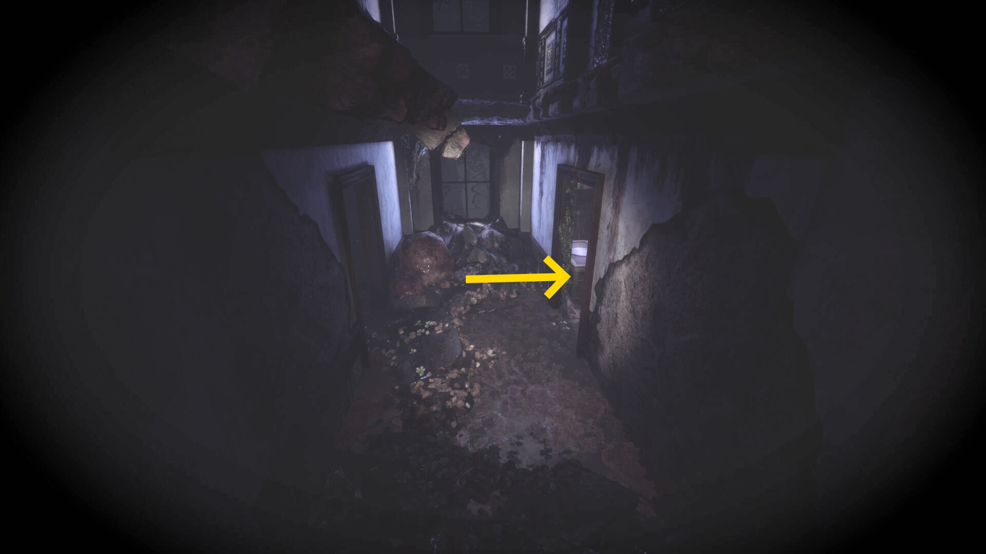 • ピストル弾薬がある引き出しのところから後ろを向き、奥に伸びる廊下を進む