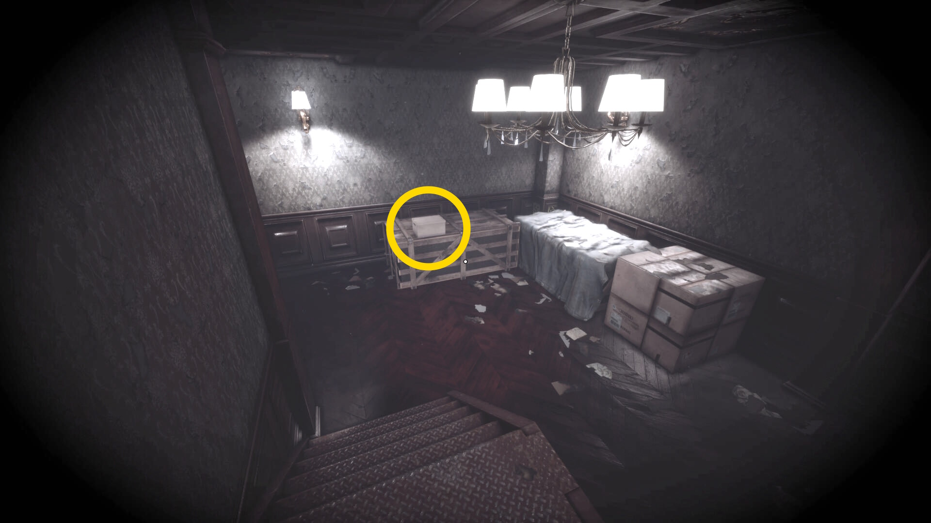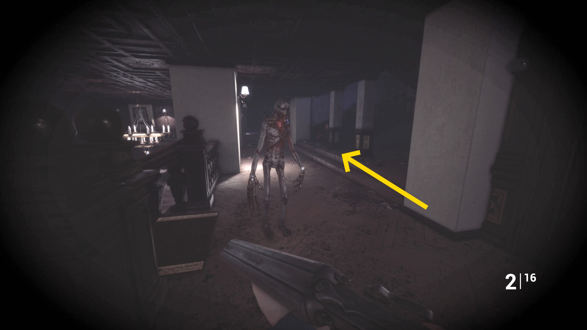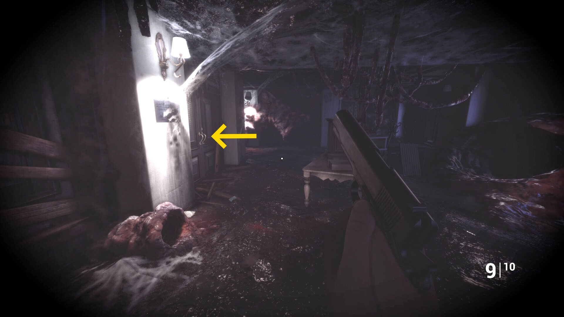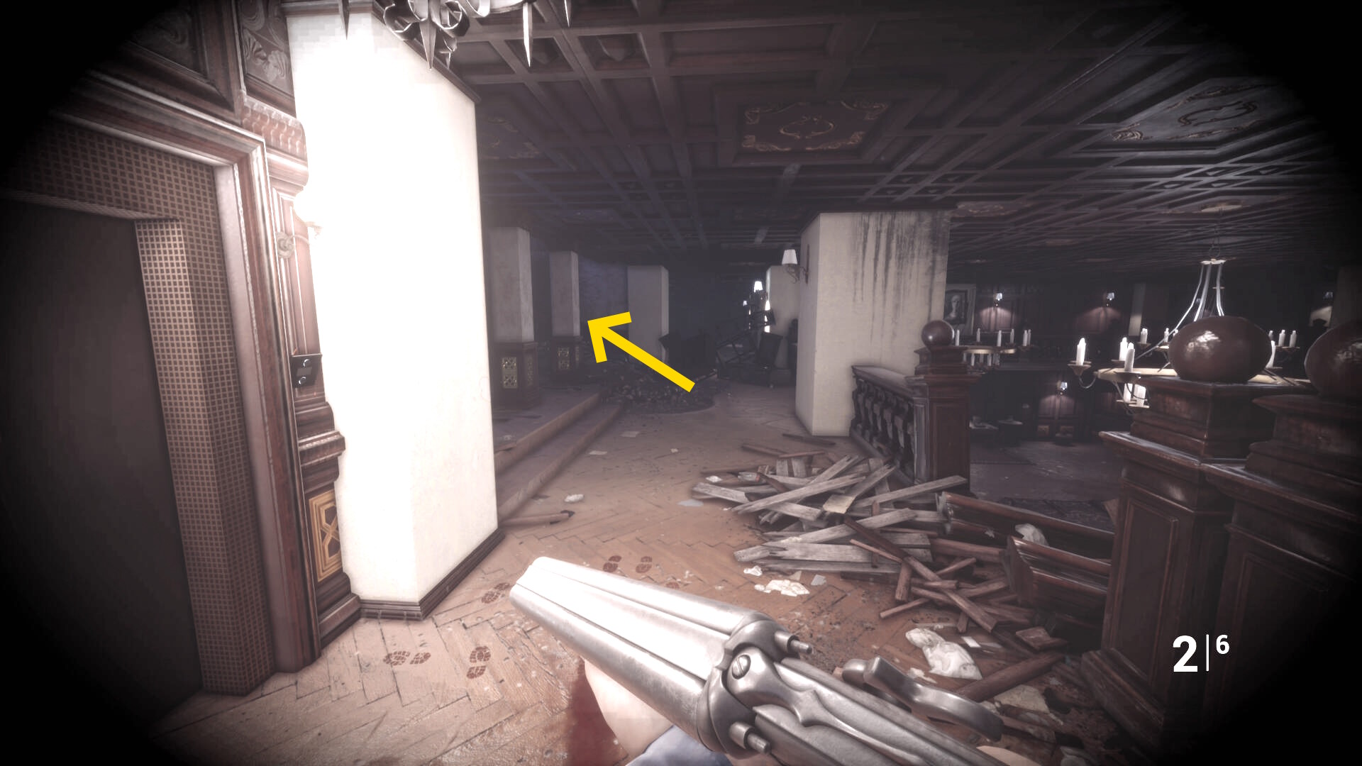 • ピストル弾薬がある引き出しのところから後ろを向き、奥に伸びる廊下を進む