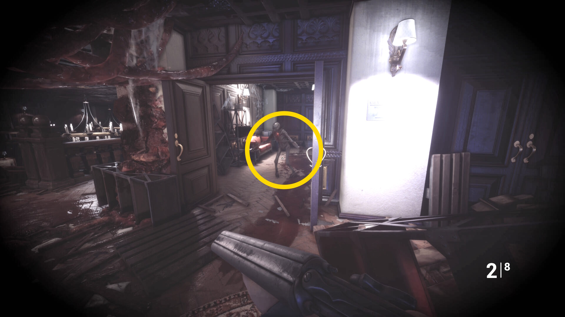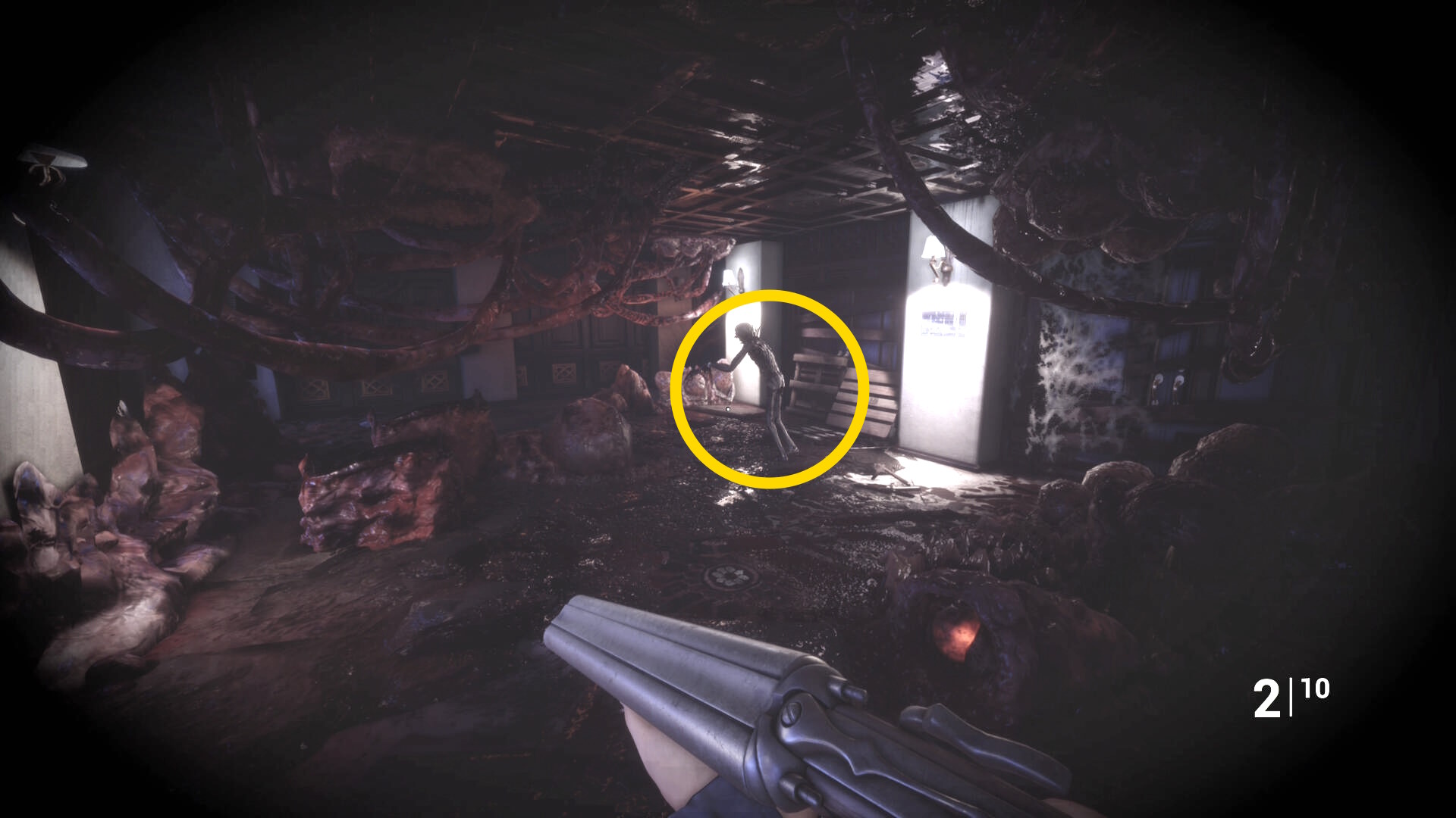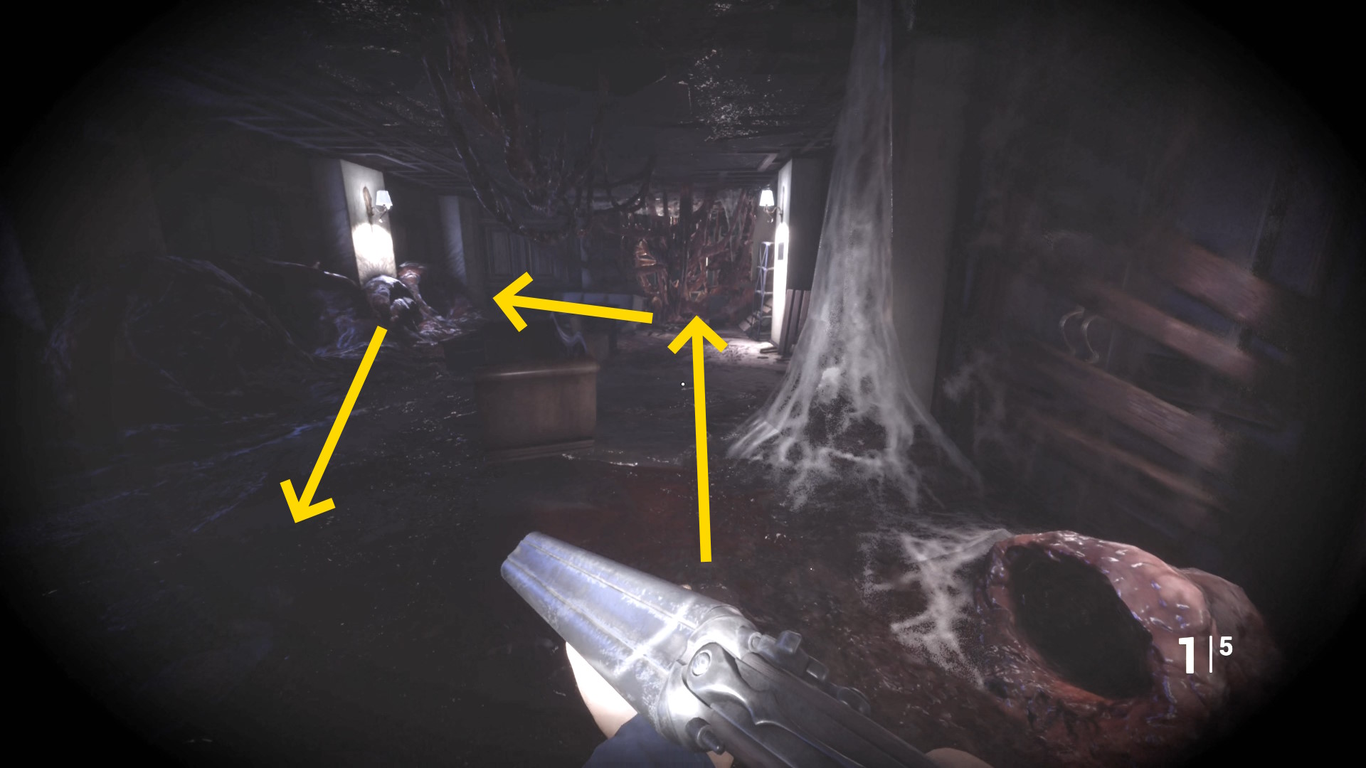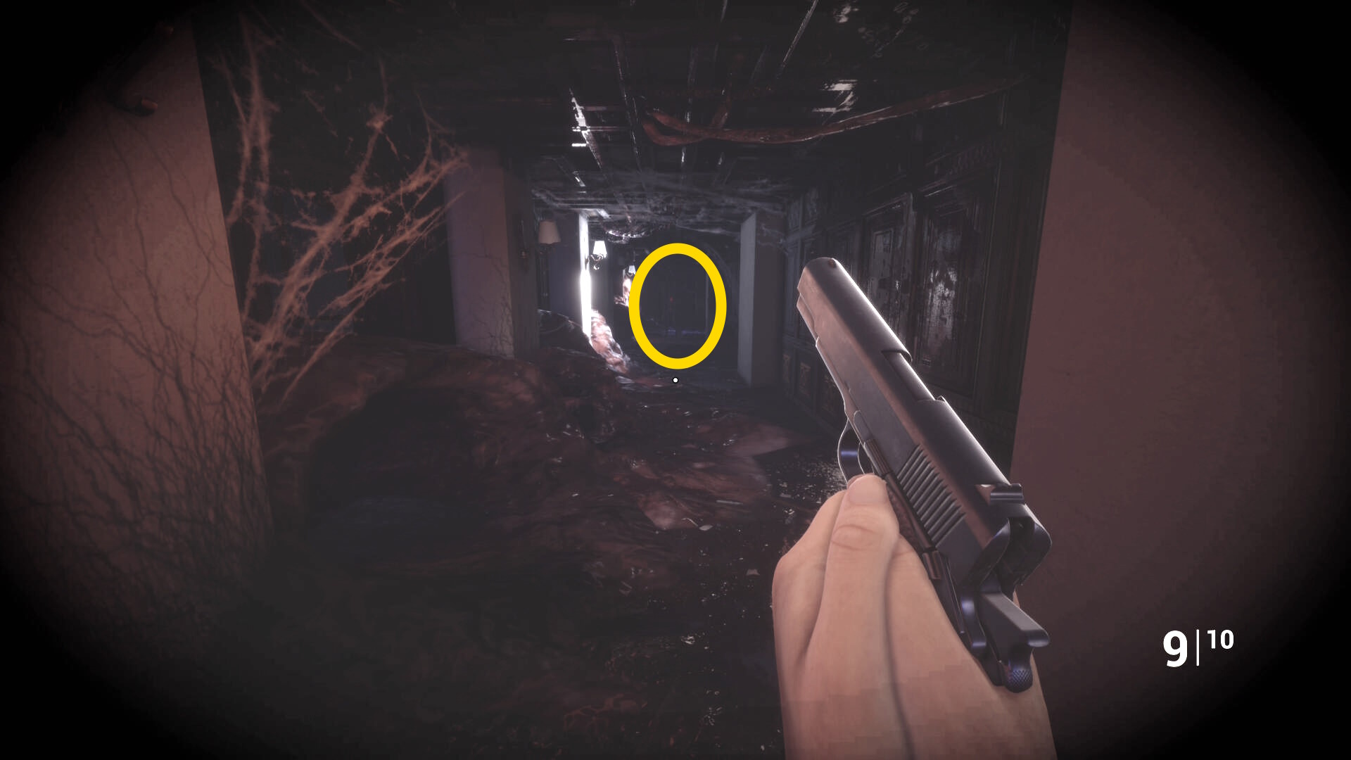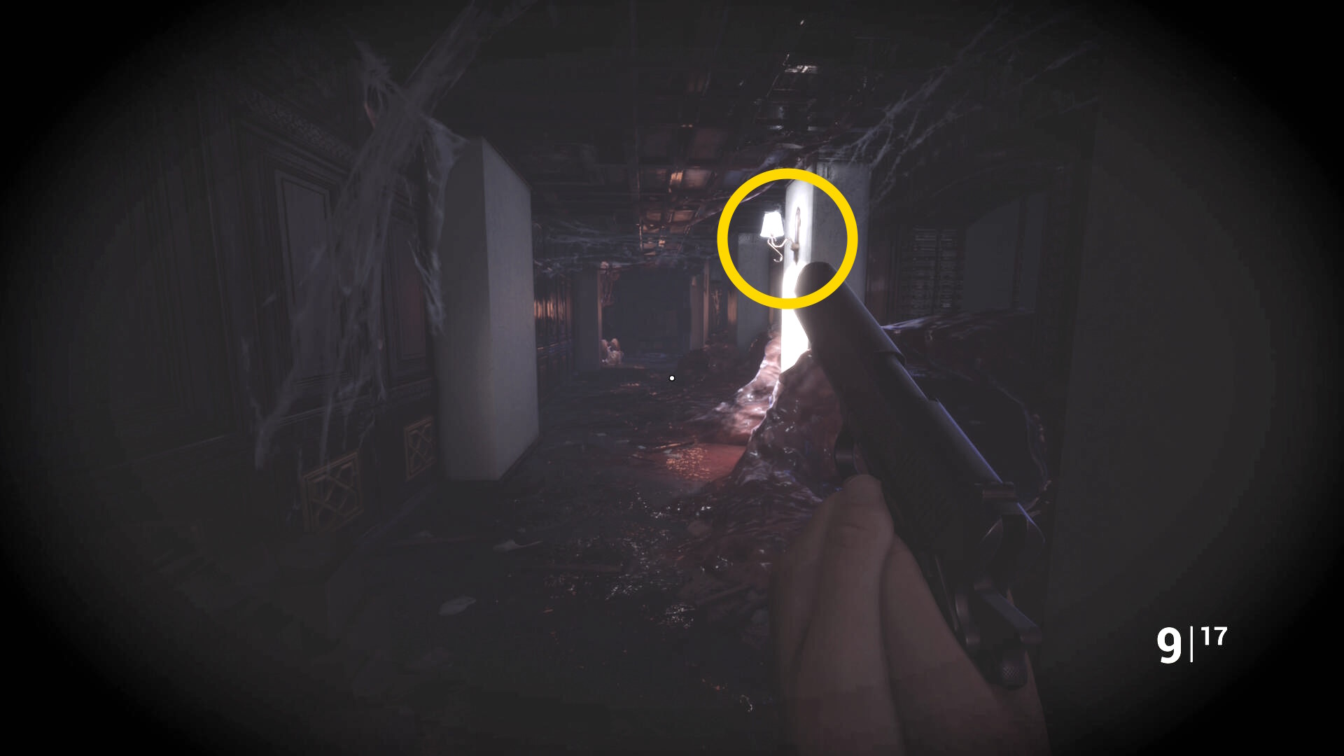 • ピストル弾薬がある引き出しのところから後ろを向き、奥に伸びる廊下を進む