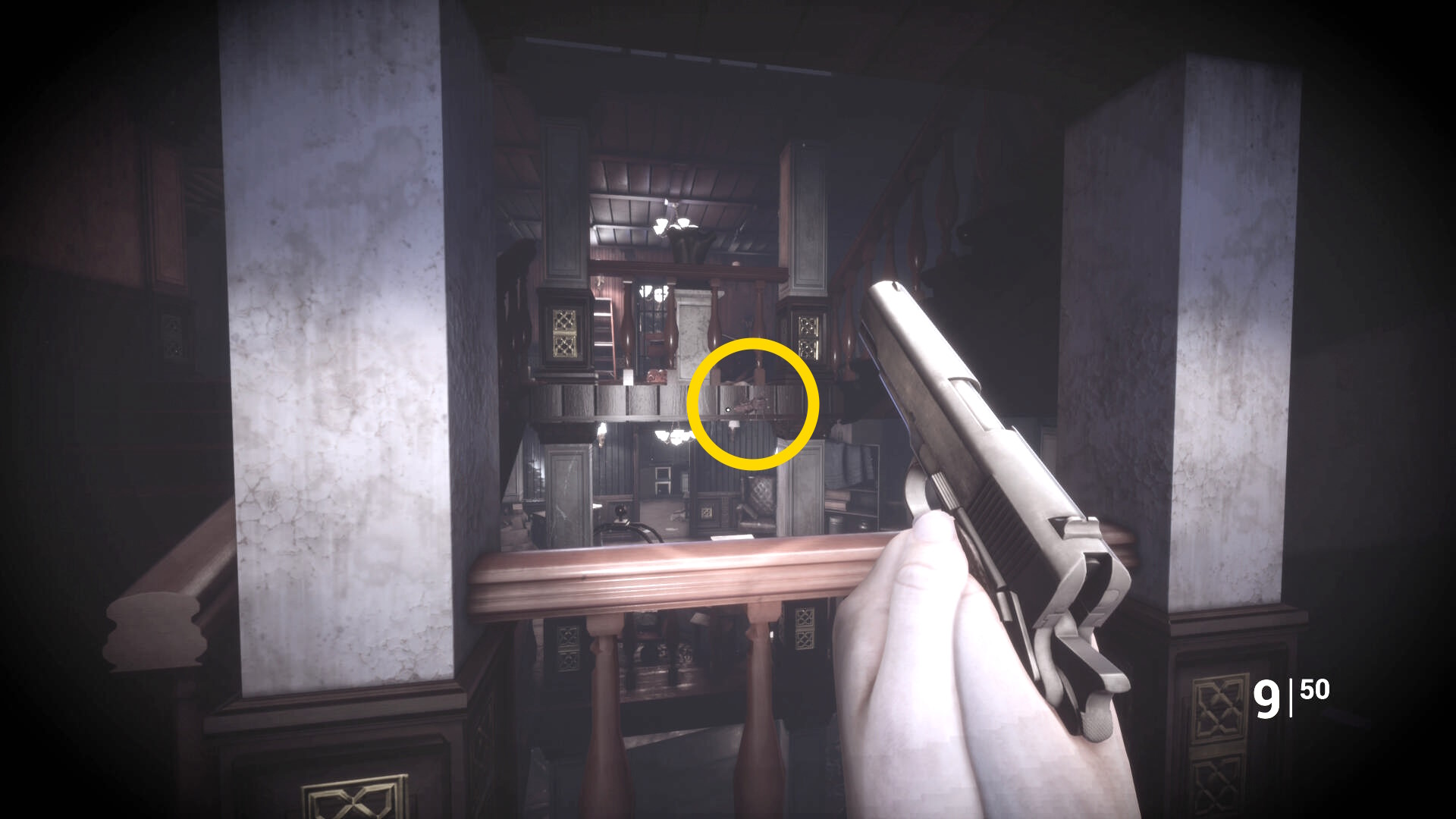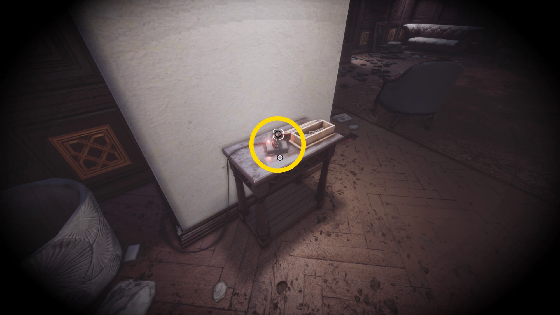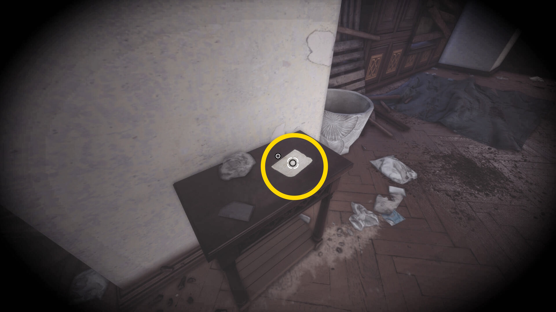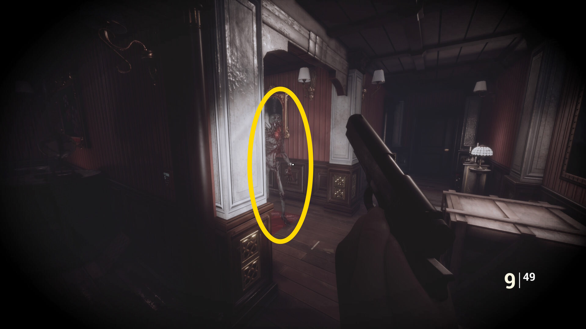 • 後ろを向くと花瓶が乗った台に ピストル弾薬 あり