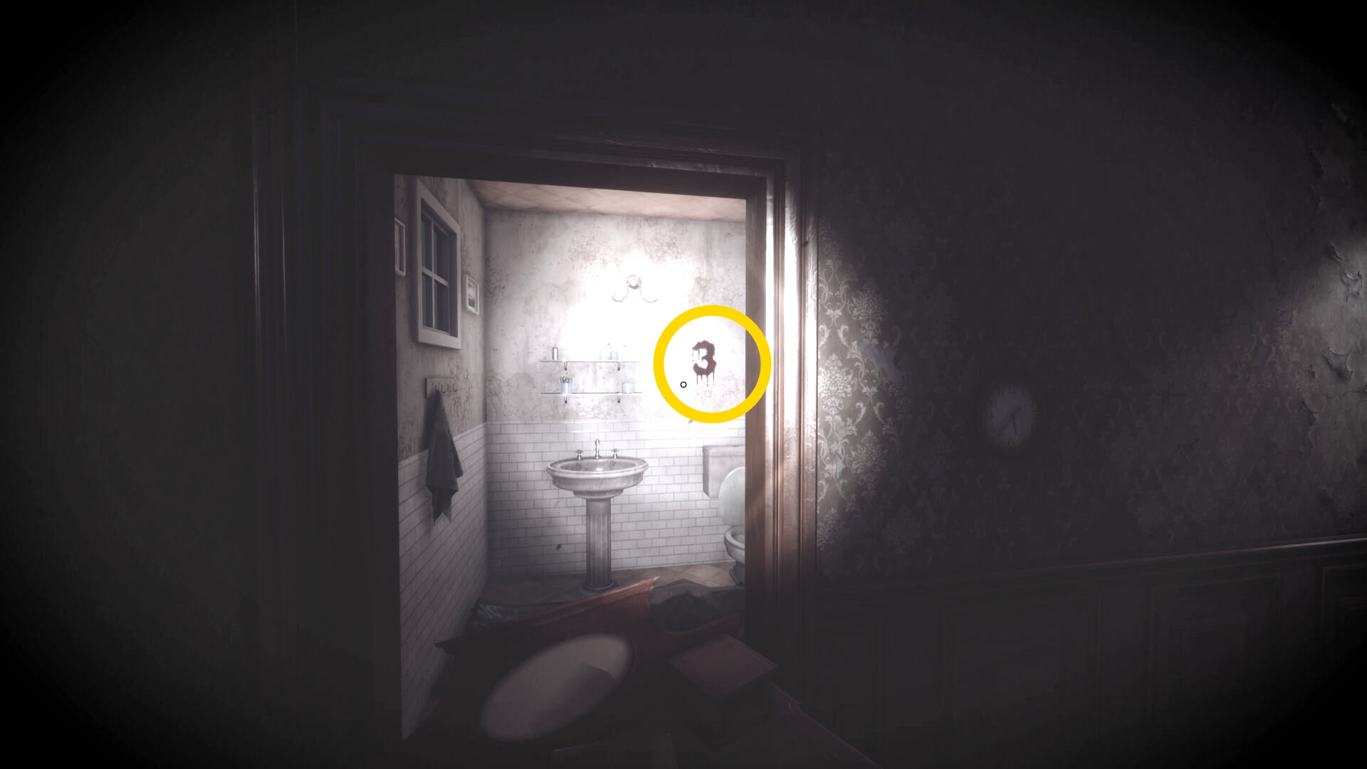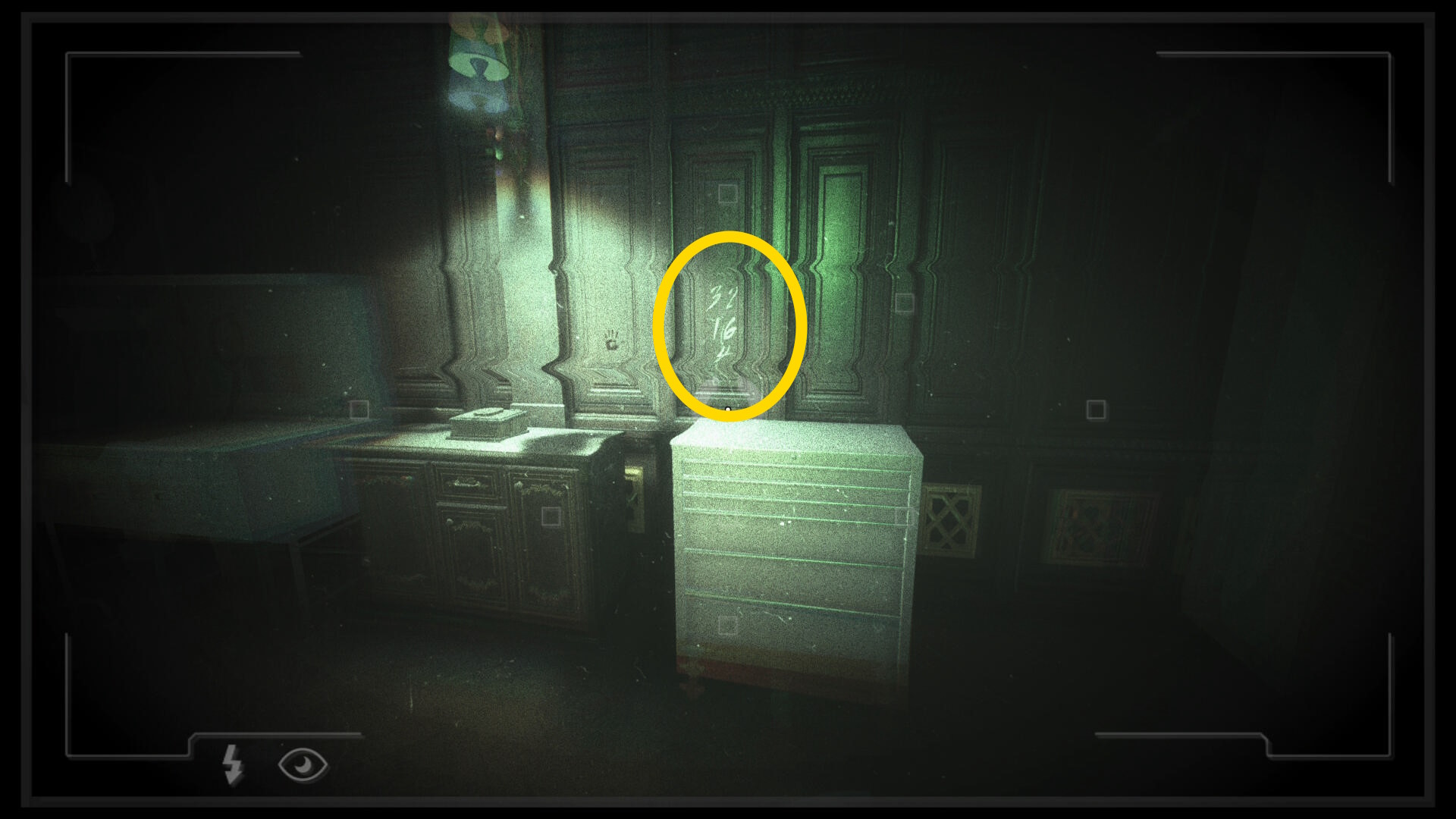 • 暗視カメラを発動すると壁に 32 16 4 の数字が浮かぶ(下画像2枚目)