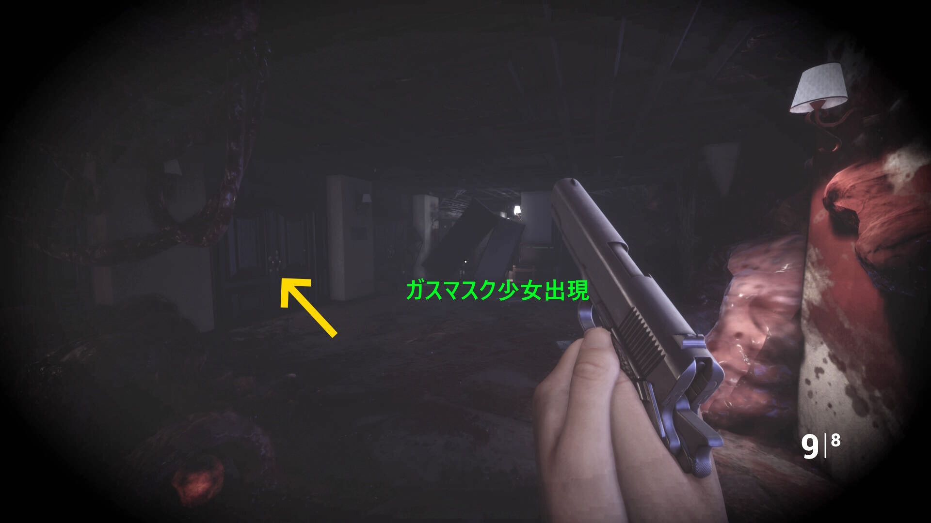 • 本来は604号室を出て、右にいる(ガスマスク少女が出現したあたり。下画像2枚目)