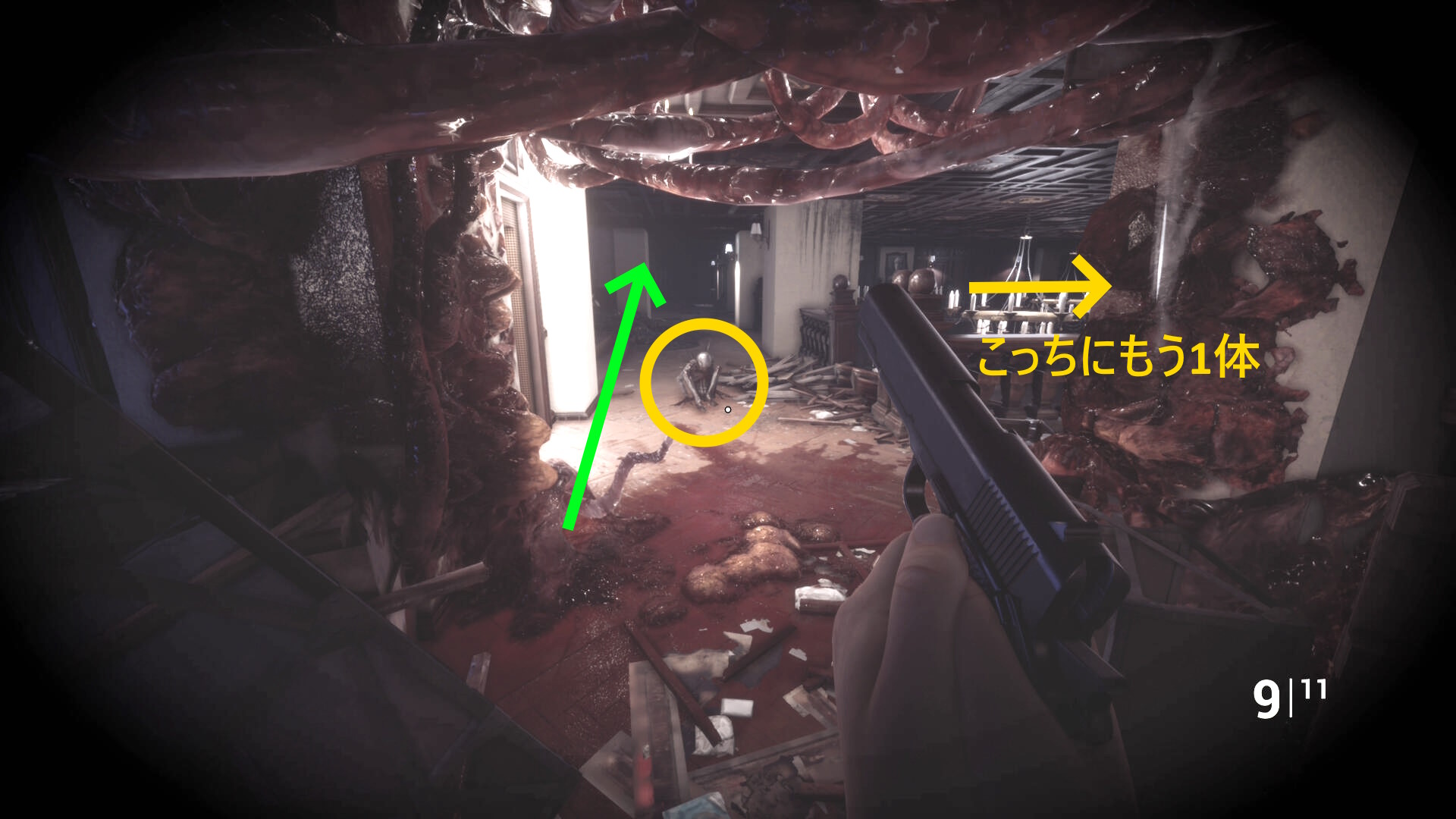 • 604号室から出る前、敵が1体廊下にいるのでキルする
