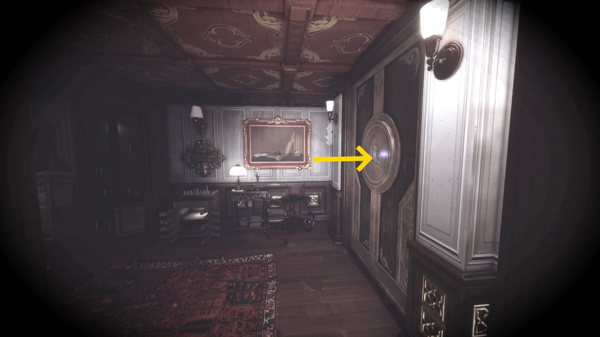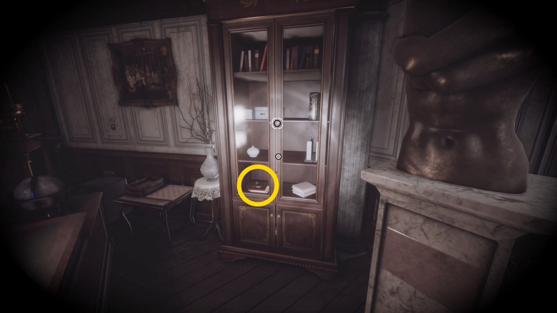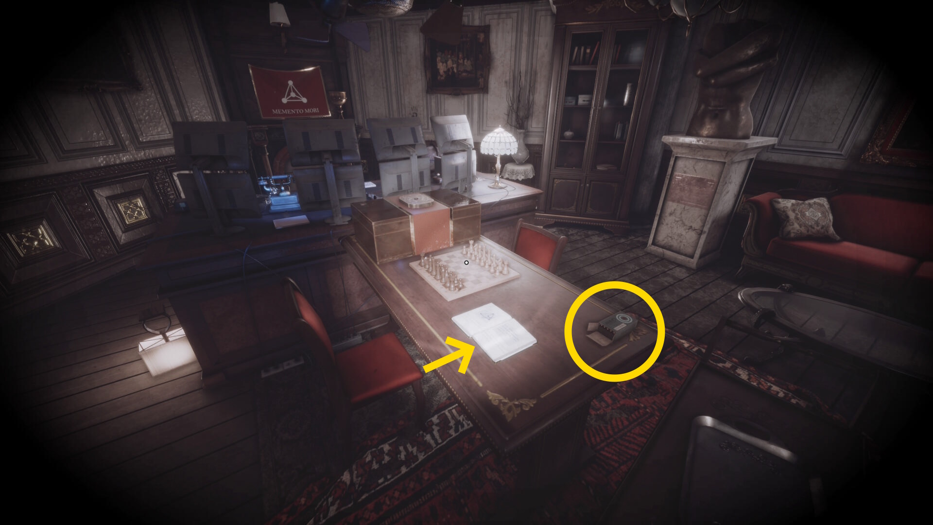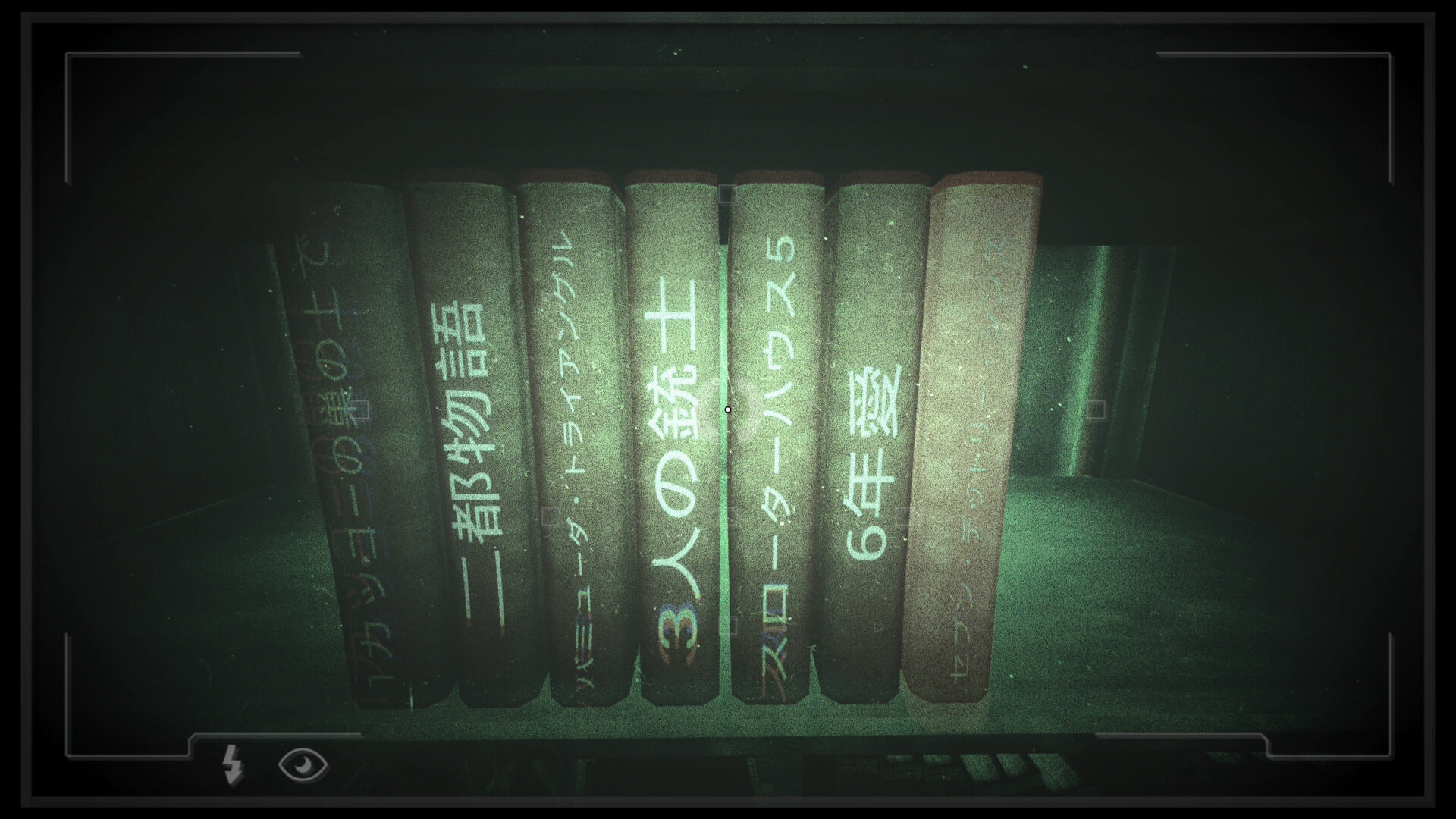 • 本棚に向かって暗視カメラを起動すると中央に 3人の銃士(本) があるので回収(下画像2枚目)