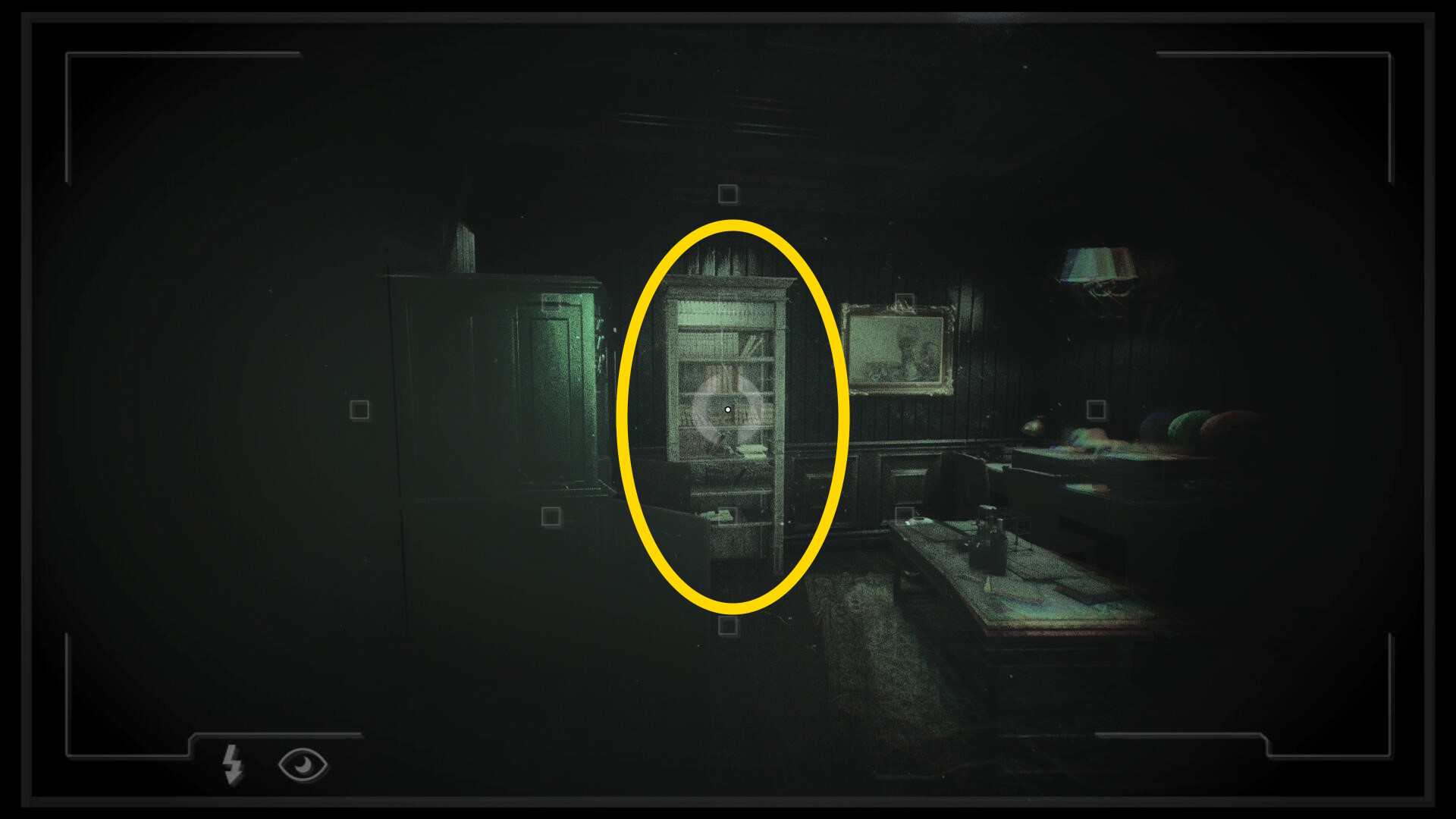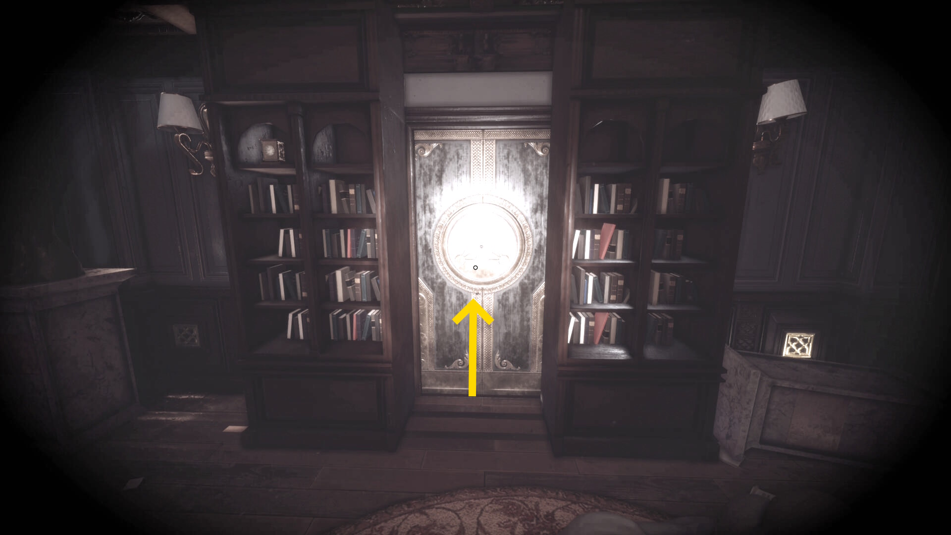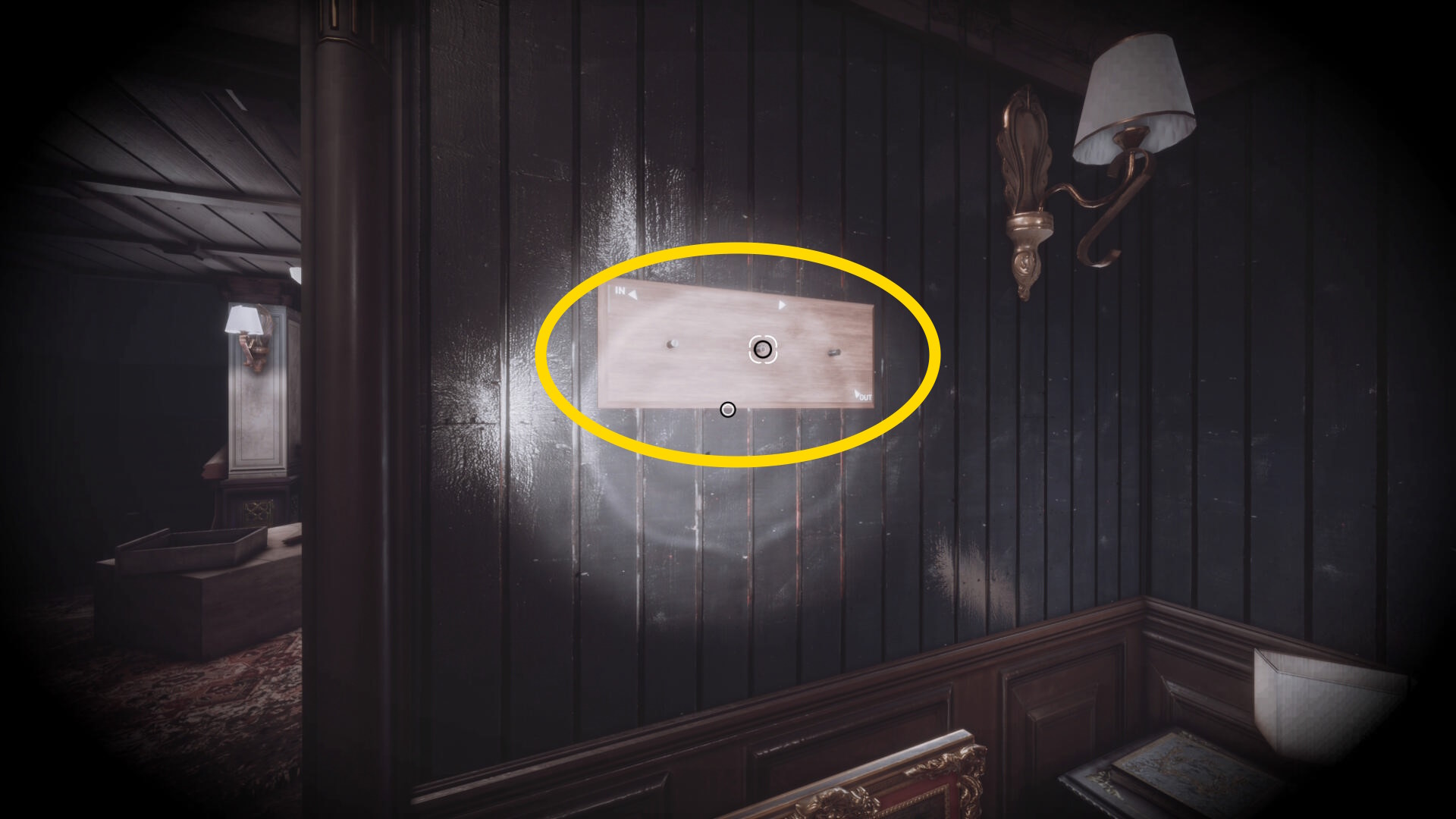 • 本棚に向かって暗視カメラを起動すると中央に 3人の銃士(本) があるので回収(下画像2枚目)