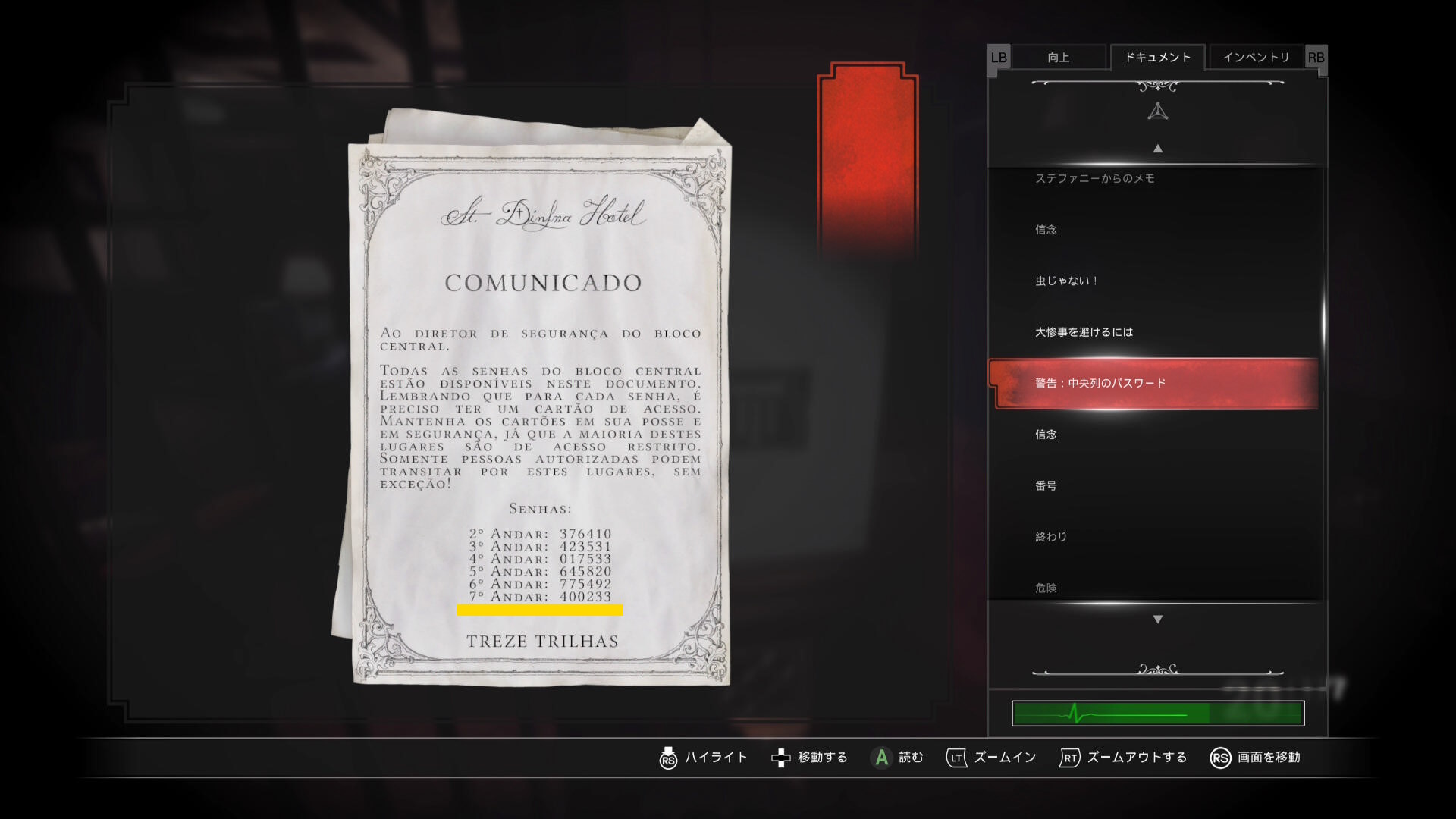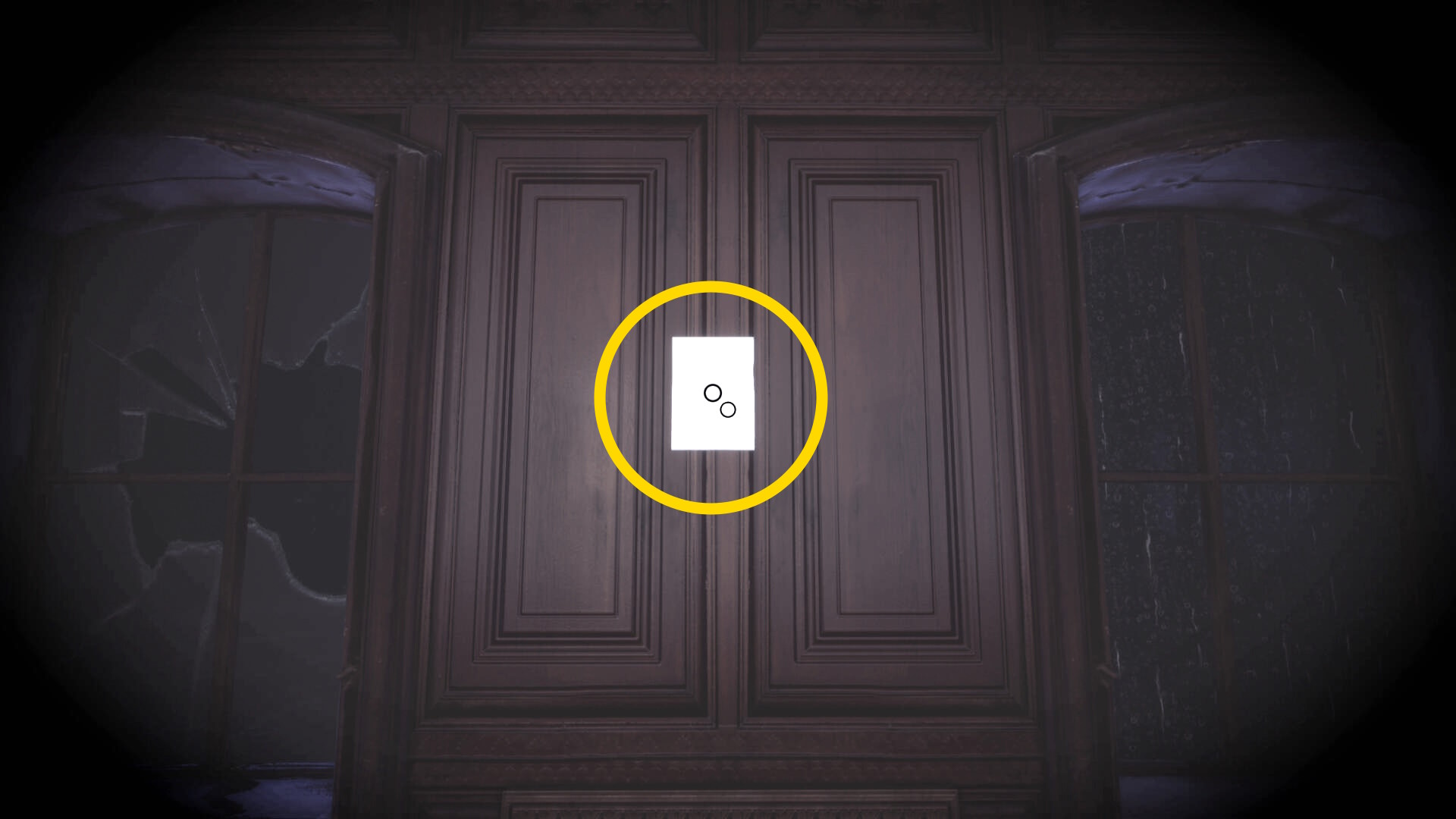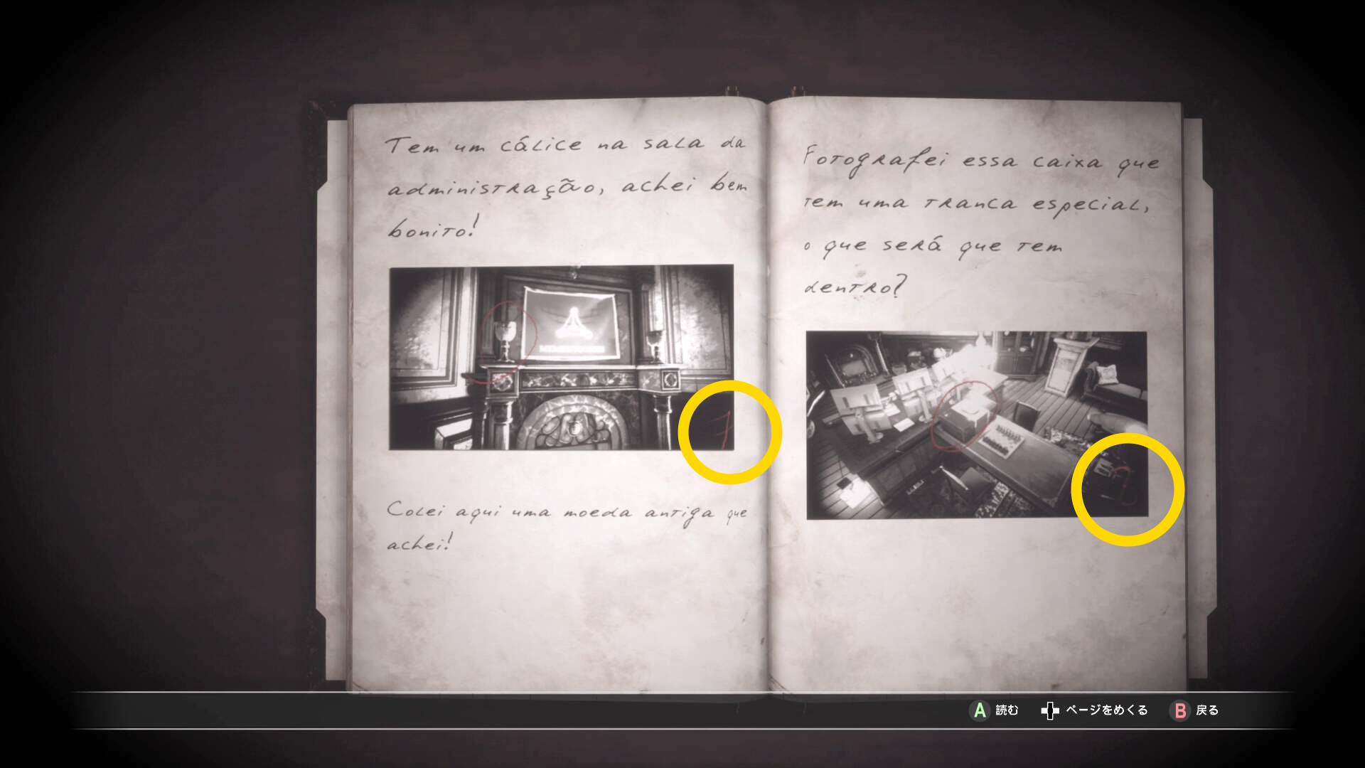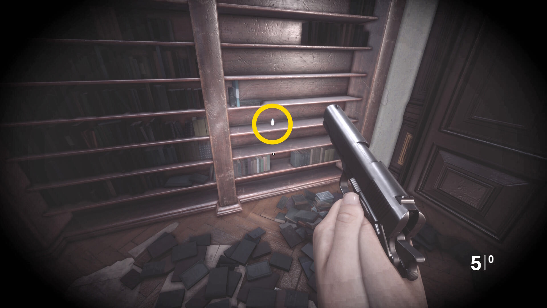 • 本棚に向かって暗視カメラを起動すると中央に 3人の銃士(本) があるので回収(下画像2枚目)