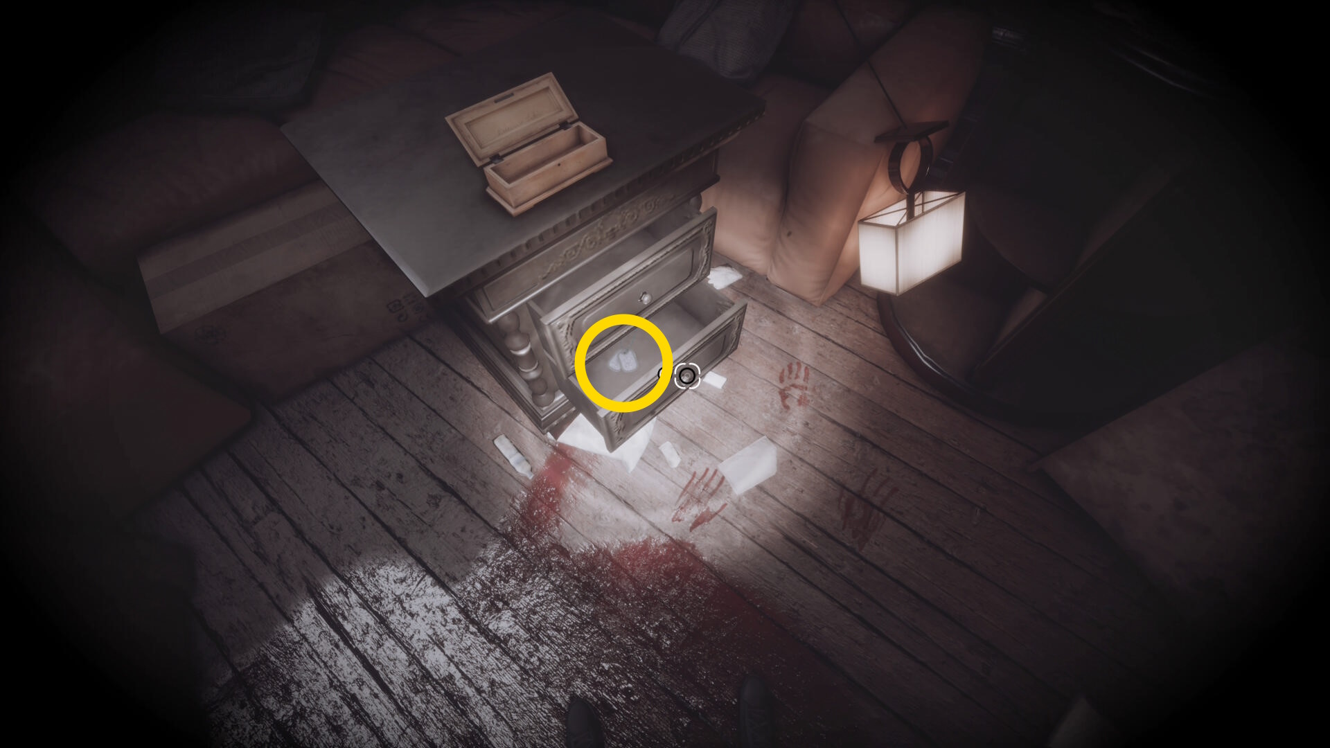• 左を向くと机があり、中央の引き出しに ピストル弾薬 がある