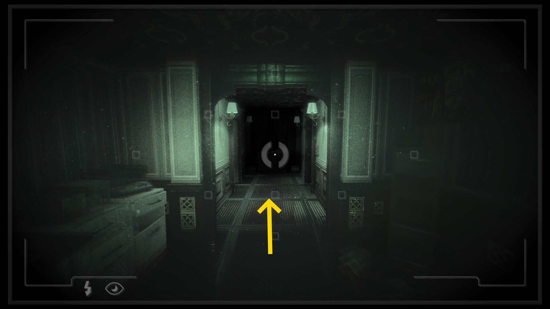 • 暗視カメラを起動して左の壁を通過し、そのまま進んでロペスの部屋(610号室)に戻る
