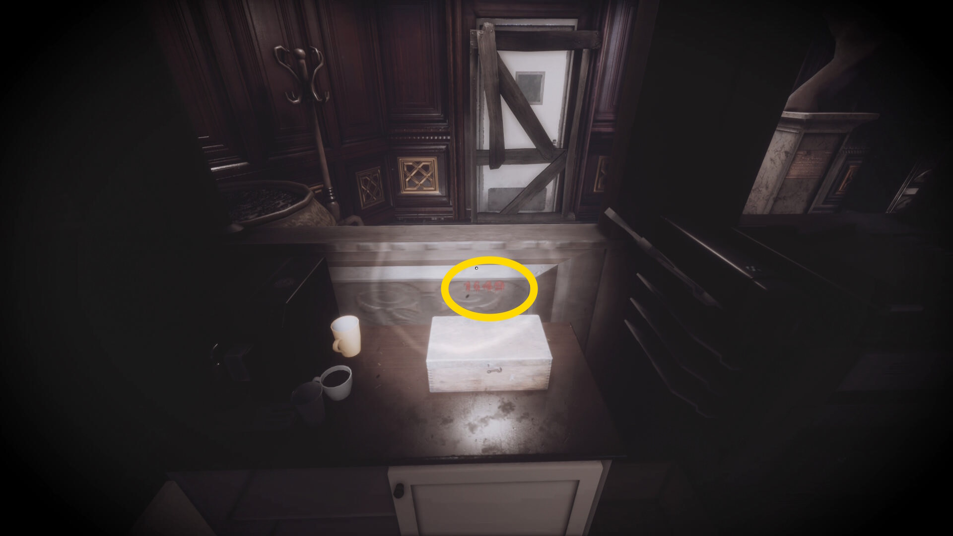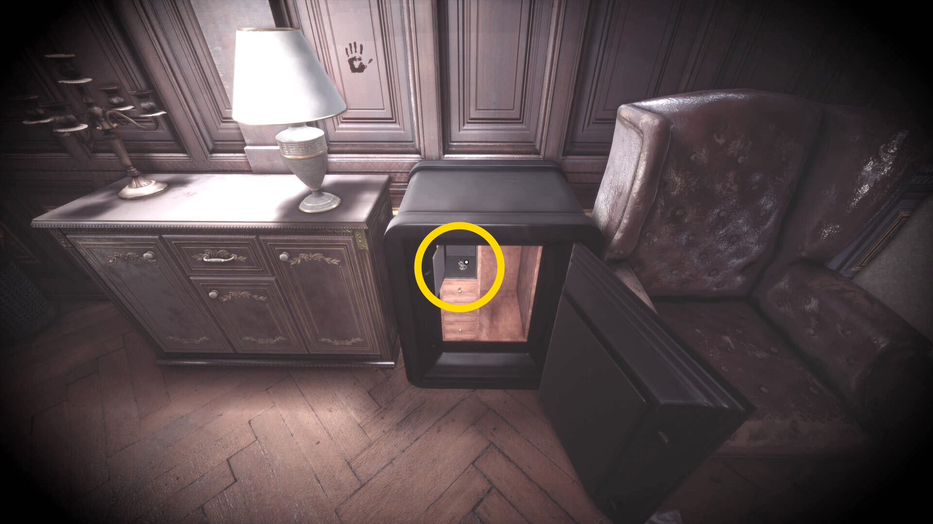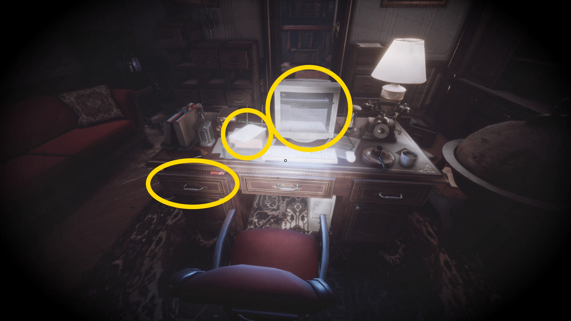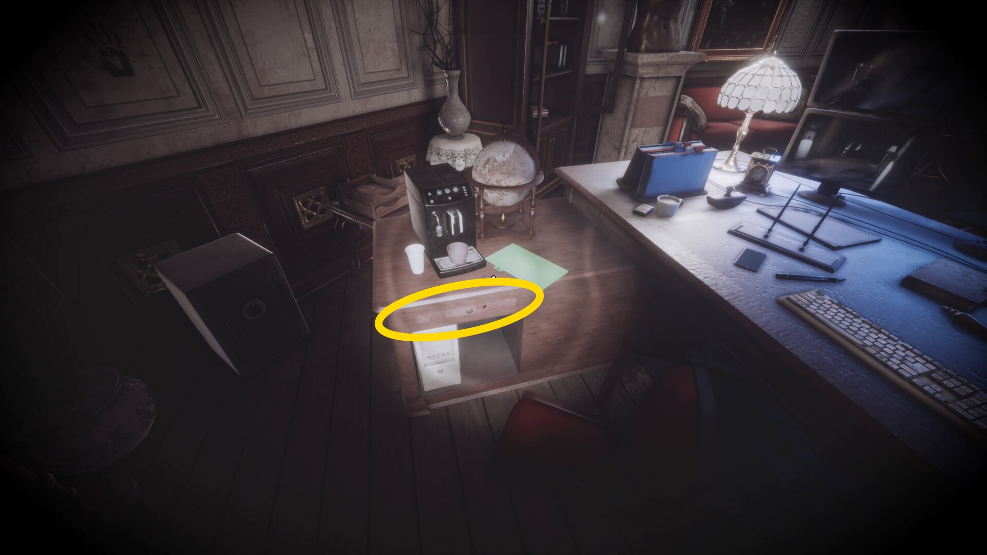 • 暗視カメラを発動するとこの机に金庫が出現するが、パスワードが不明なので今はスルー(下画像2枚目)