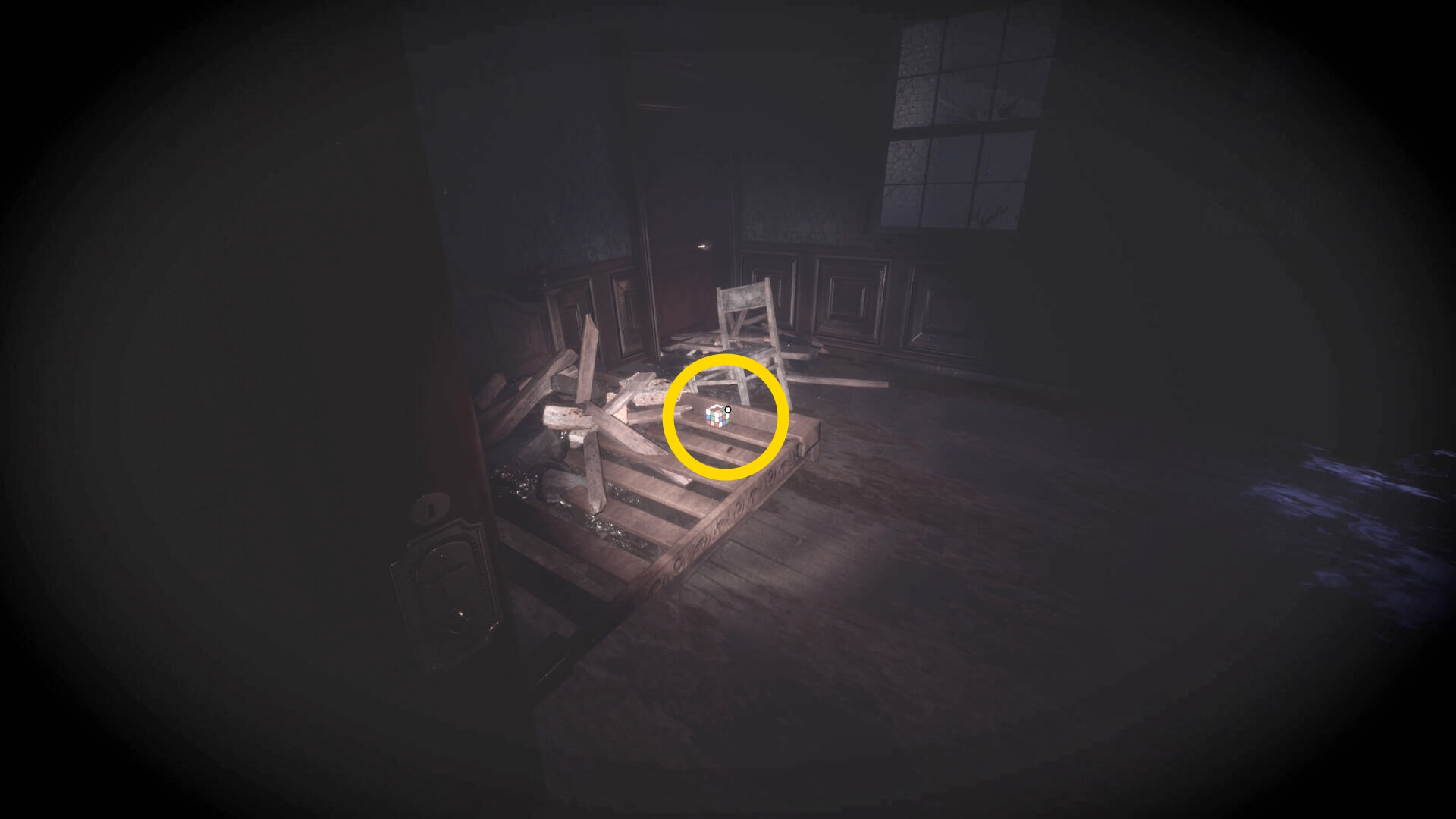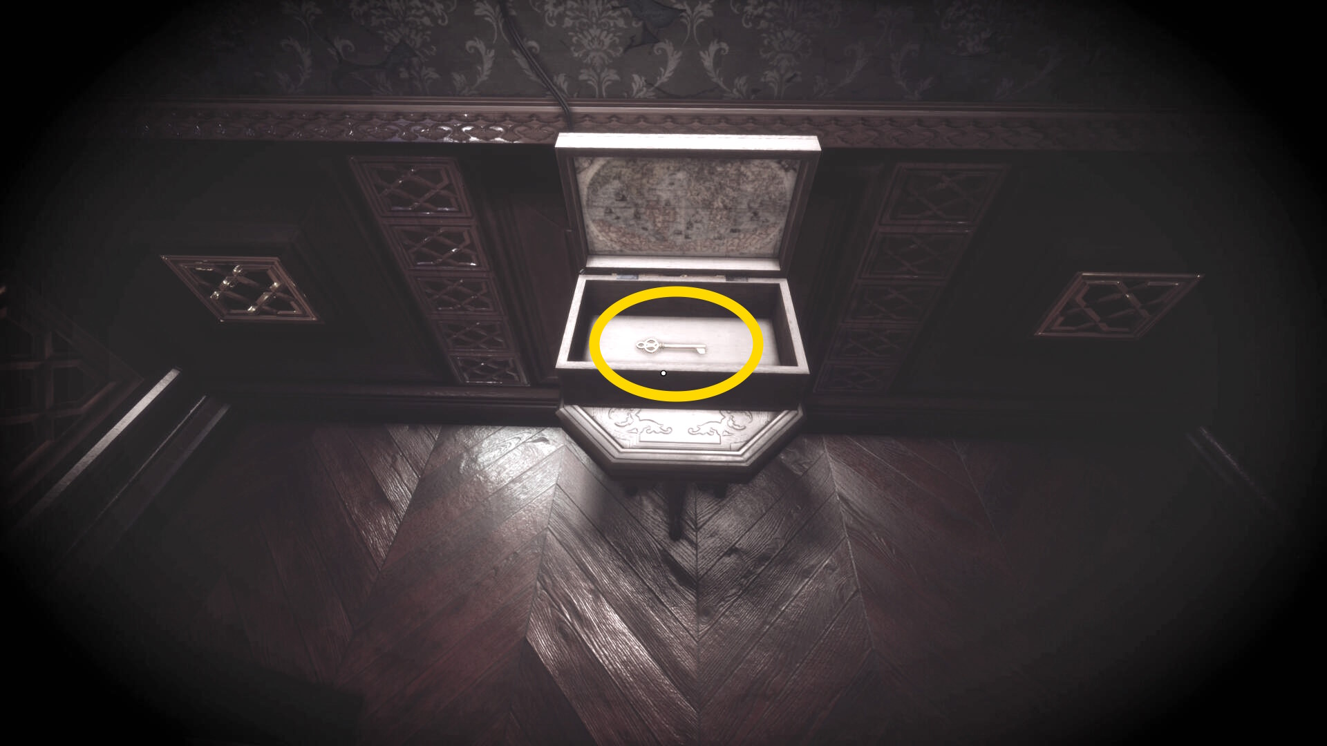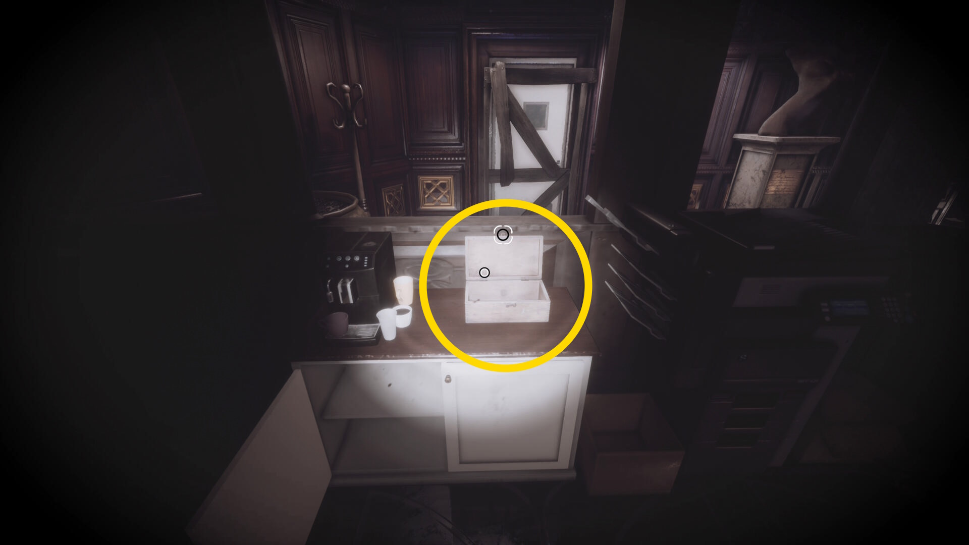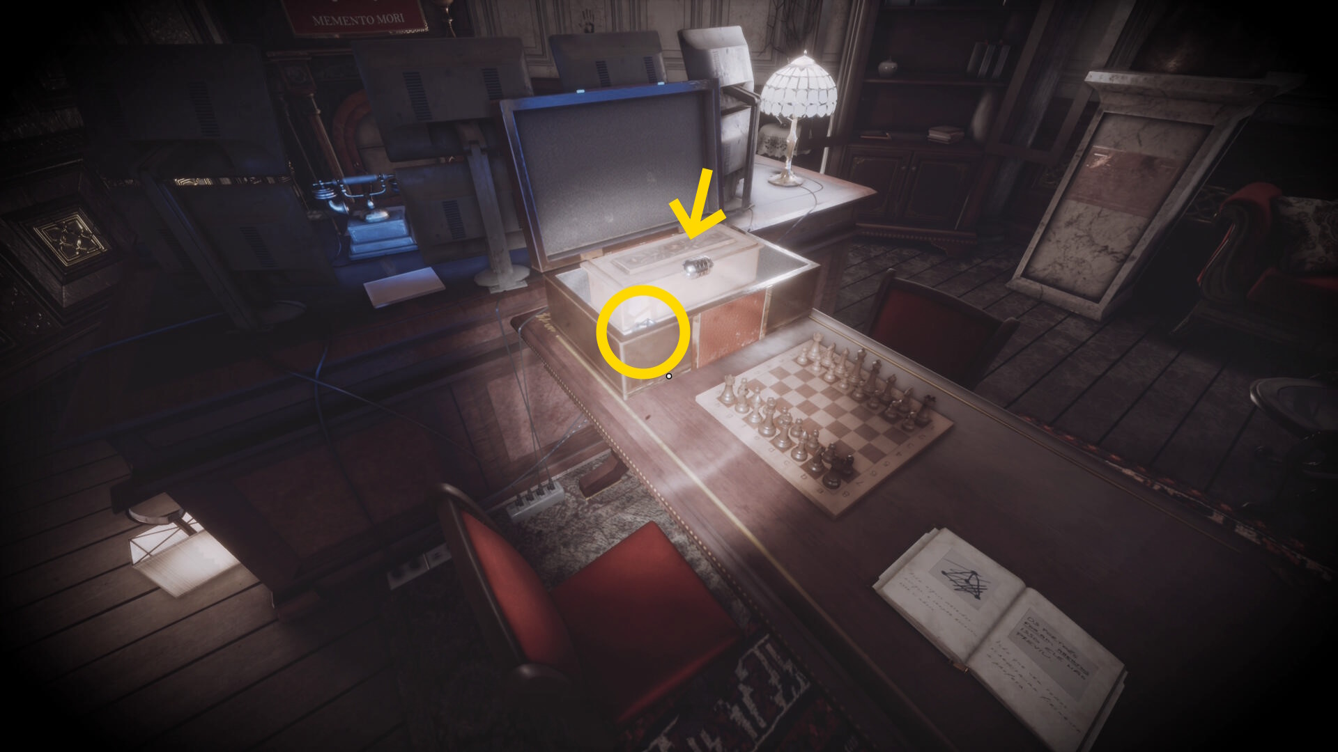 • 左前方の椅子の上に箱が出現しているのでモジュール式鍵で解錠