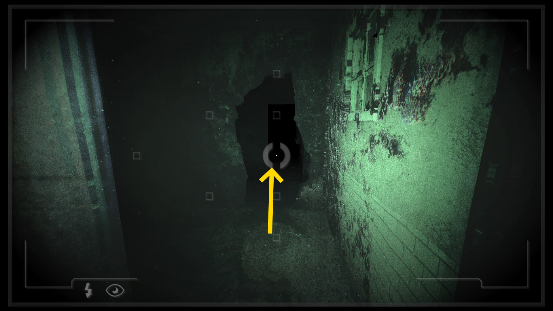 • 暗視カメラを起動して壁の穴をしゃがみ移動して通過