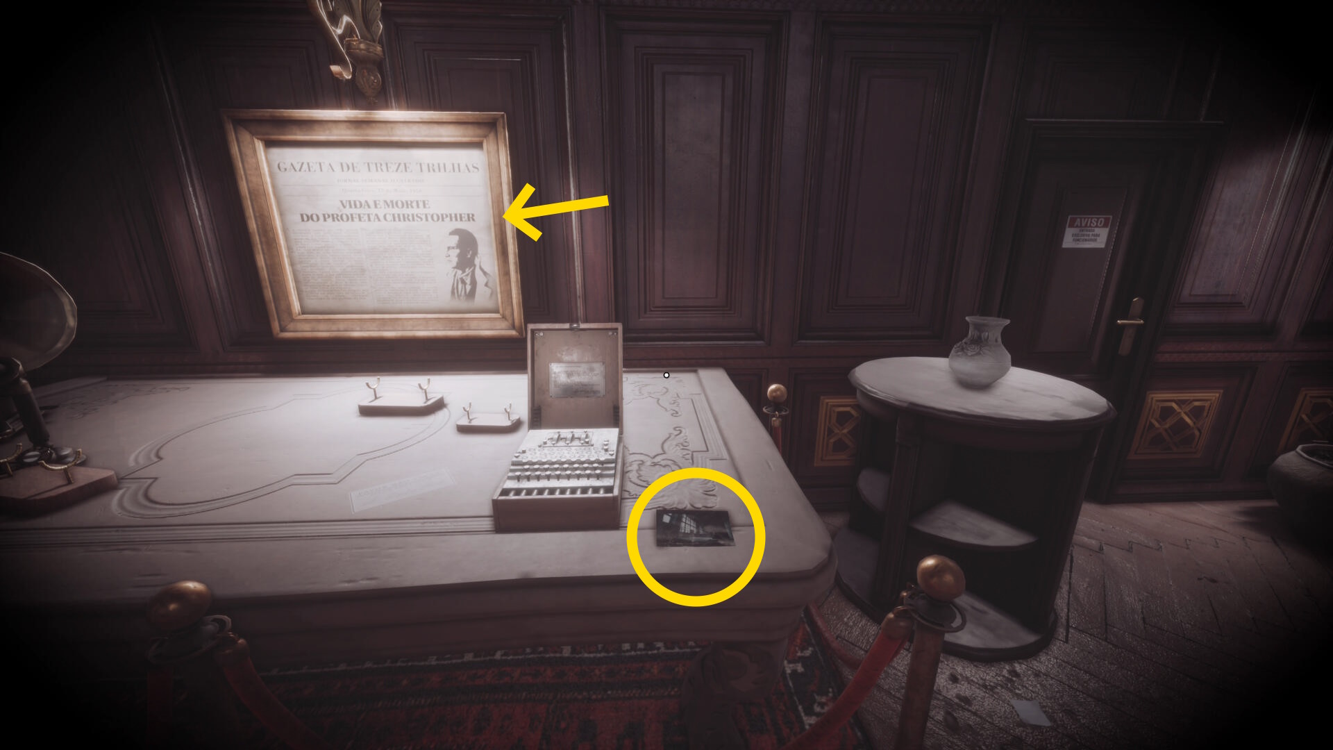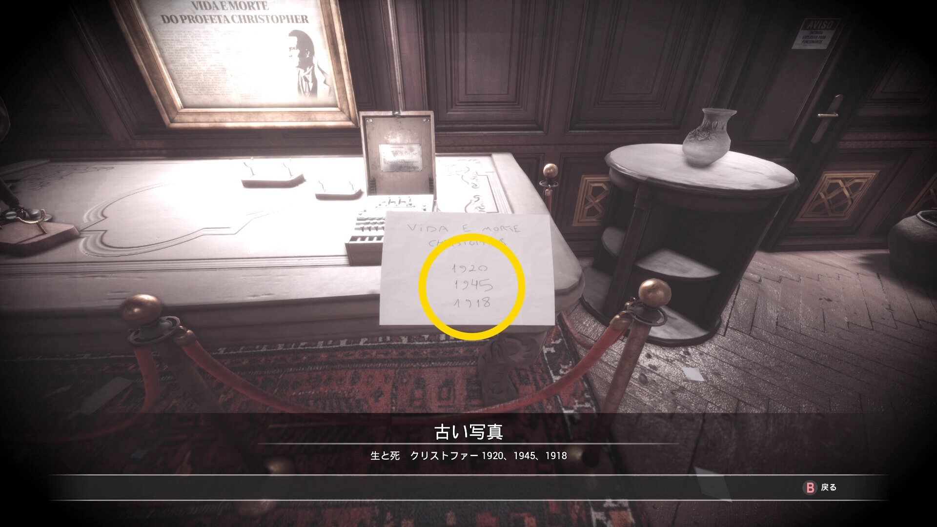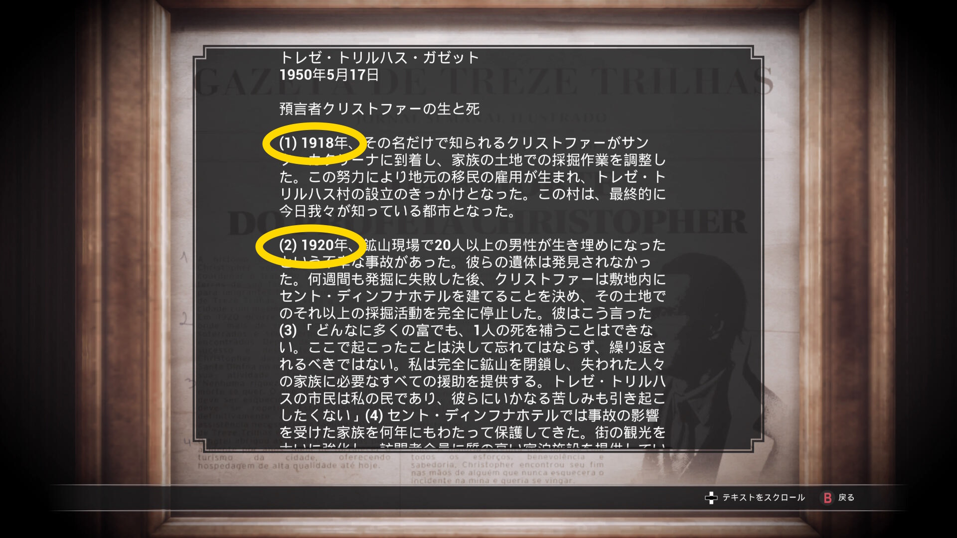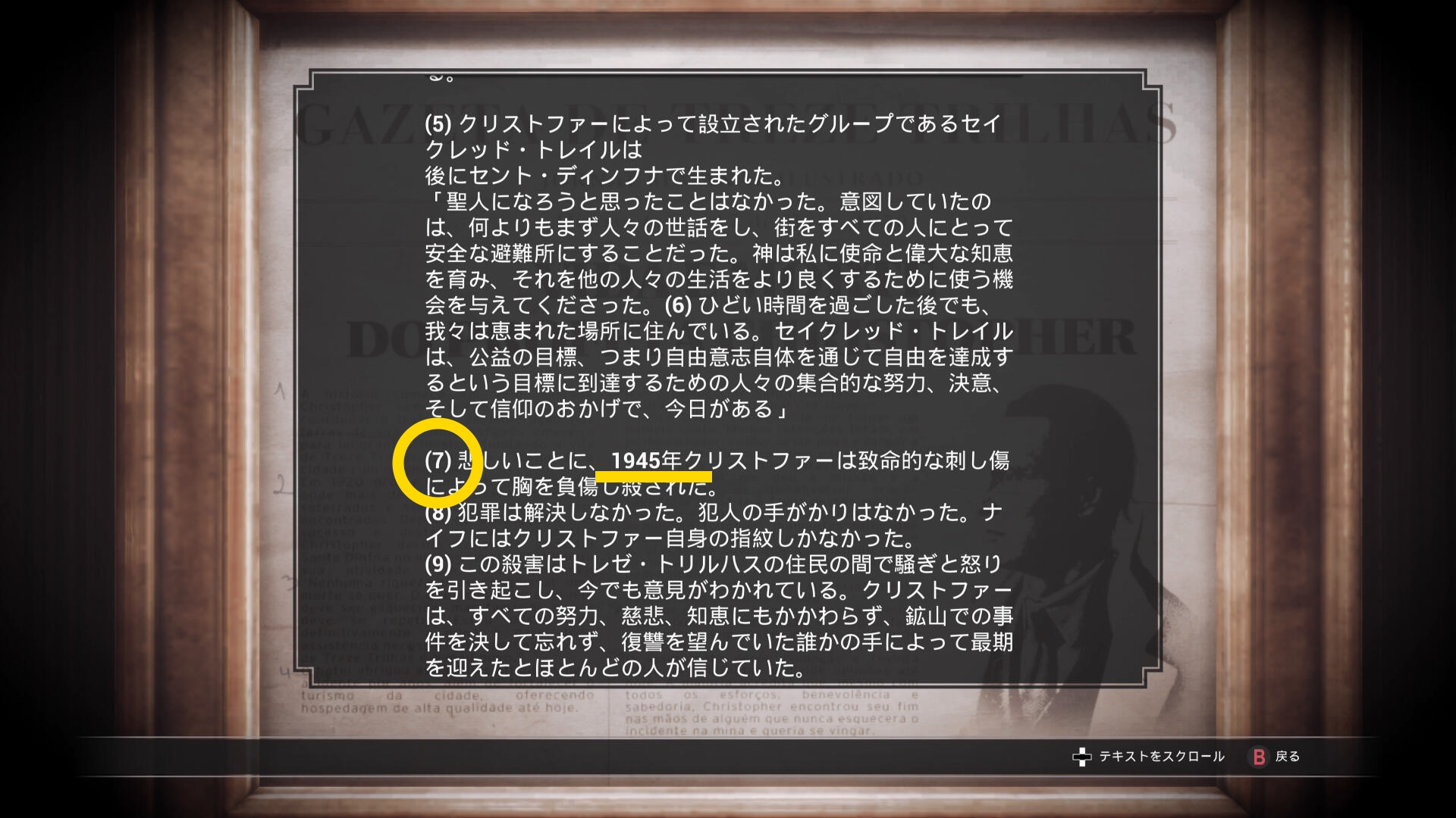 • 壁にかかる額に入ったクリストファーの歴史を読むとメモが追加される