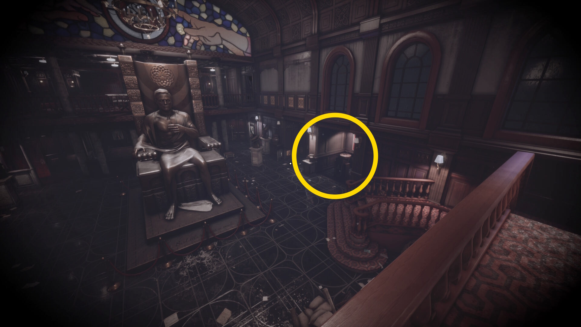 • 管理室を出て、正面に見えるクリストファー像が持つ聖杯をピストルで撃つ
