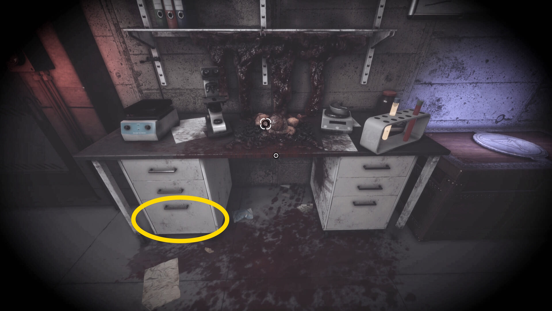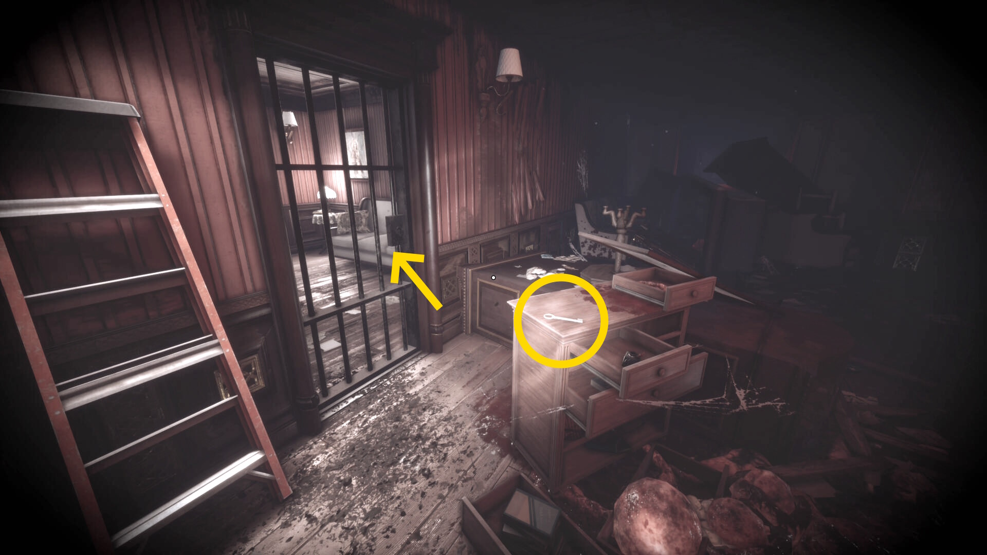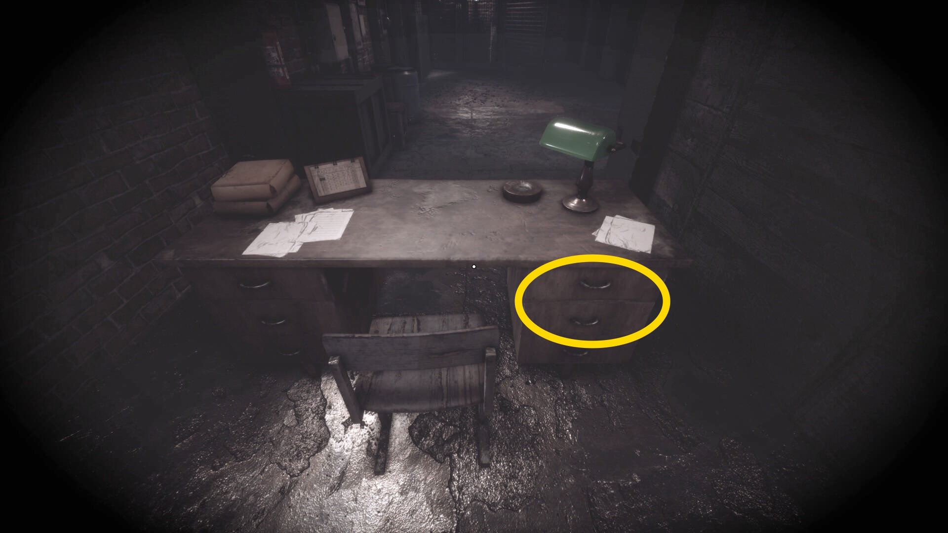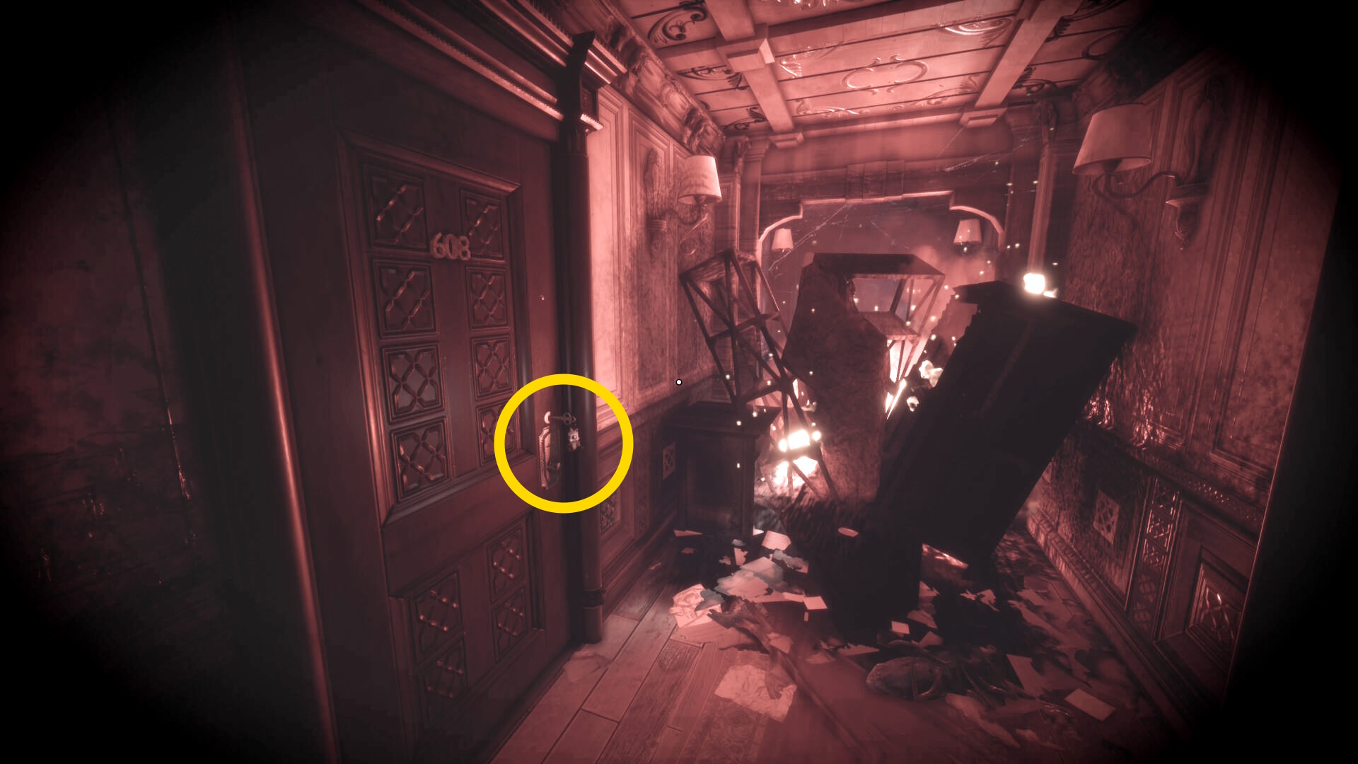 • ガスマスク少女の衝撃波を喰らわないように戻り、引き出しを開けて 608号室の鍵 を回収