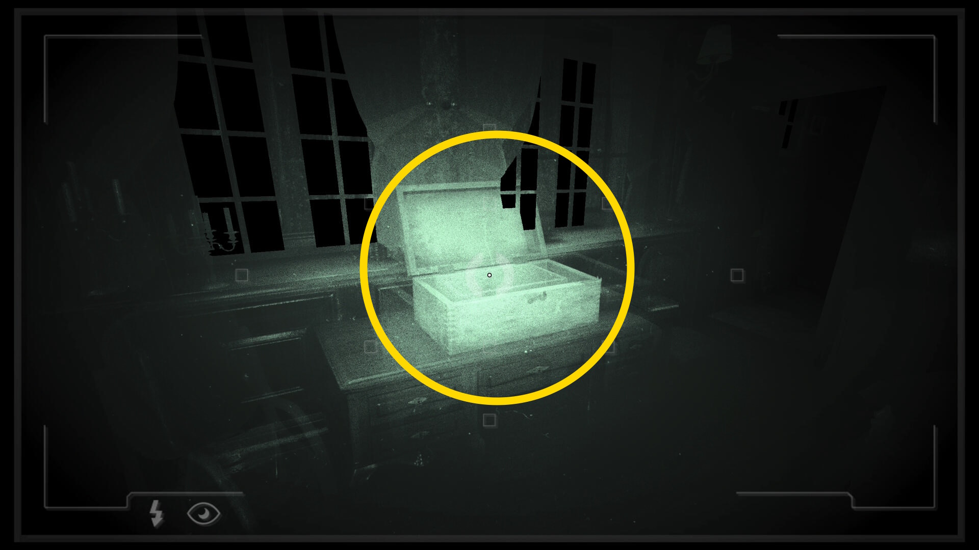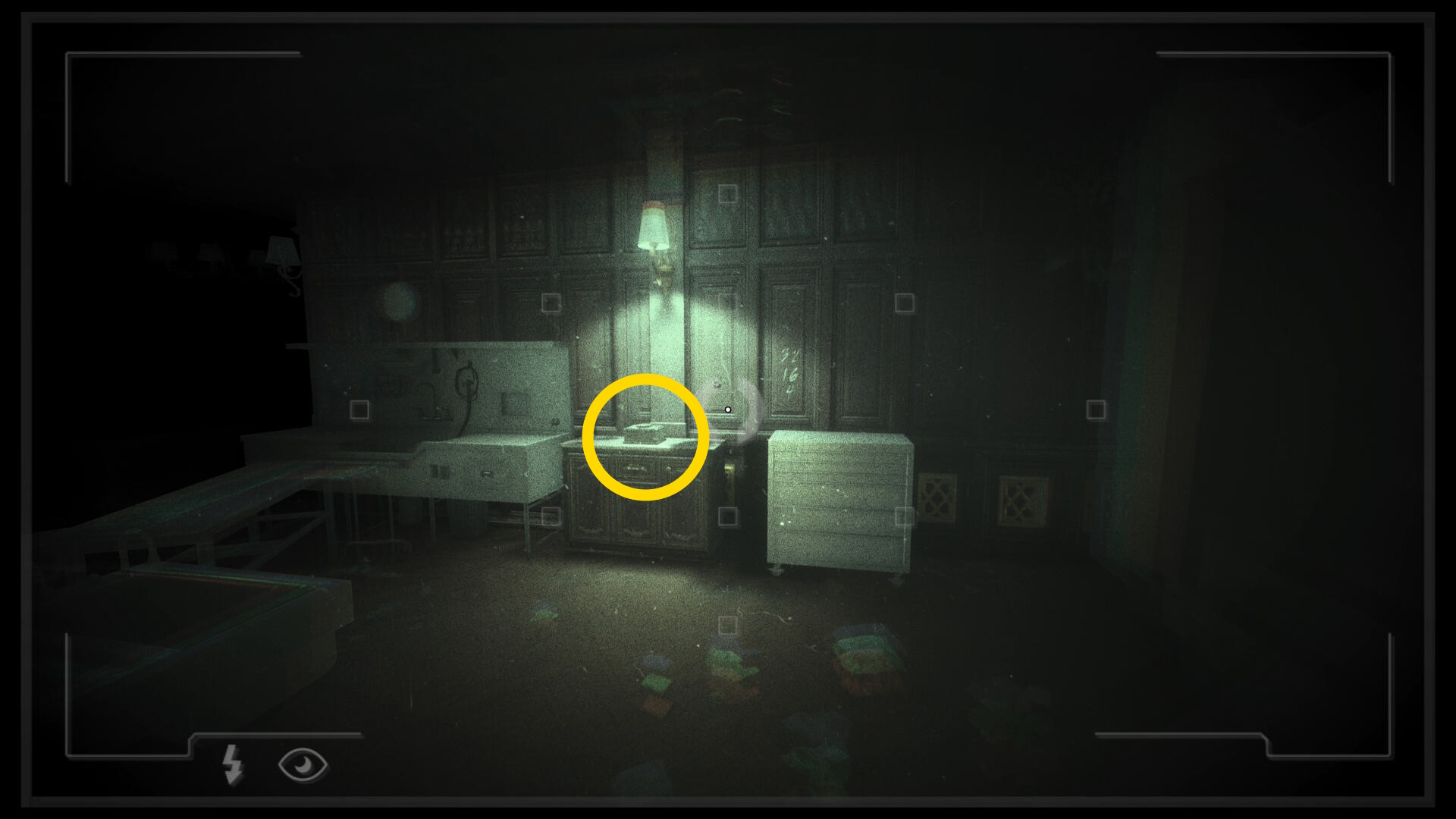 • 部屋に戻り、暗視カメラを起動して机上の木箱の中の写真を確認してからトイレに戻るとカットシーン発生