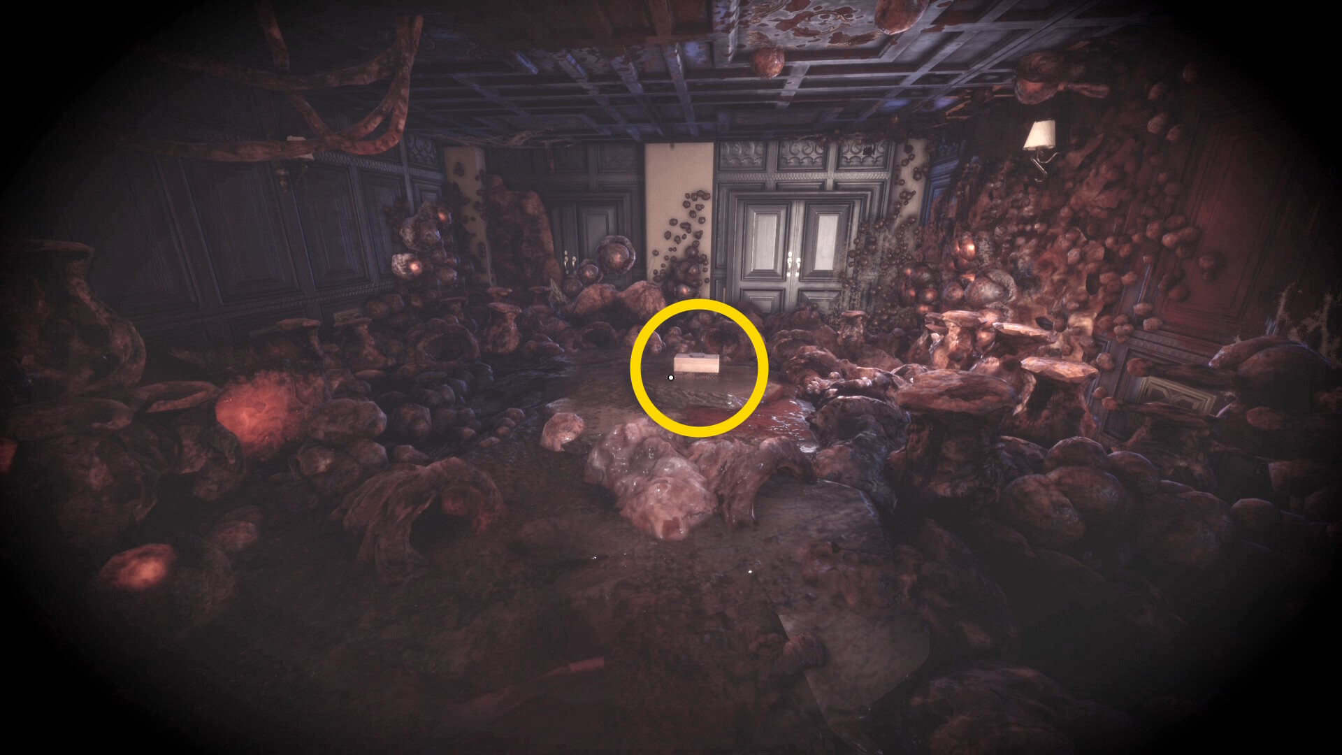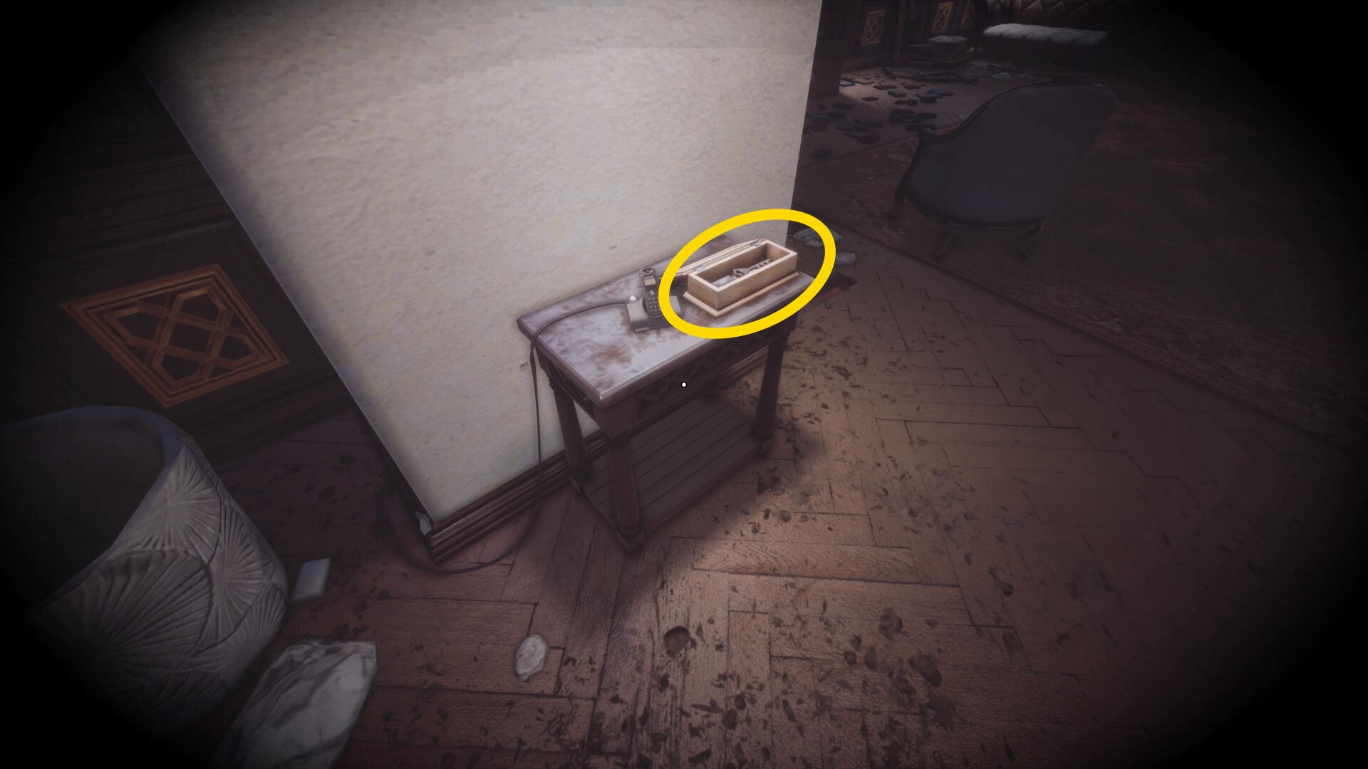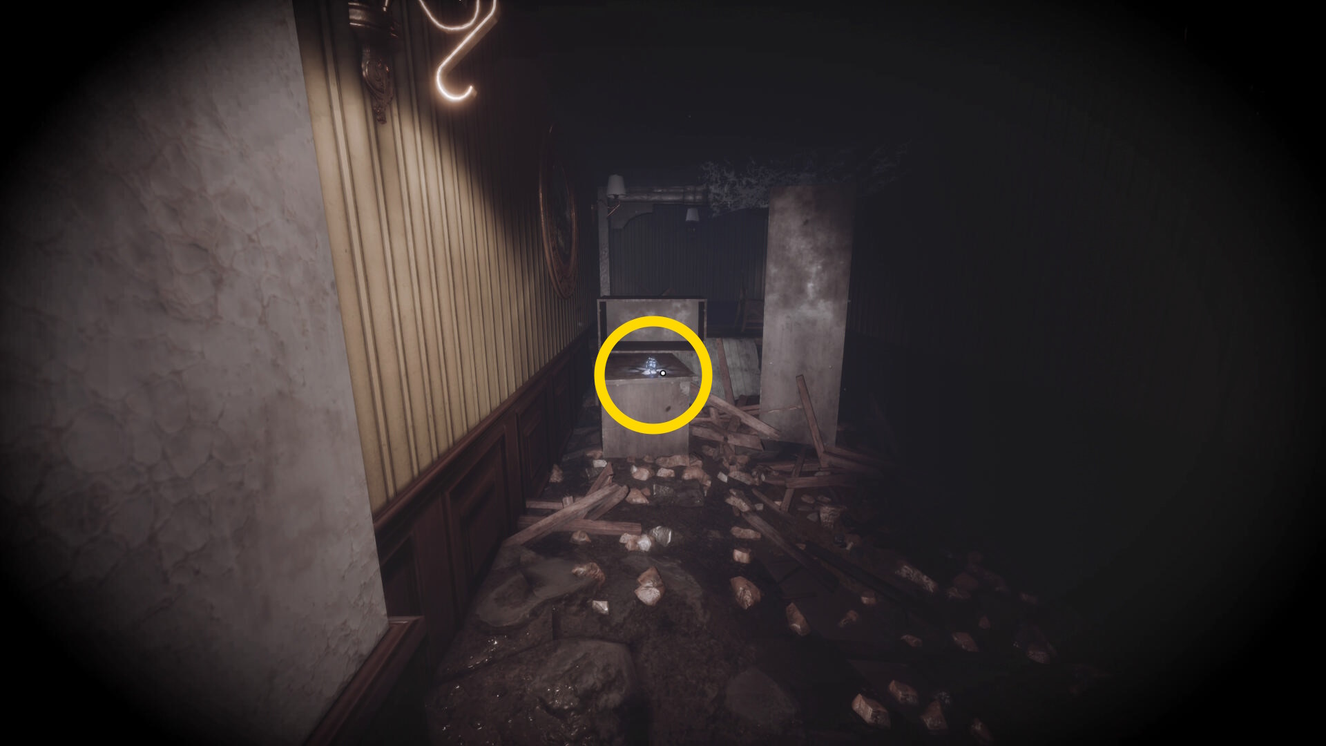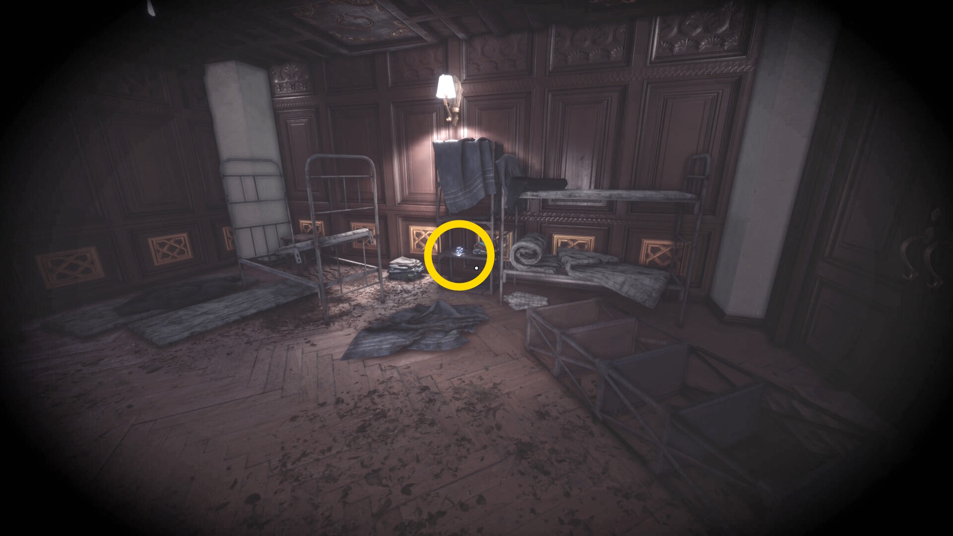 • 6階のサービスルームに入り、エレベーター1階のボタン を回収(その上の箱から 包帯 を回収)