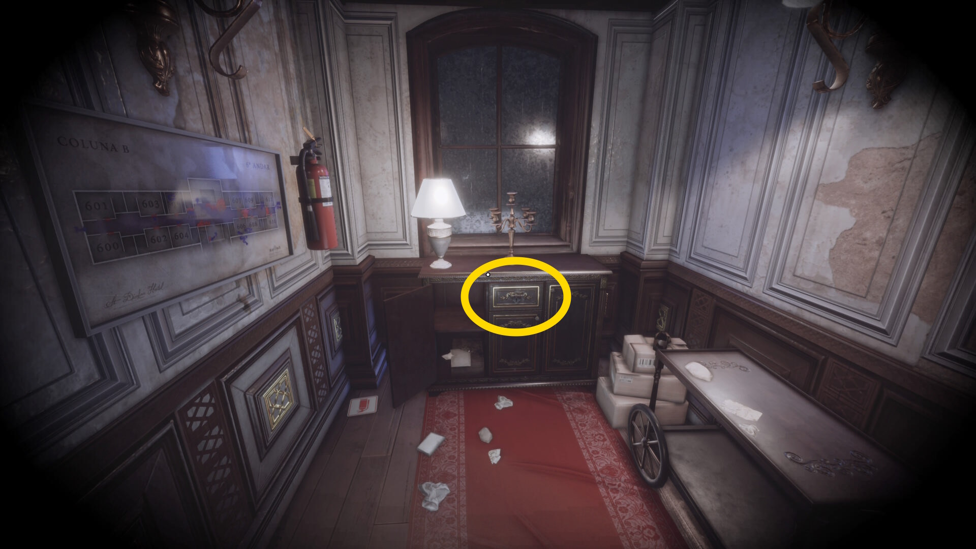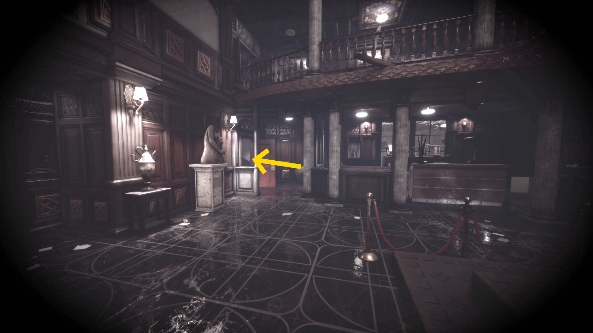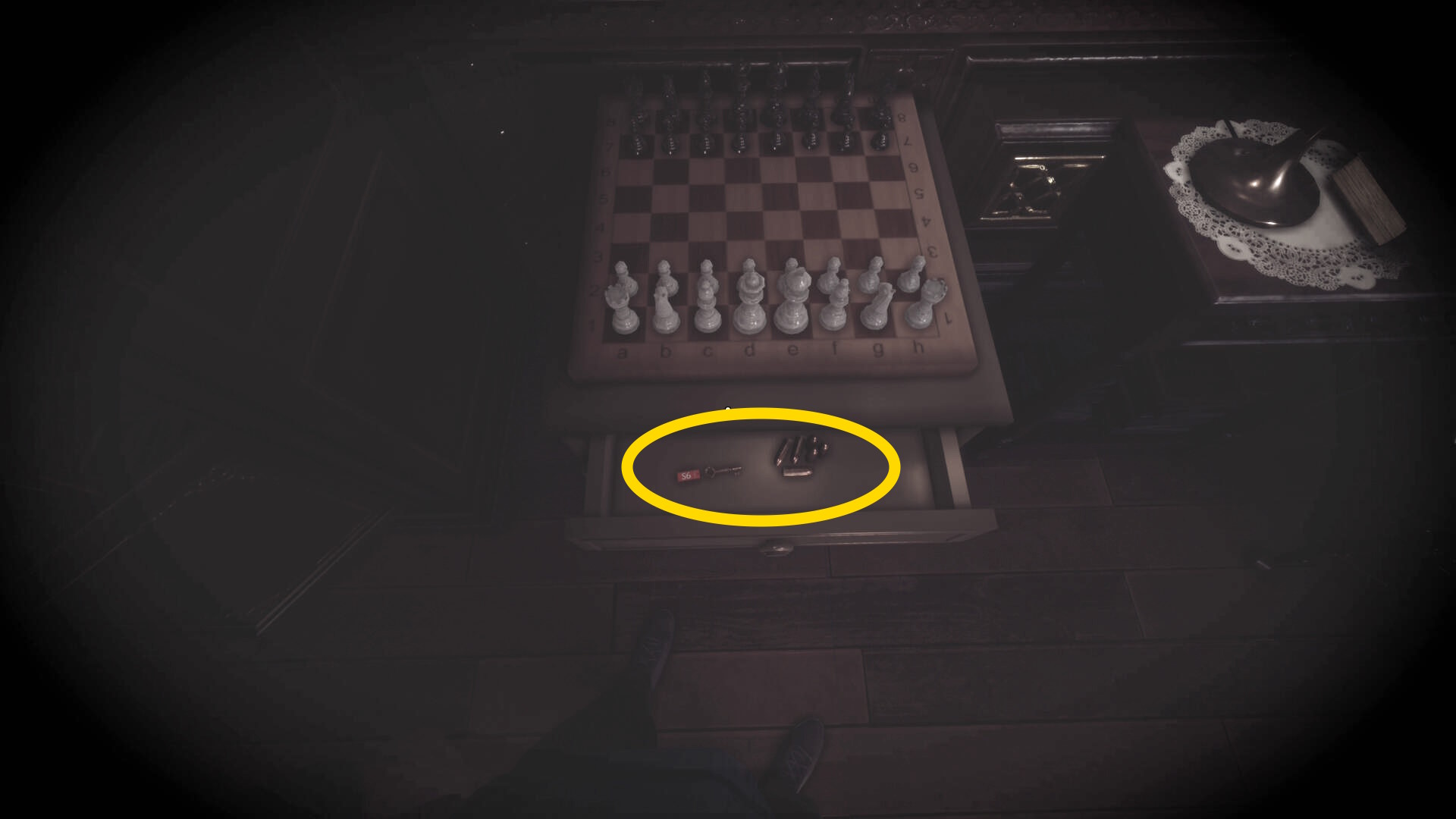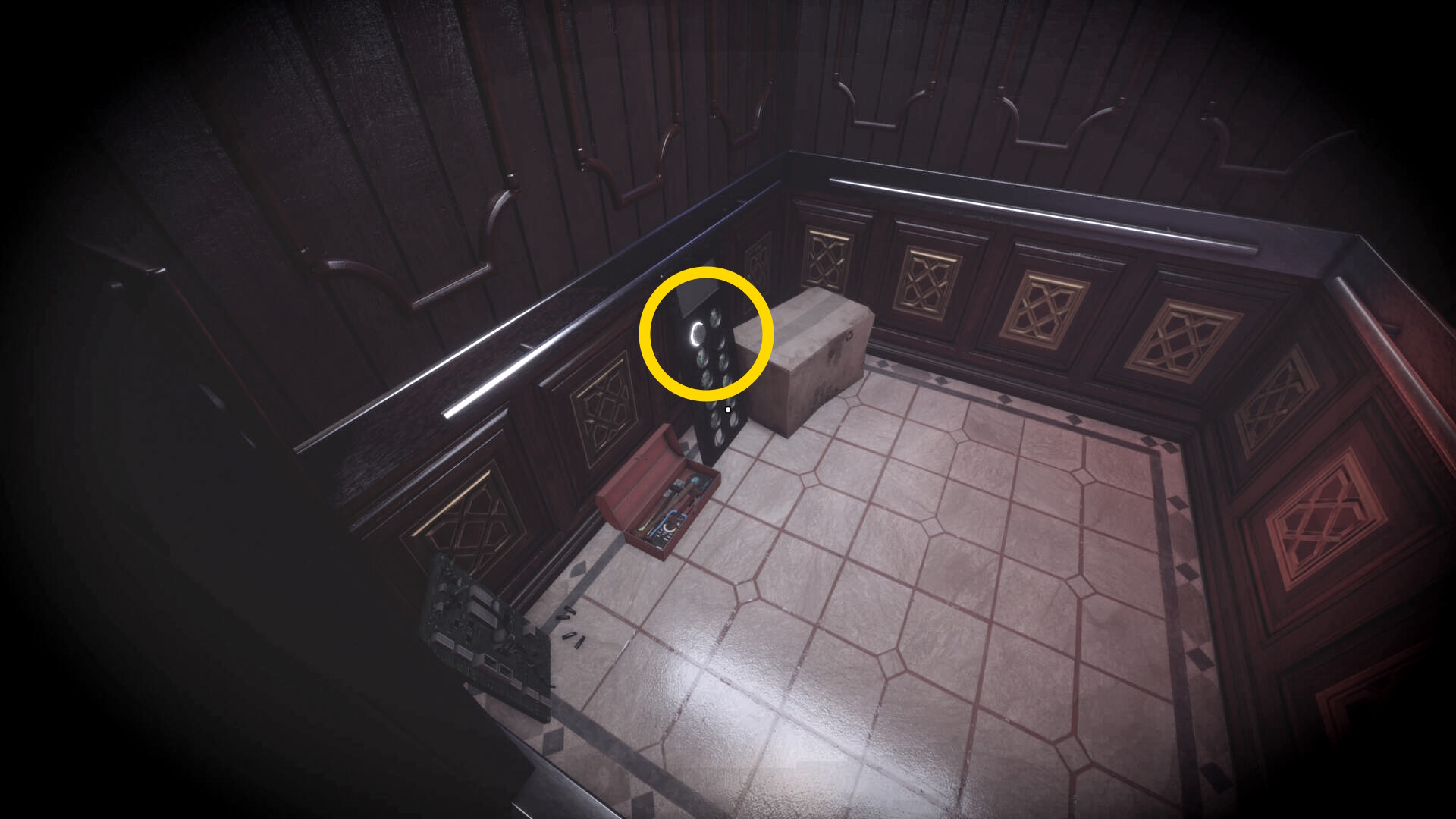 • 7階のエレベーター前に戻り、チェス盤にホワイトクイーンを置いて 6階のサービスルームの鍵 を回収