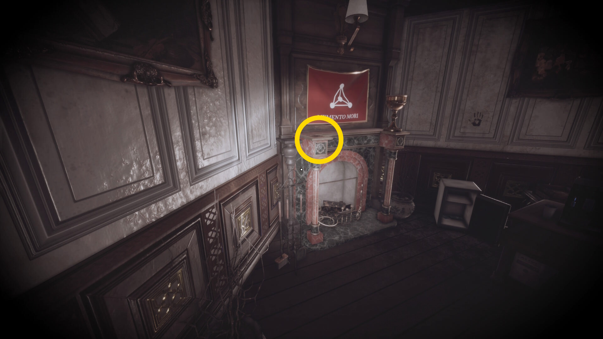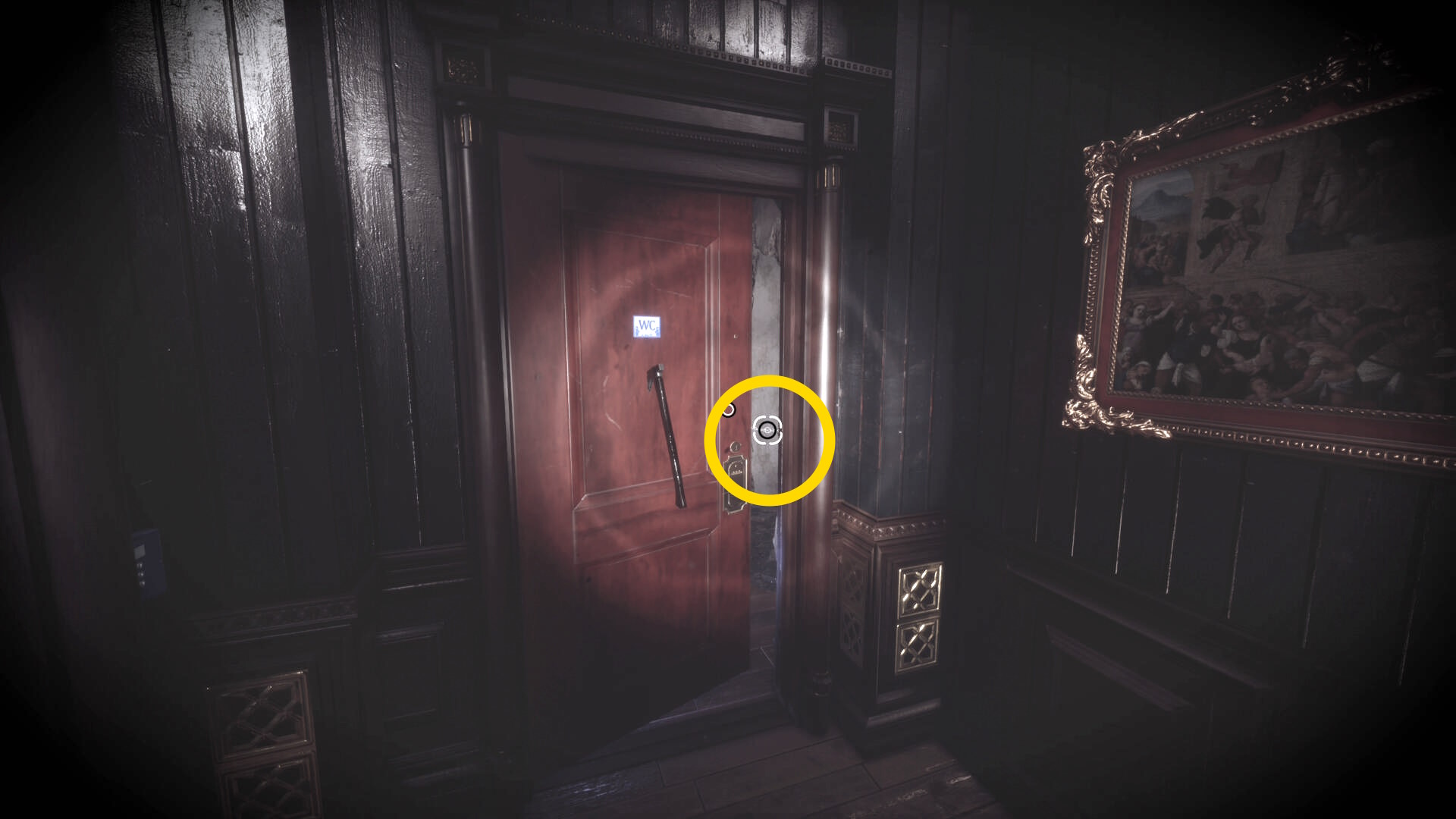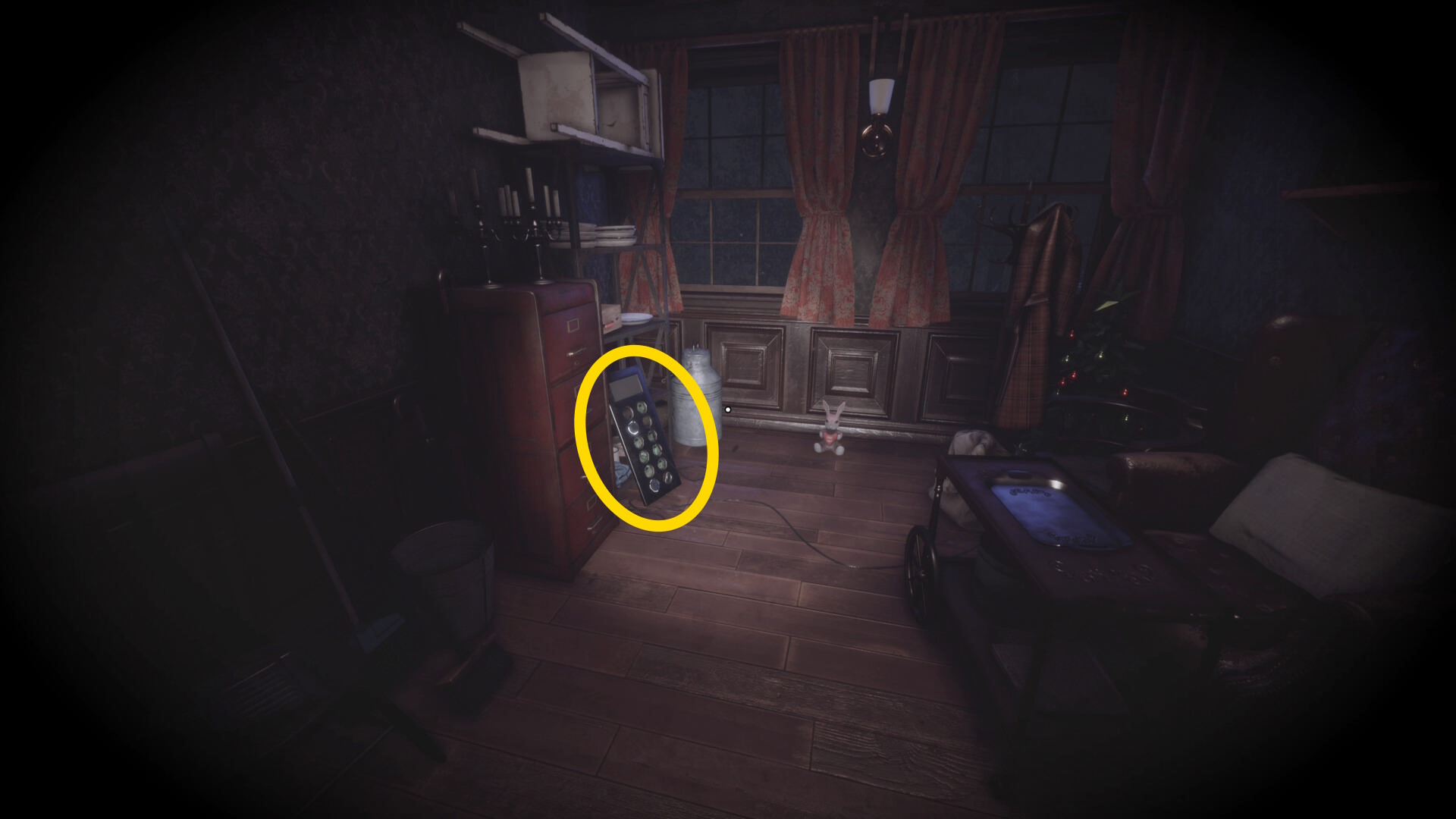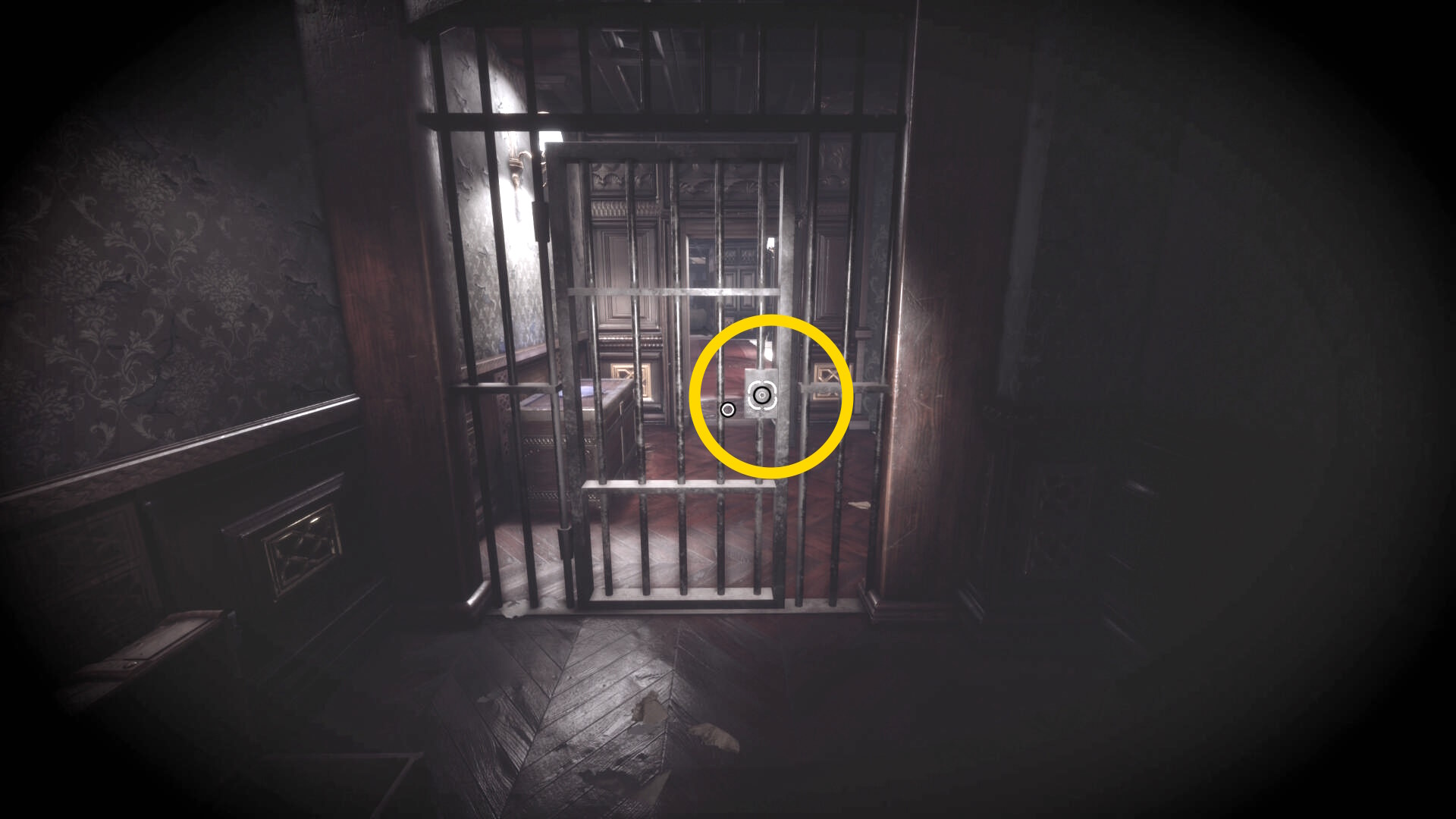 • 1階に下りて壁掛け時計(セーブポイント)の左にあるキャビネットを解錠し、鉄の部品4 を回収