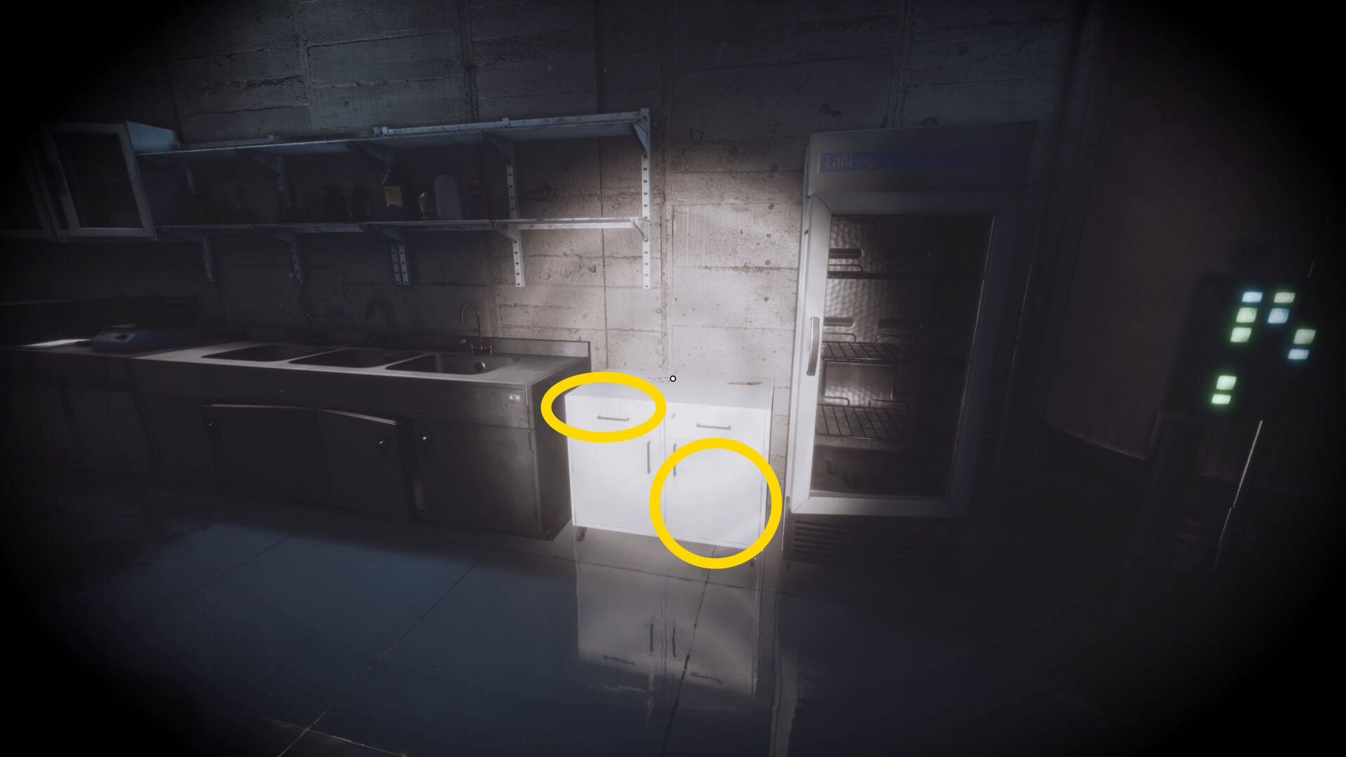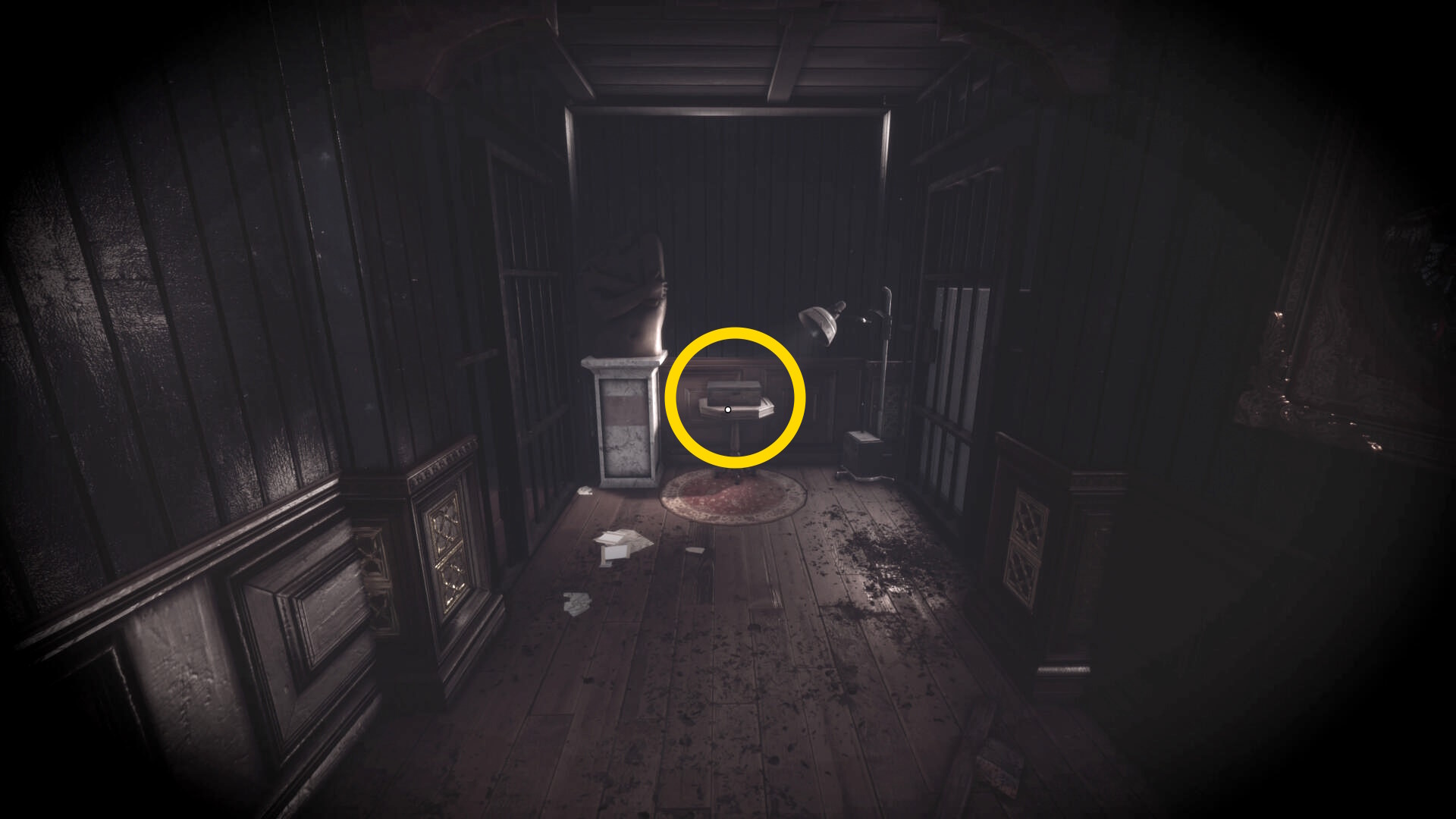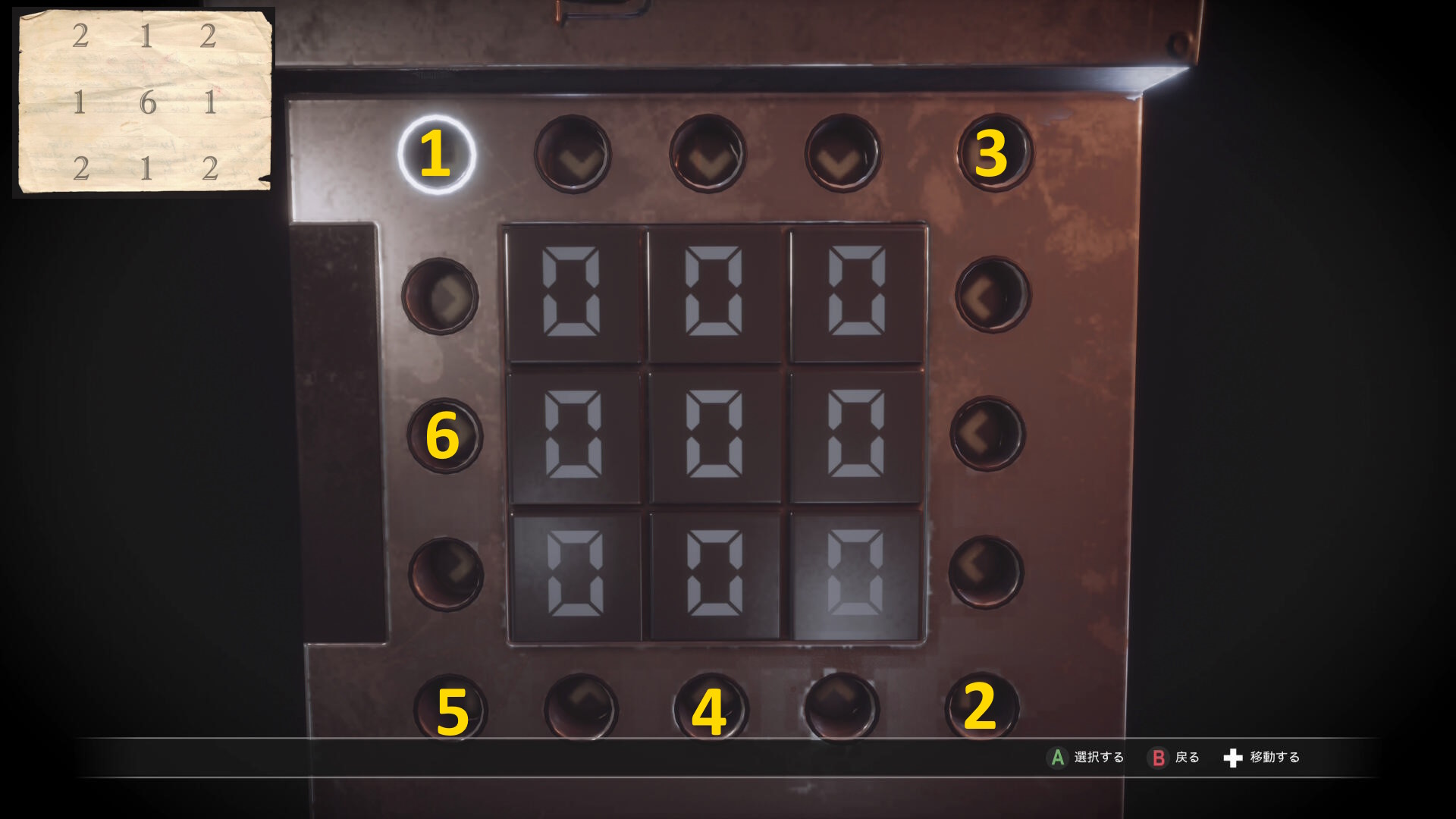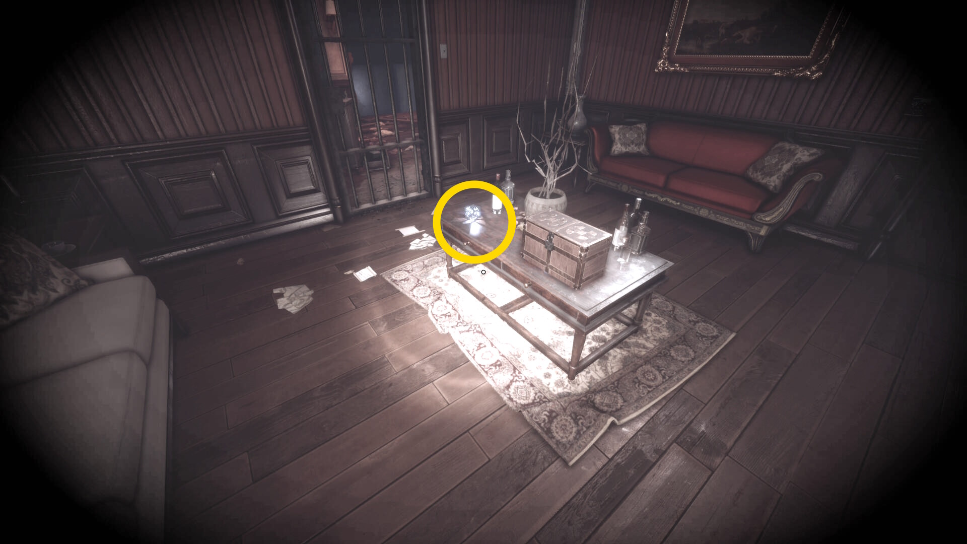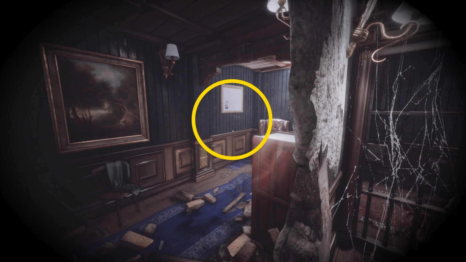 • 1階に下りて壁掛け時計(セーブポイント)の左にあるキャビネットを解錠し、鉄の部品4 を回収