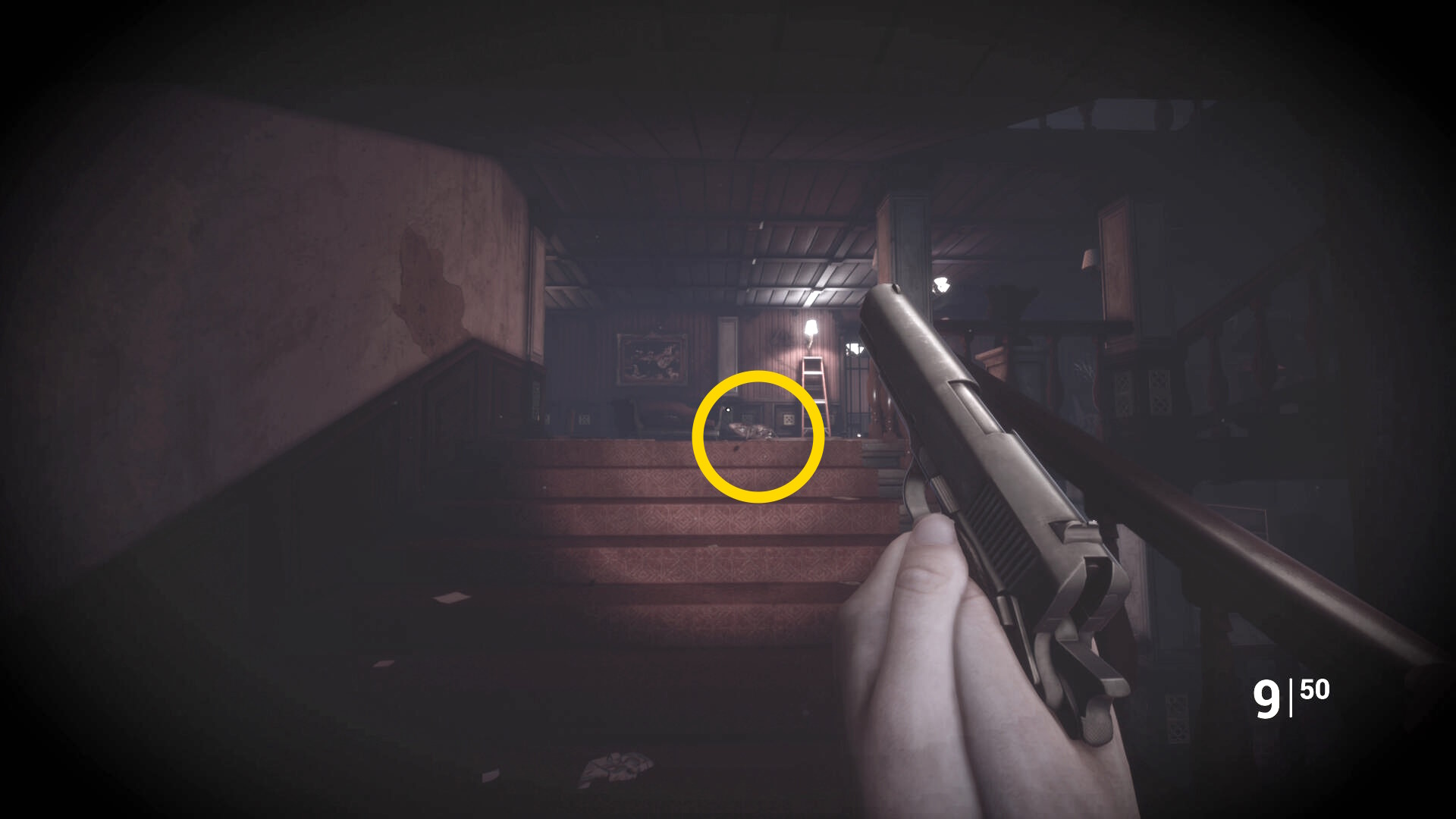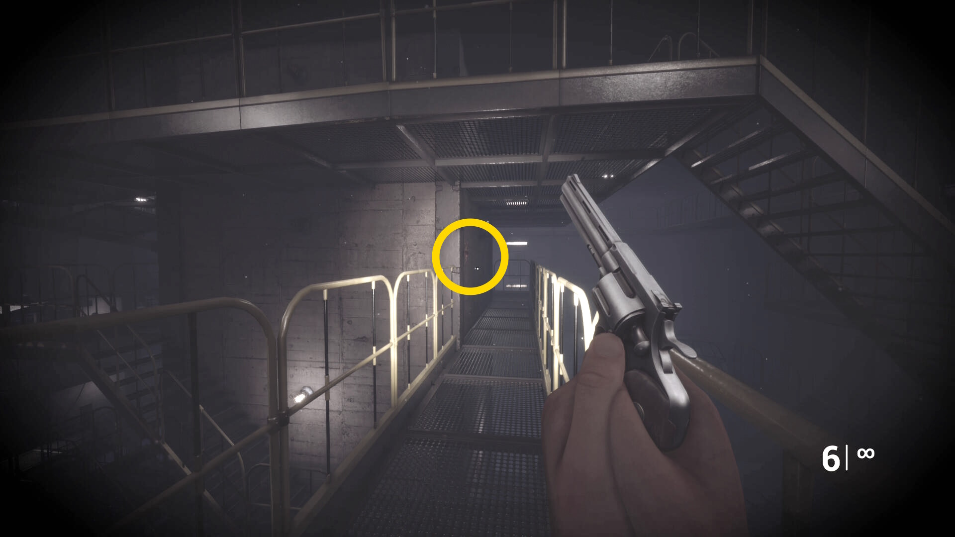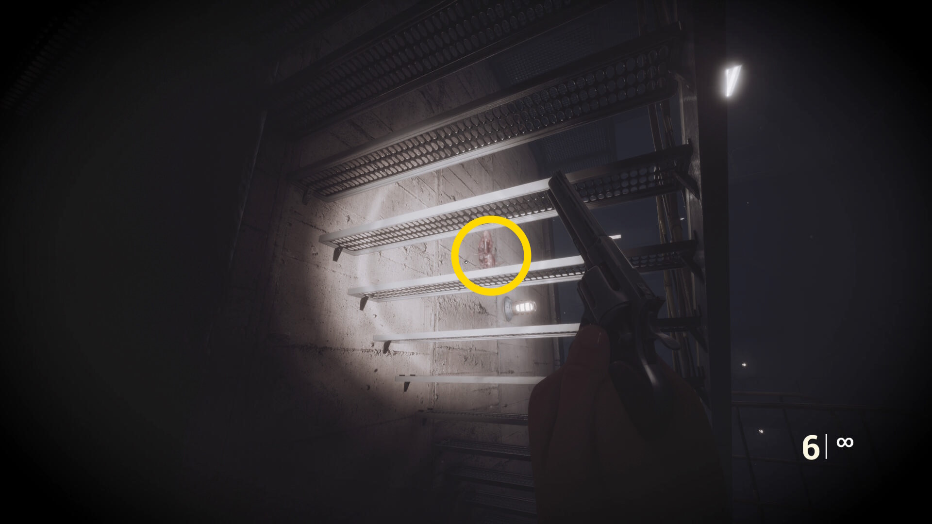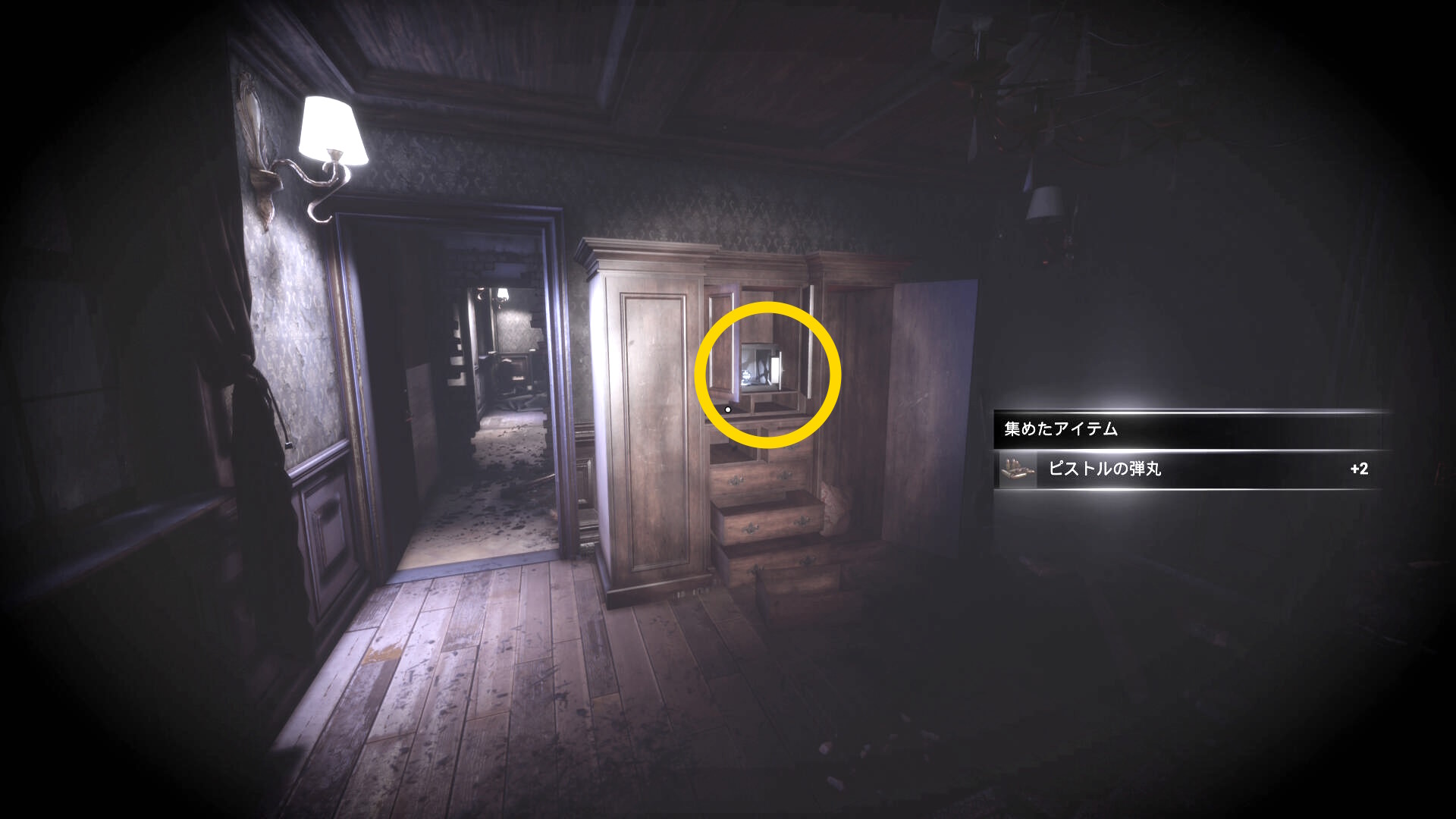 • 回収後、中2階へ移動し、ピストル を回収するが、先にピストル弾薬を回収しないといけないっぽい(ピストル弾薬は廃棄してオーケー)
