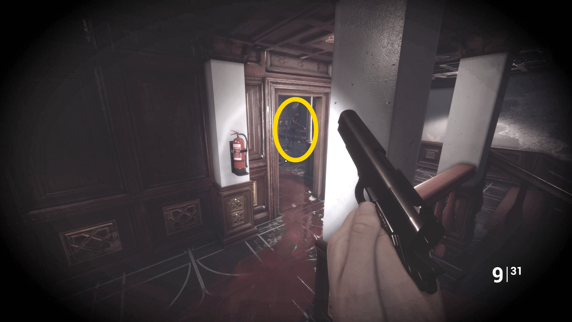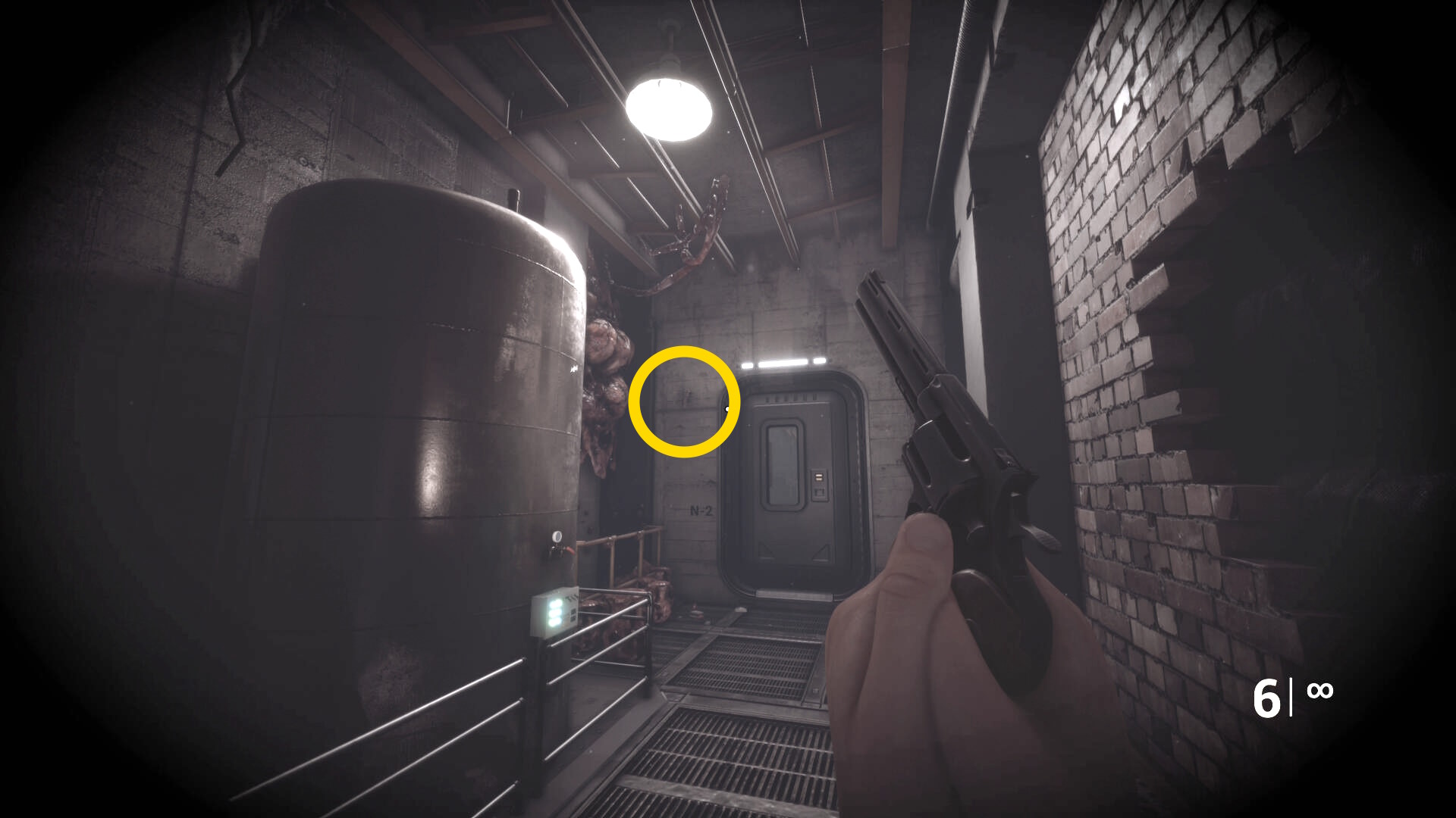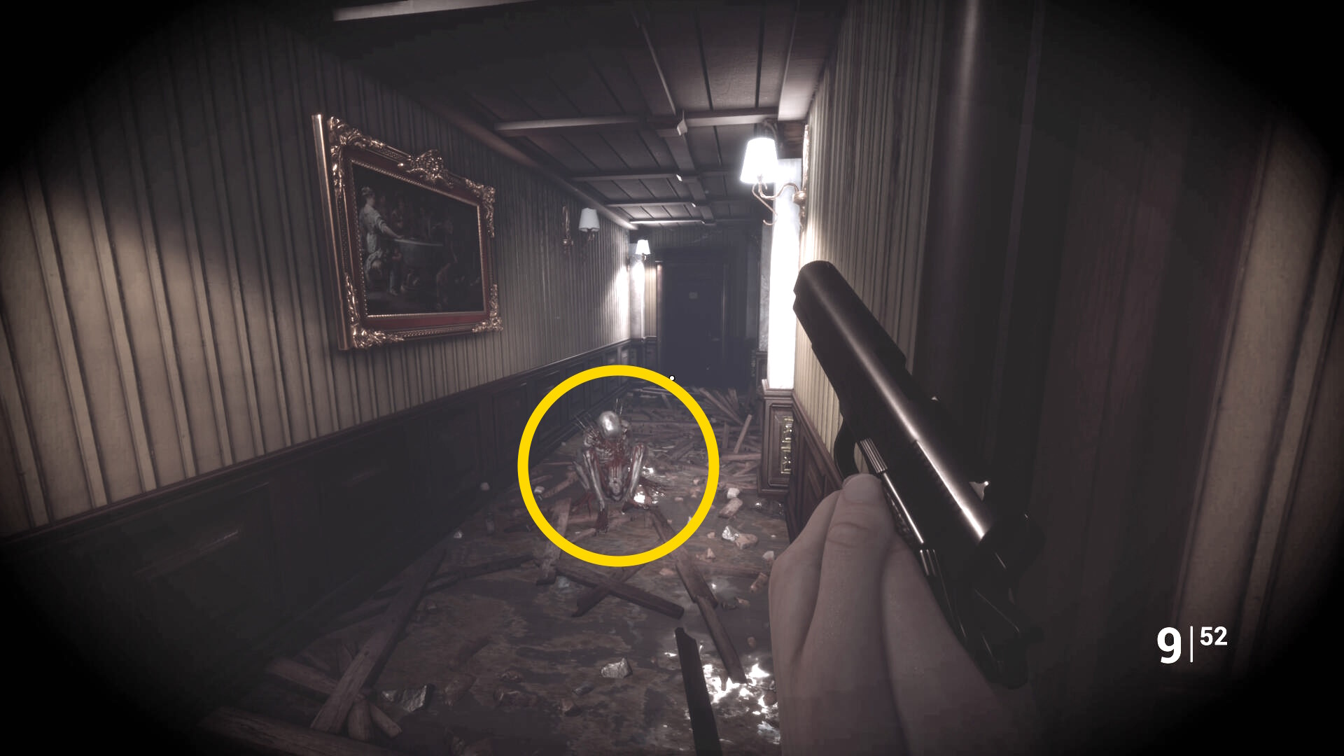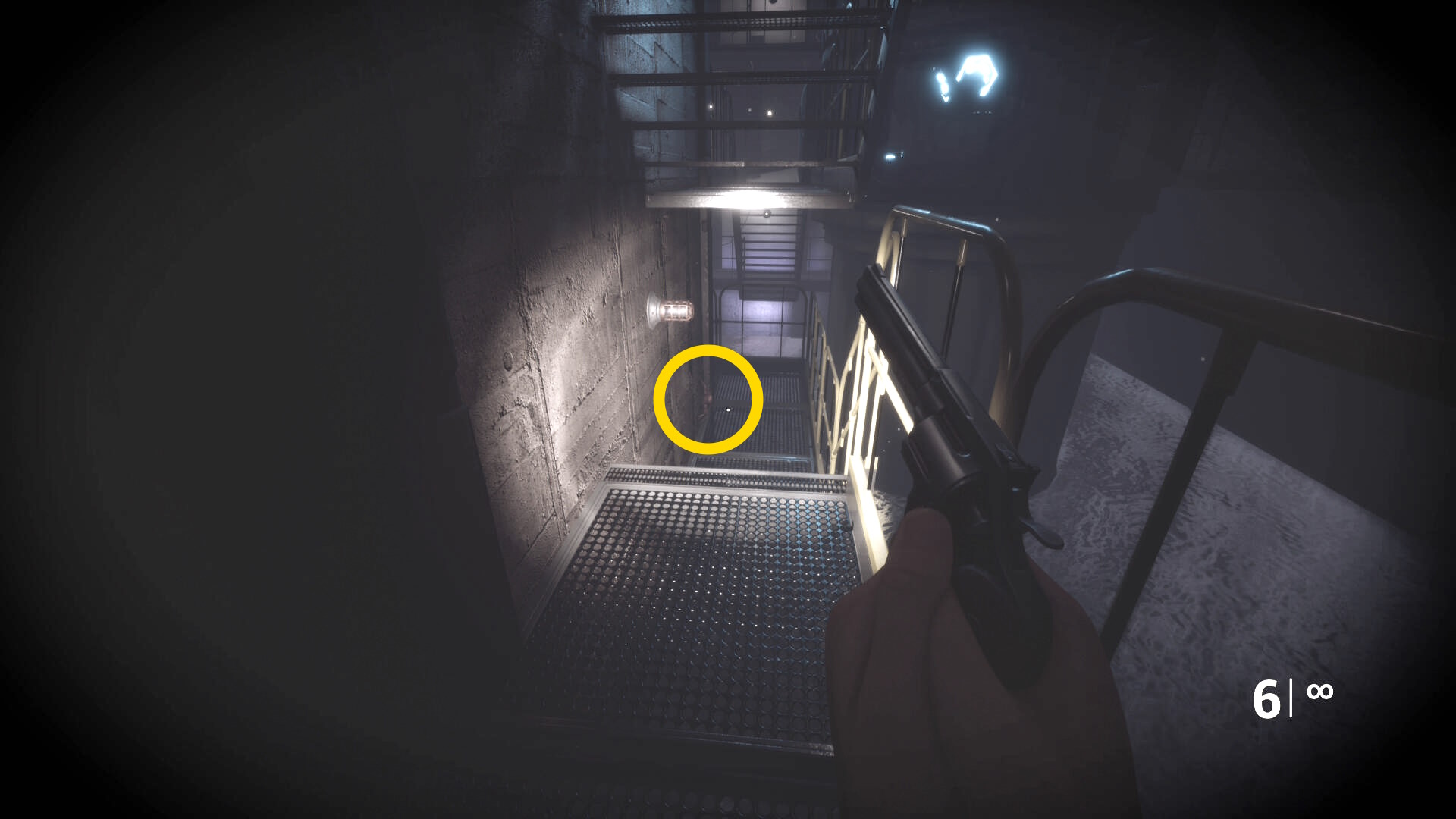 • 回収後、中2階へ移動し、ピストル を回収するが、先にピストル弾薬を回収しないといけないっぽい(ピストル弾薬は廃棄してオーケー)