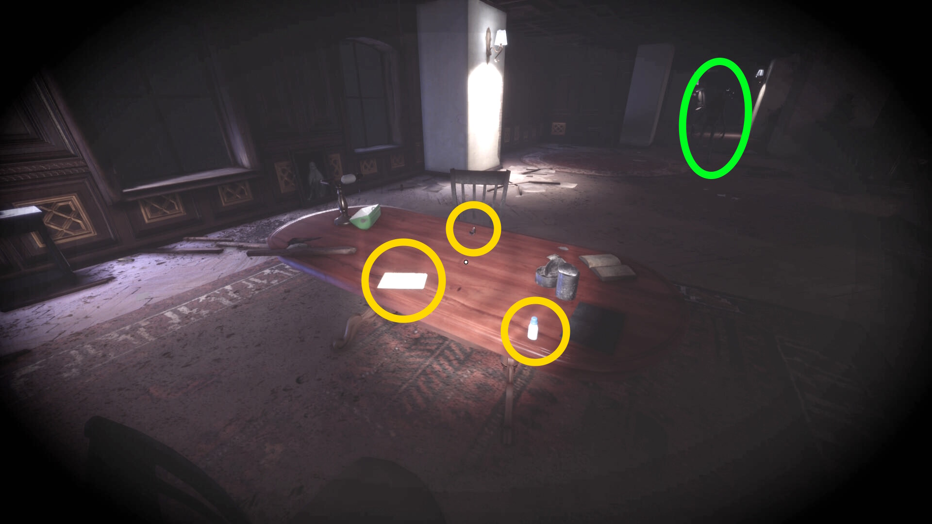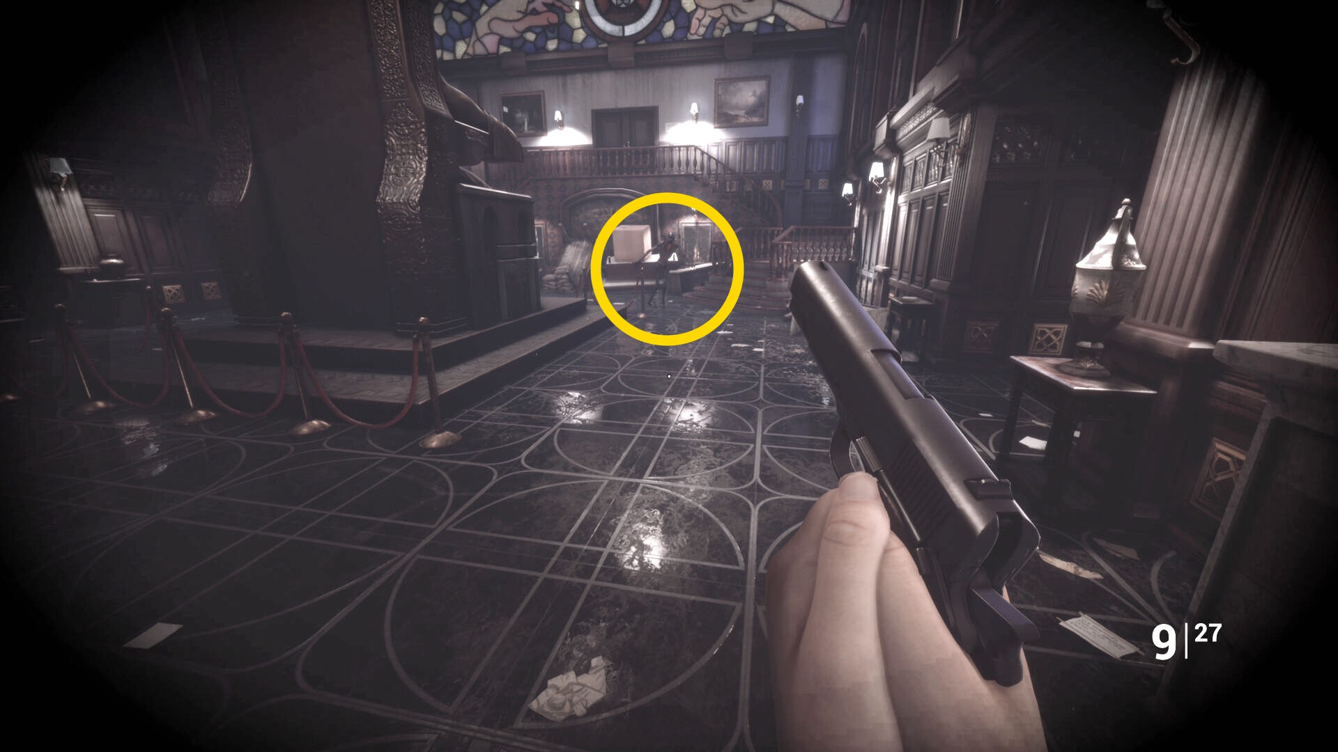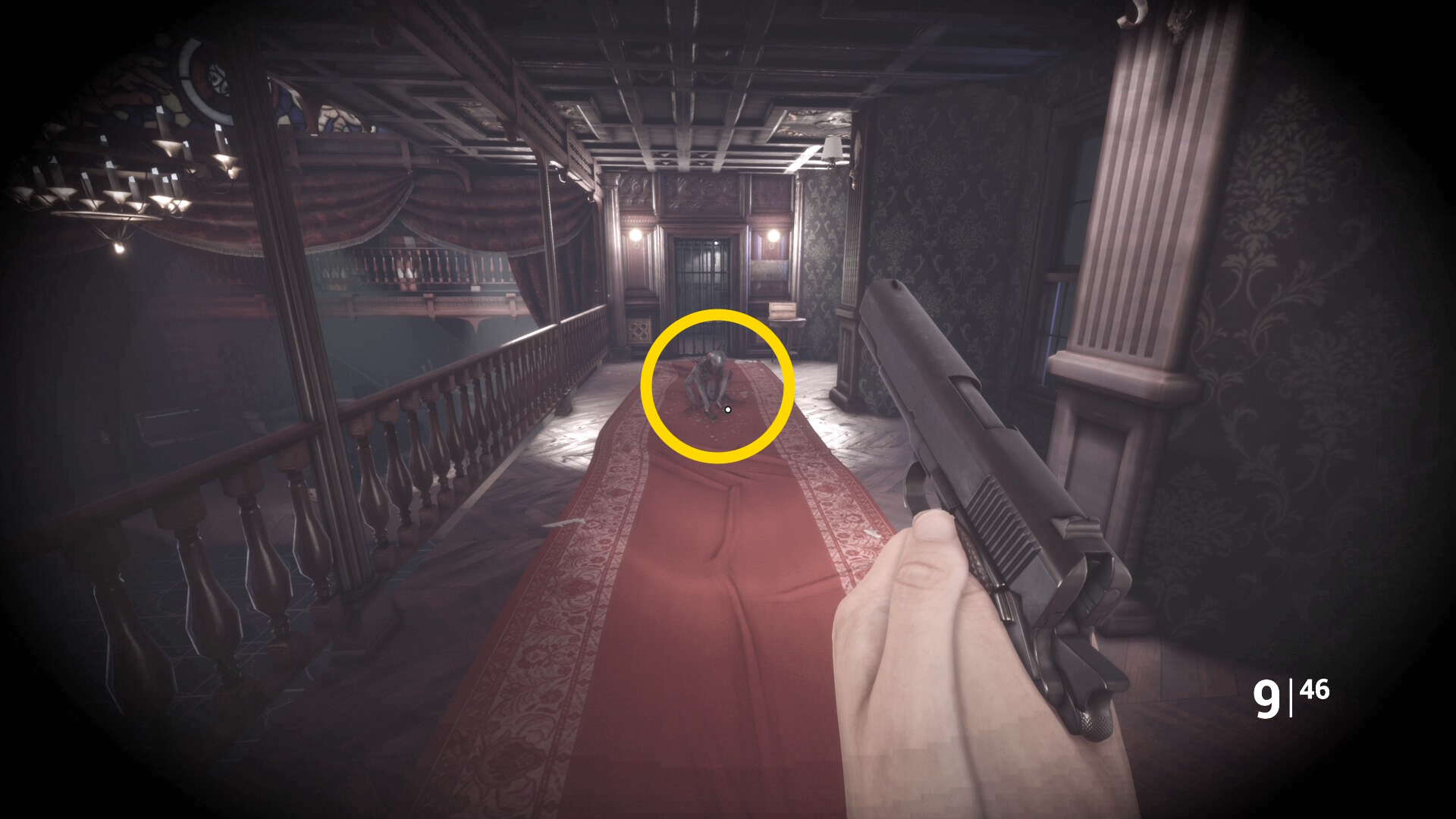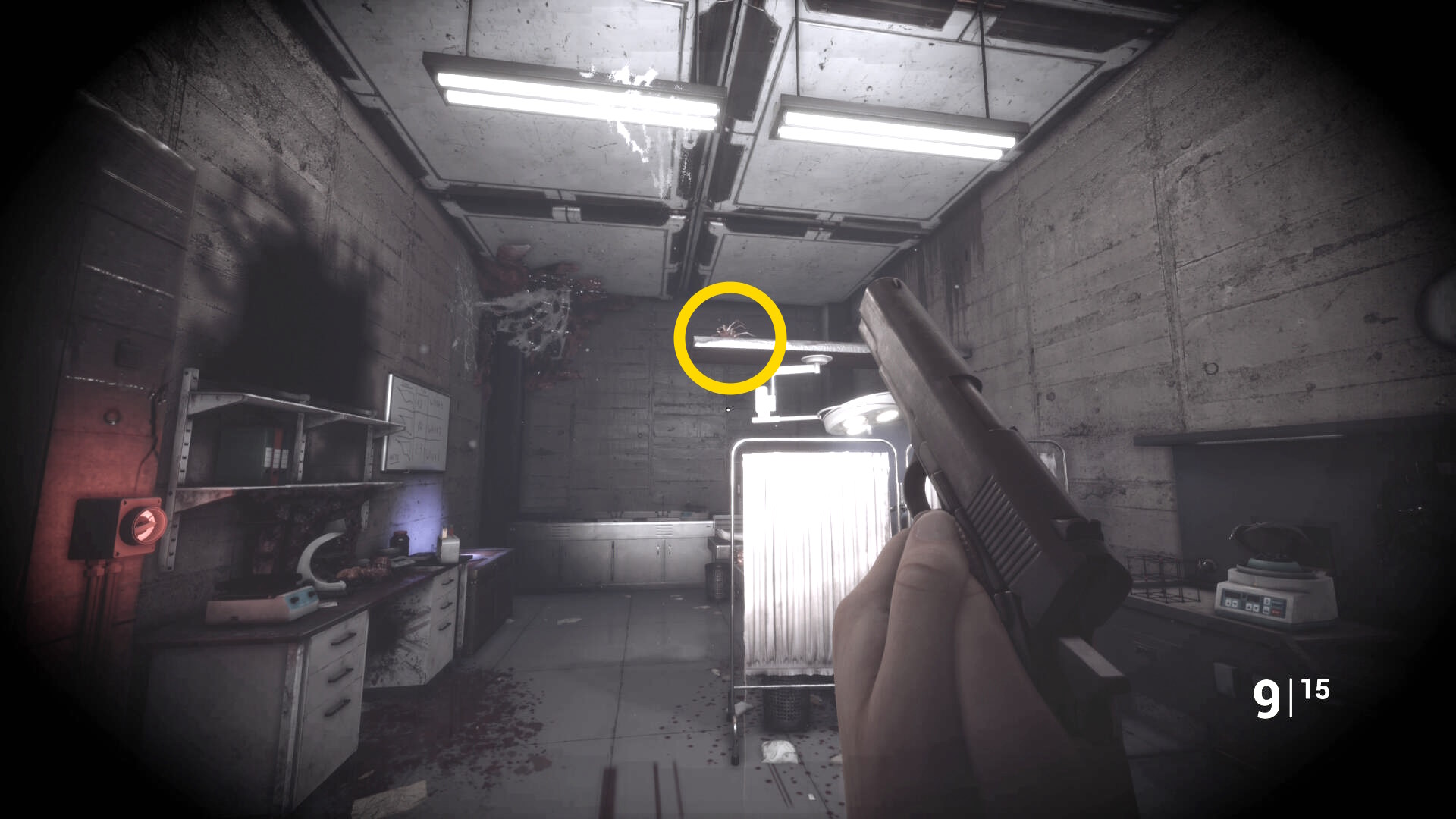• 回収後、中2階へ移動し、ピストル を回収するが、先にピストル弾薬を回収しないといけないっぽい(ピストル弾薬は廃棄してオーケー)