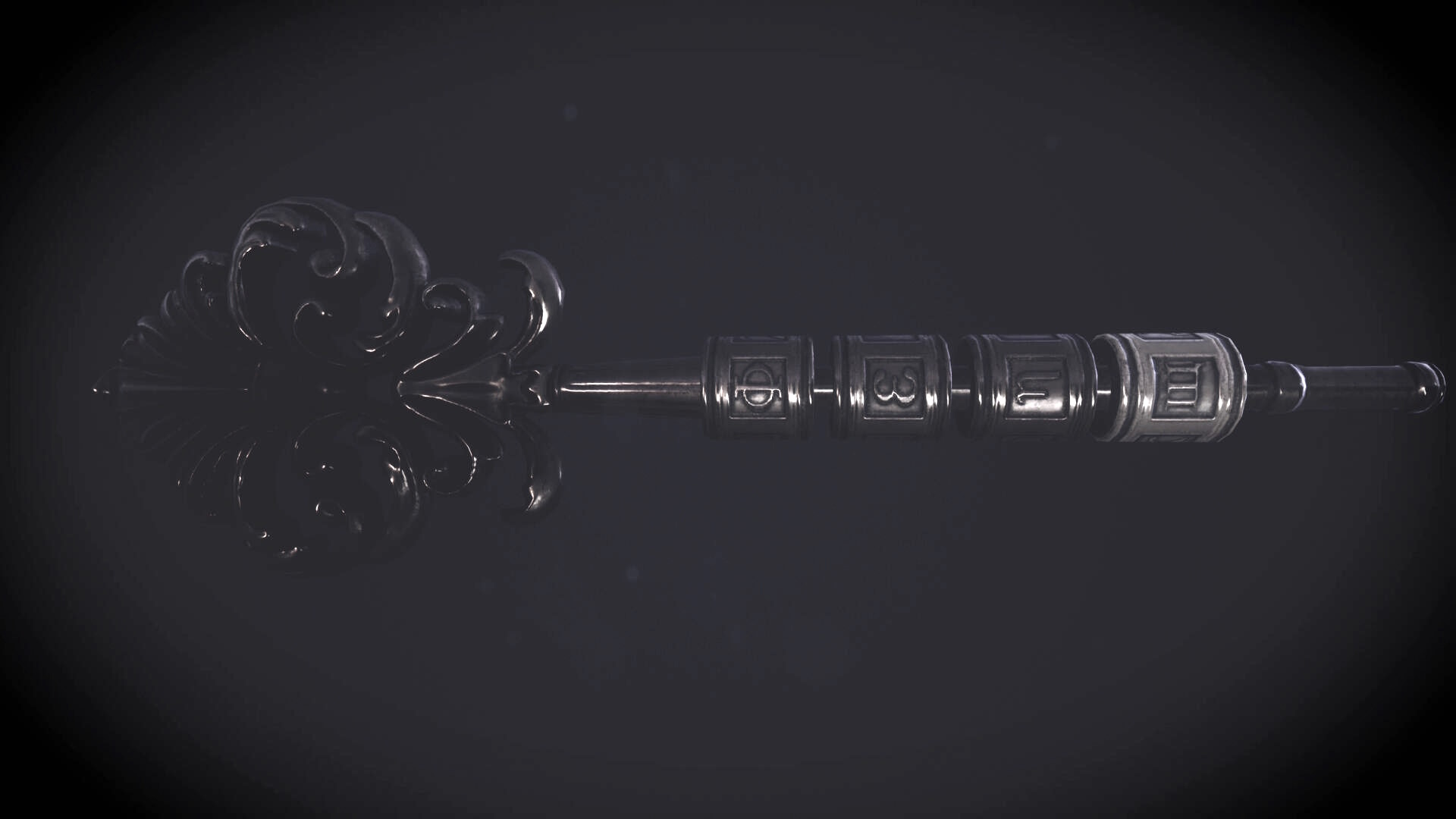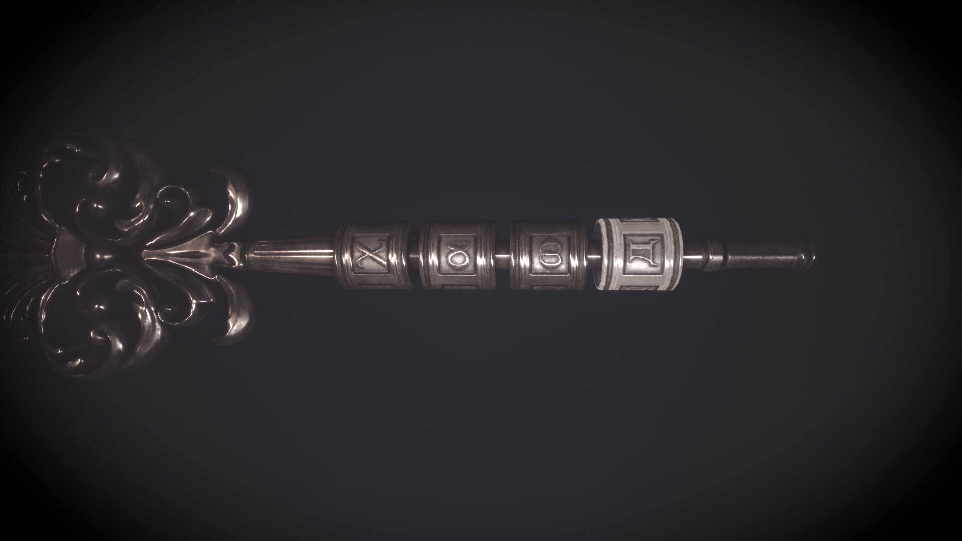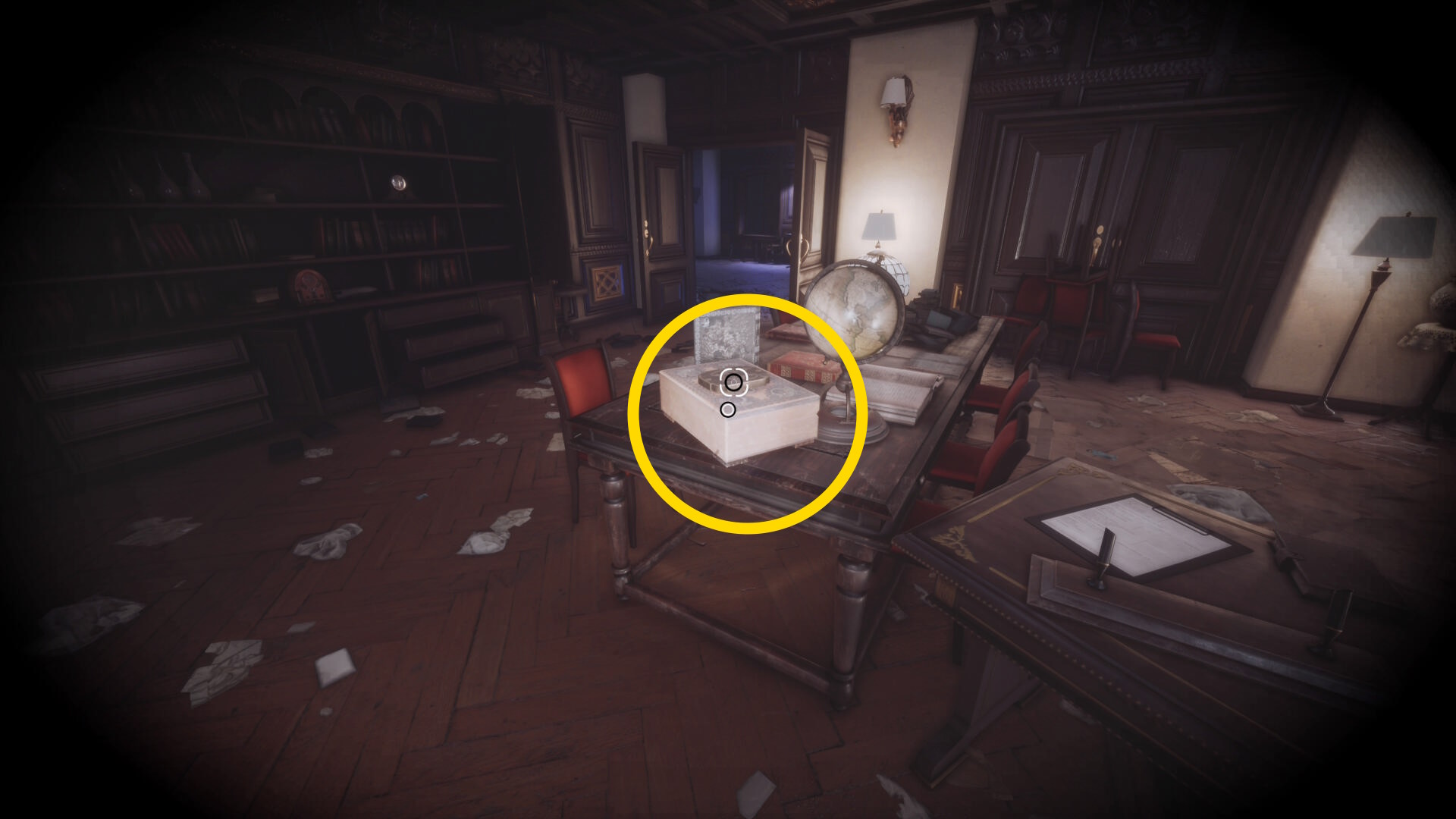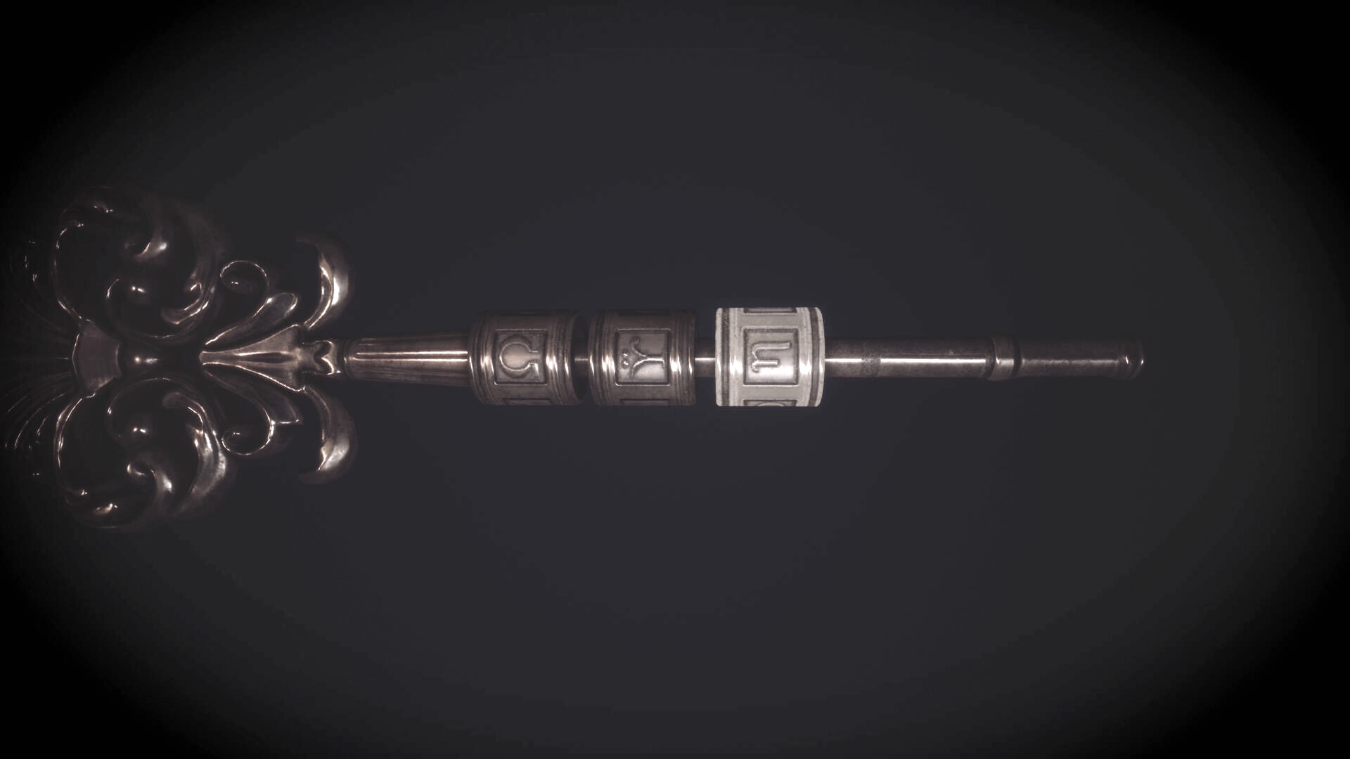 • 階段を登りきった正面のドアを開け、細長い箱から 華やかな鍵鉄の部品1~3 を回収し、組み合わせて モジュール式鍵 にする