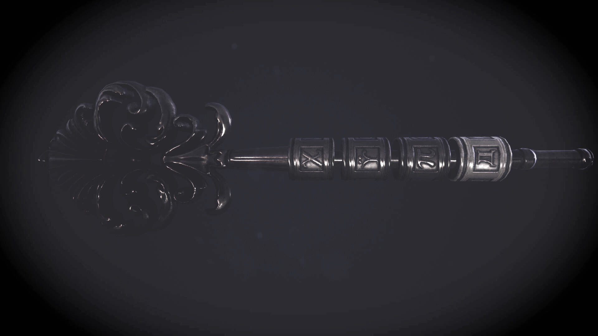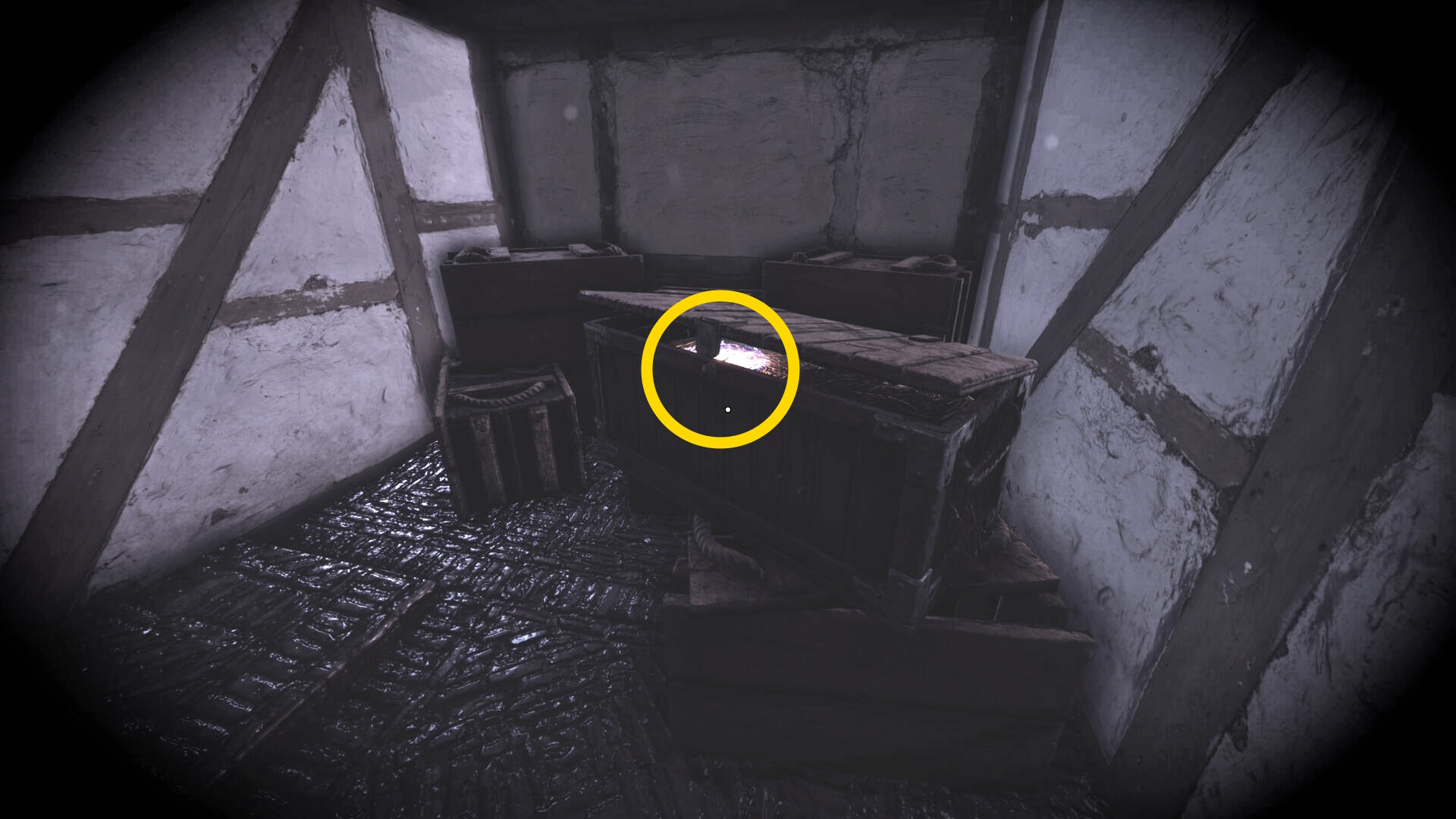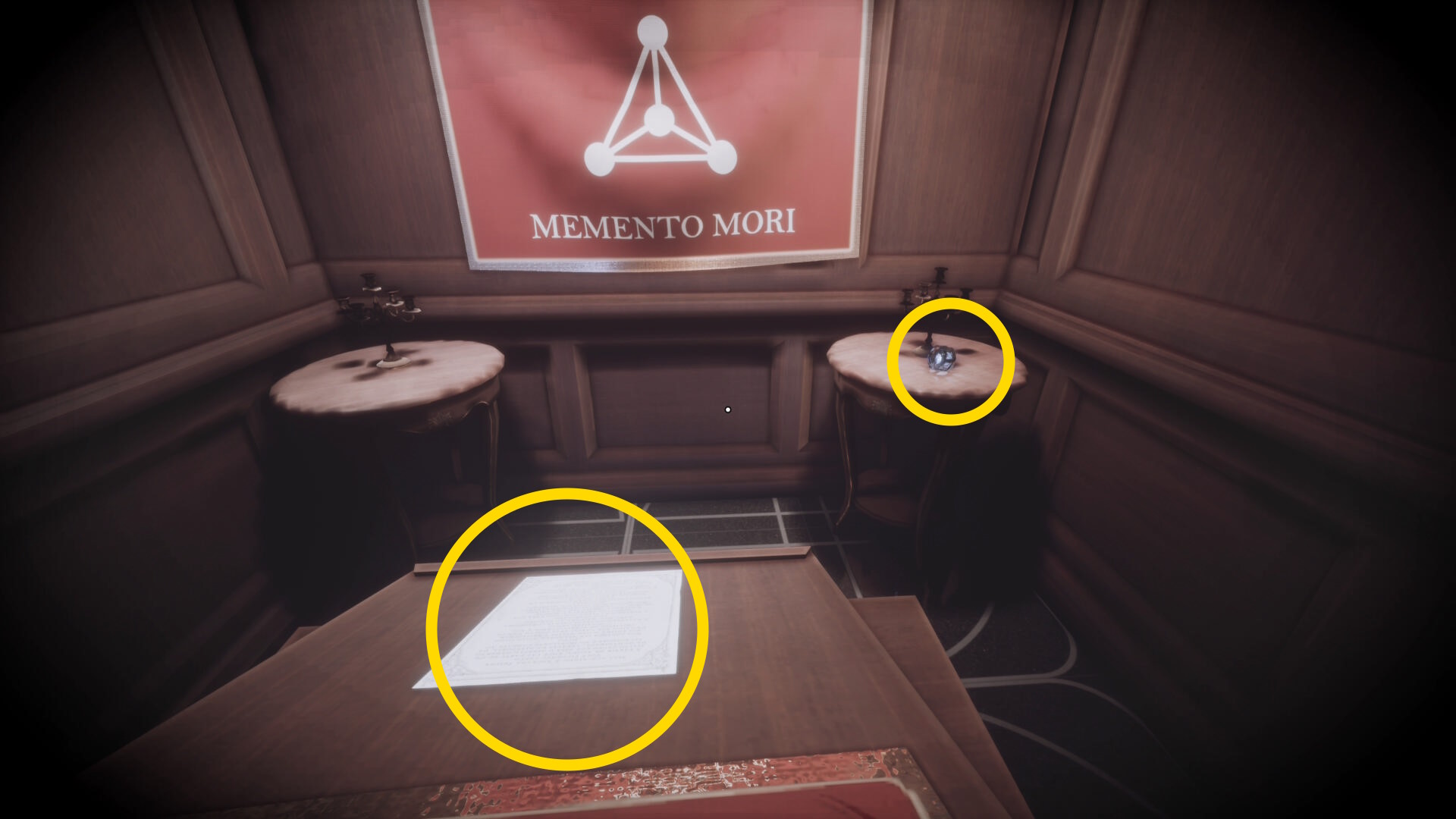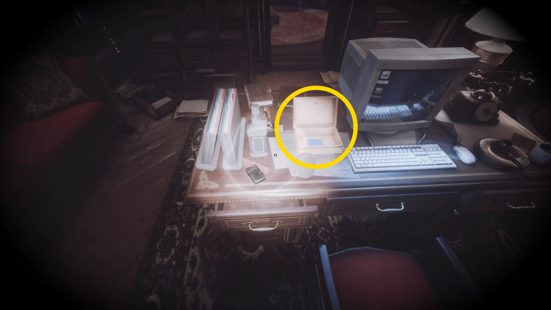 • 階段を登りきった正面のドアを開け、細長い箱から 華やかな鍵鉄の部品1~3 を回収し、組み合わせて モジュール式鍵 にする