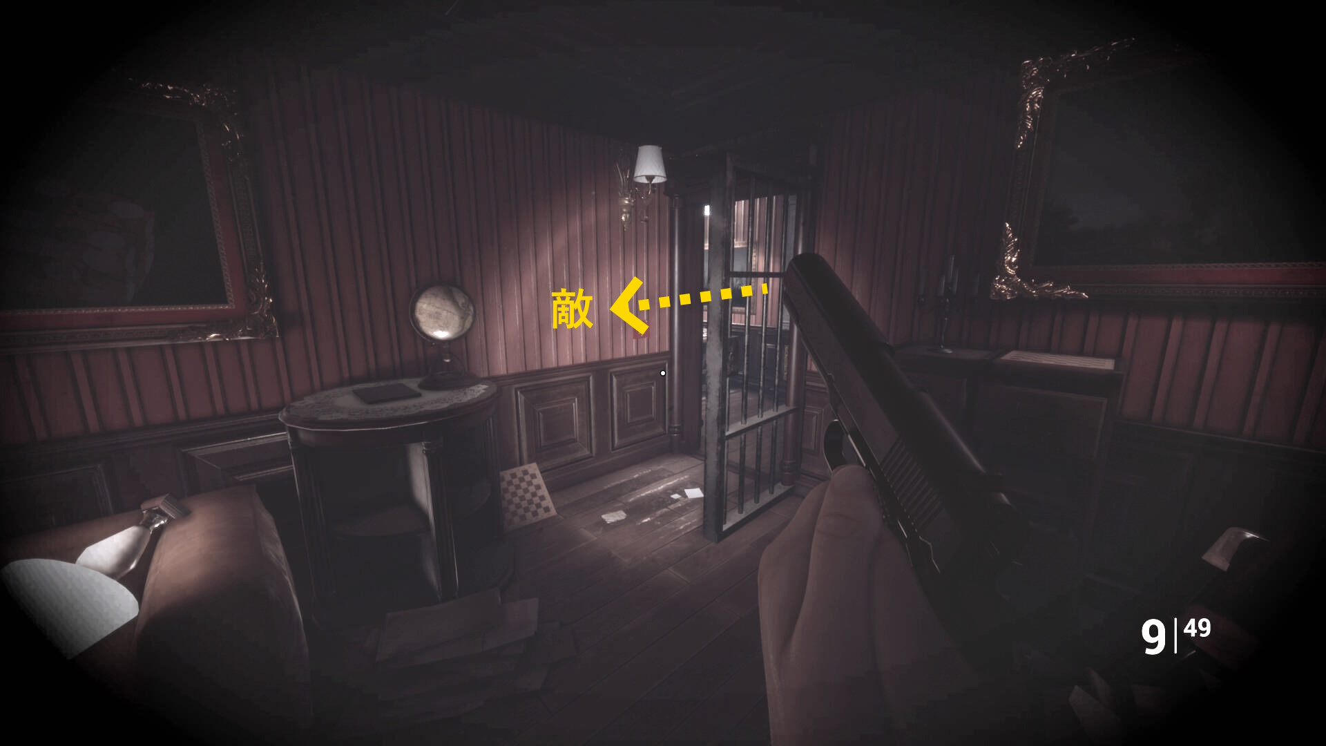 • 壁掛け時計(セーブポイント)近くのドアを開けて、中の敵2体をキル