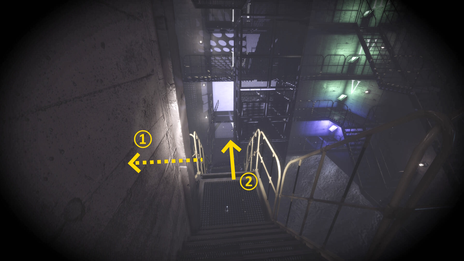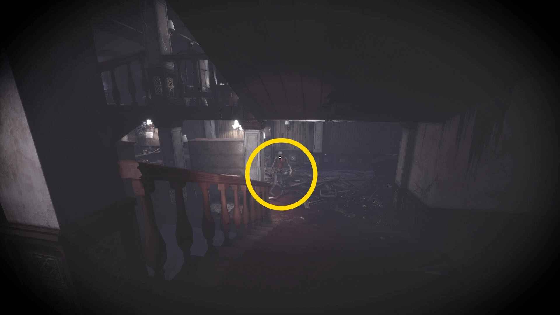 • 暗視カメラを起動して部屋を出て、階段に戻る