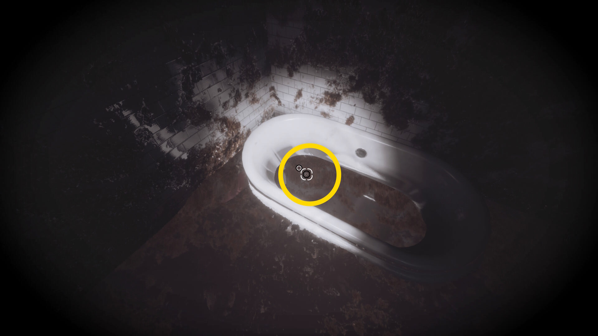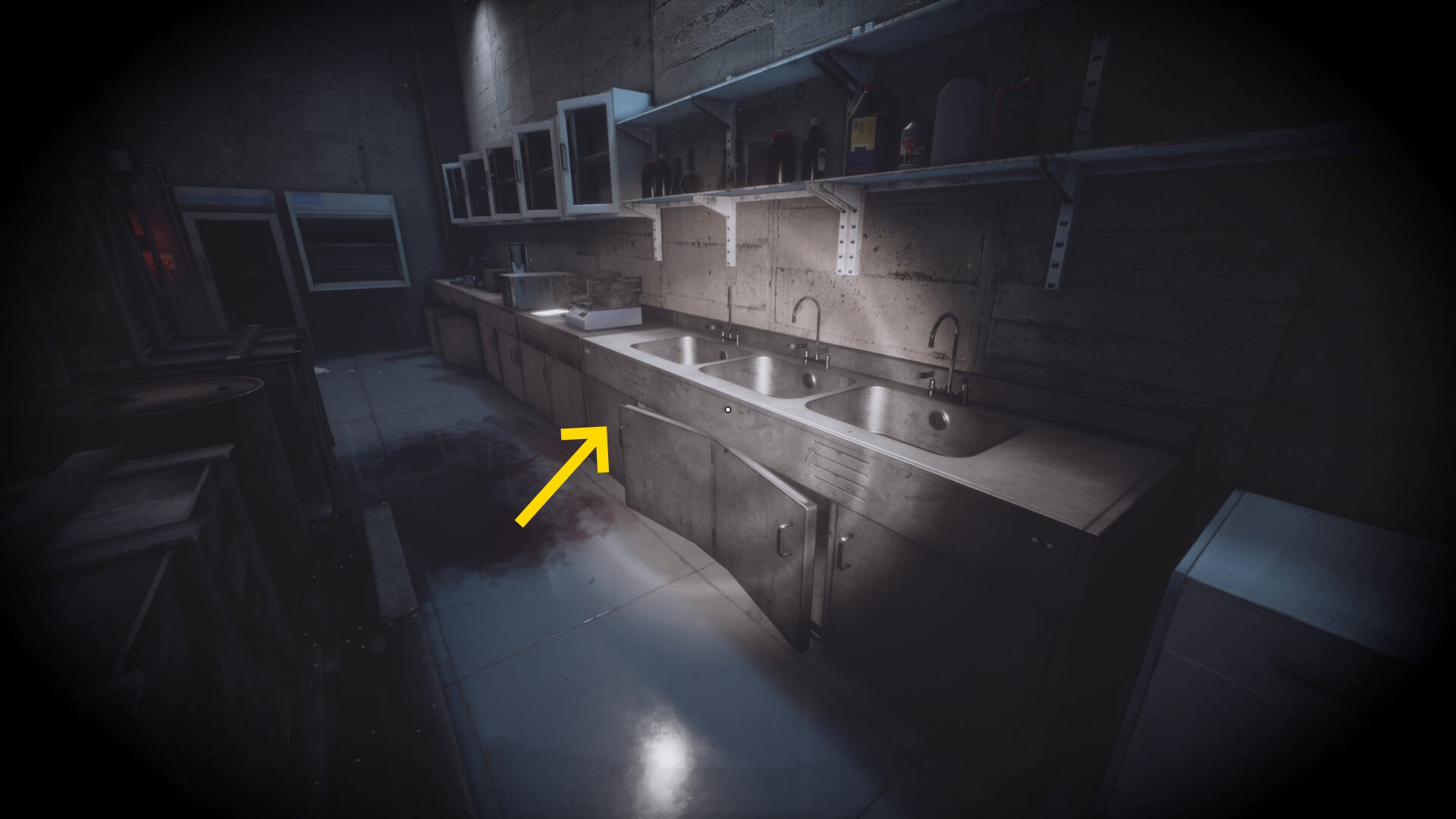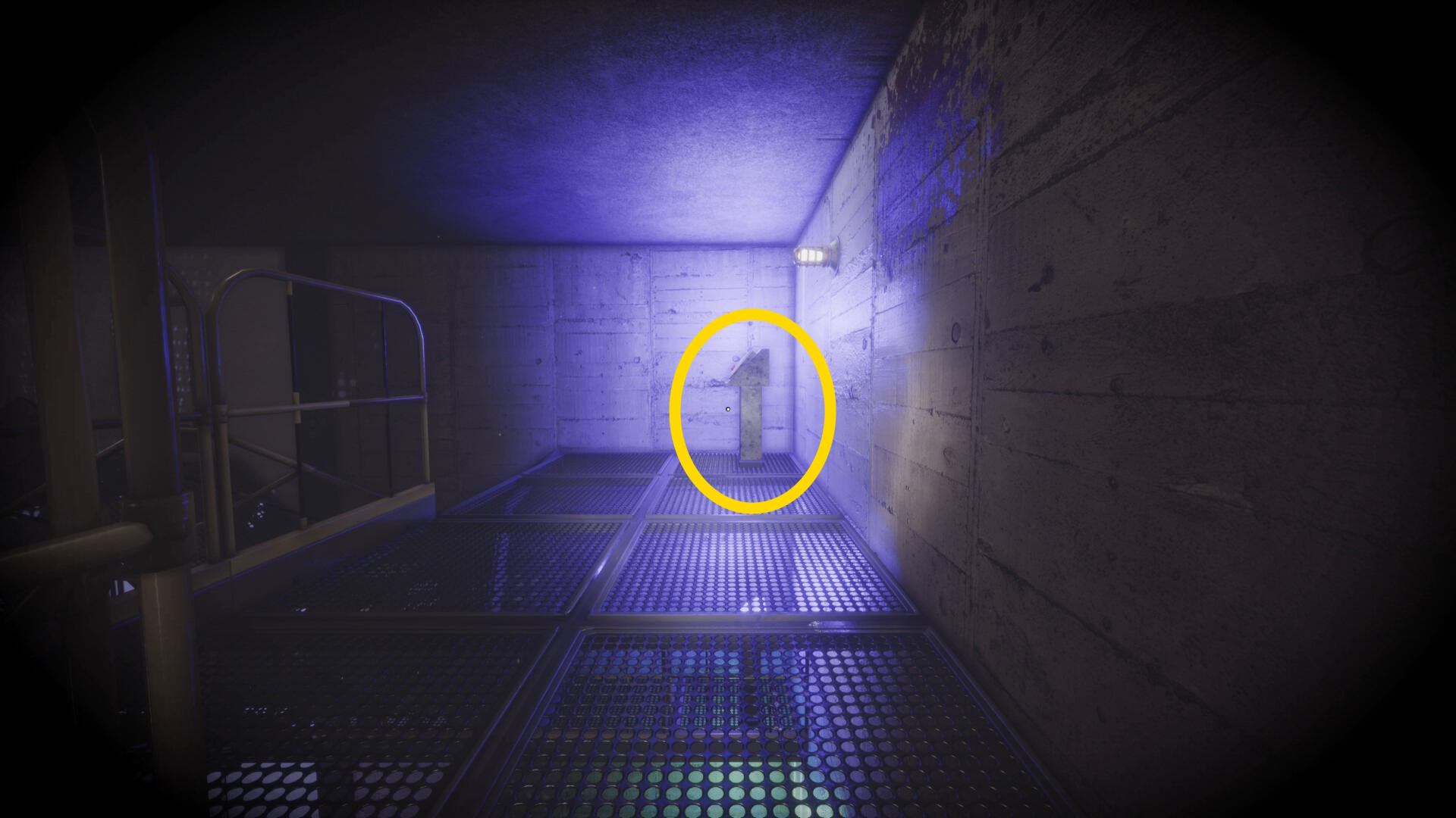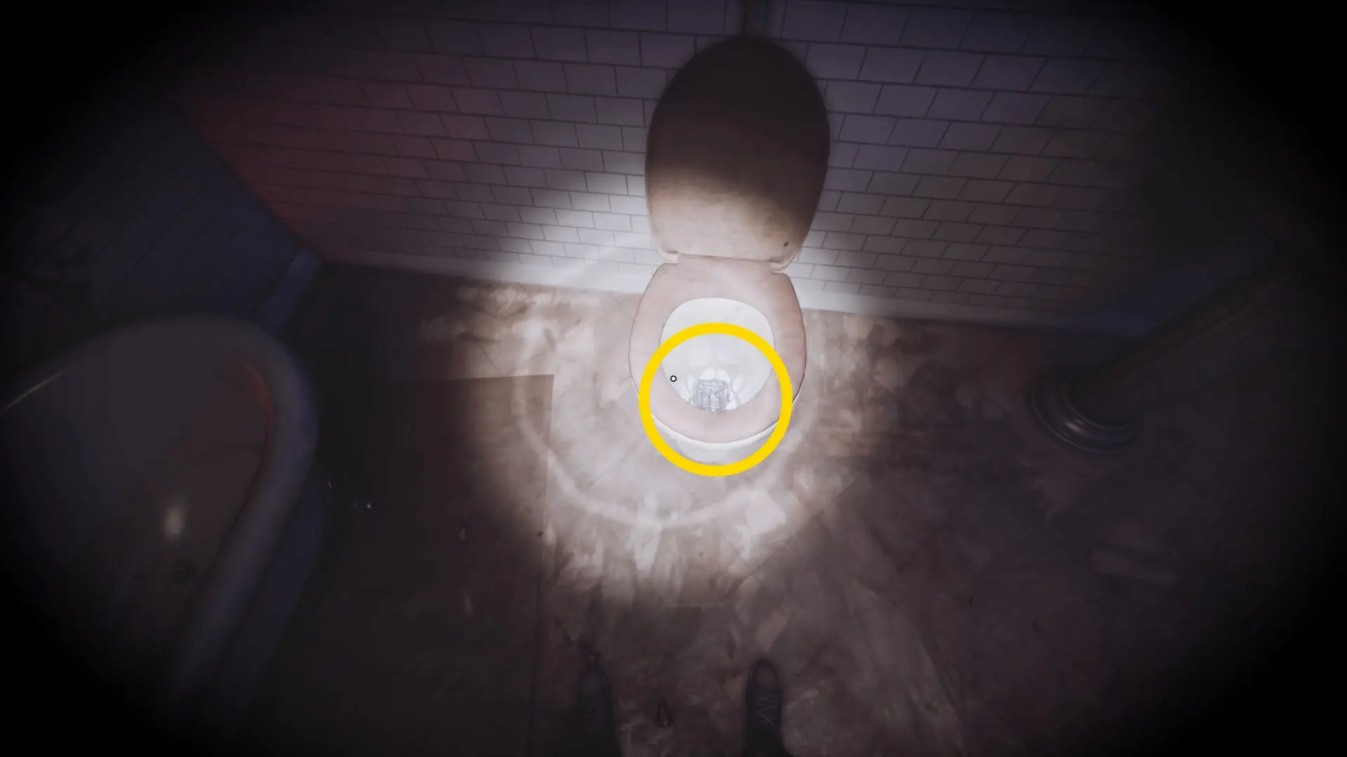 • 後ろを向き、床のキャリーバッグに金属物体から判明した3桁のパスワードを入力して トイレの鍵 を回収
