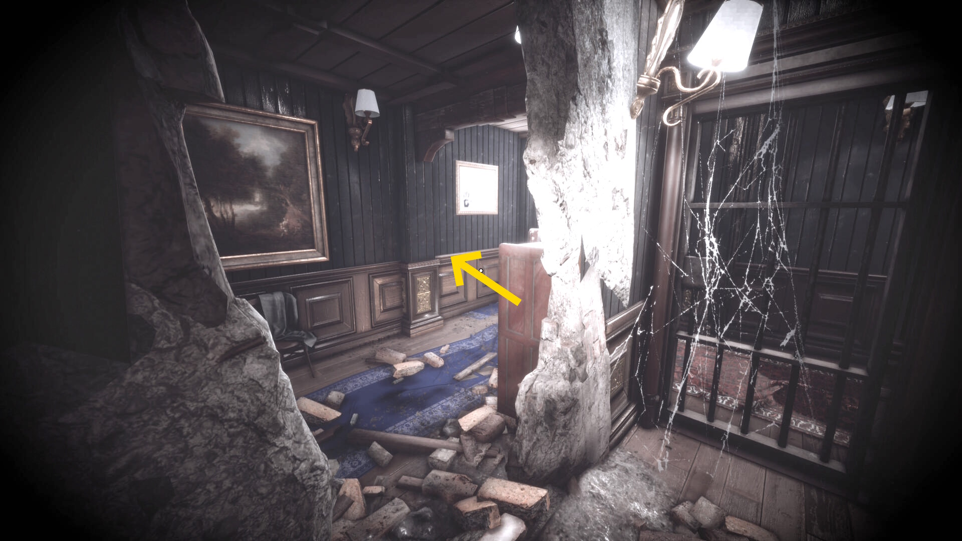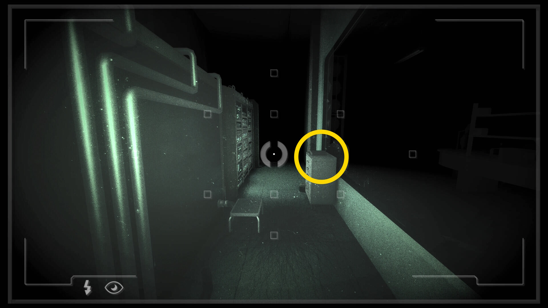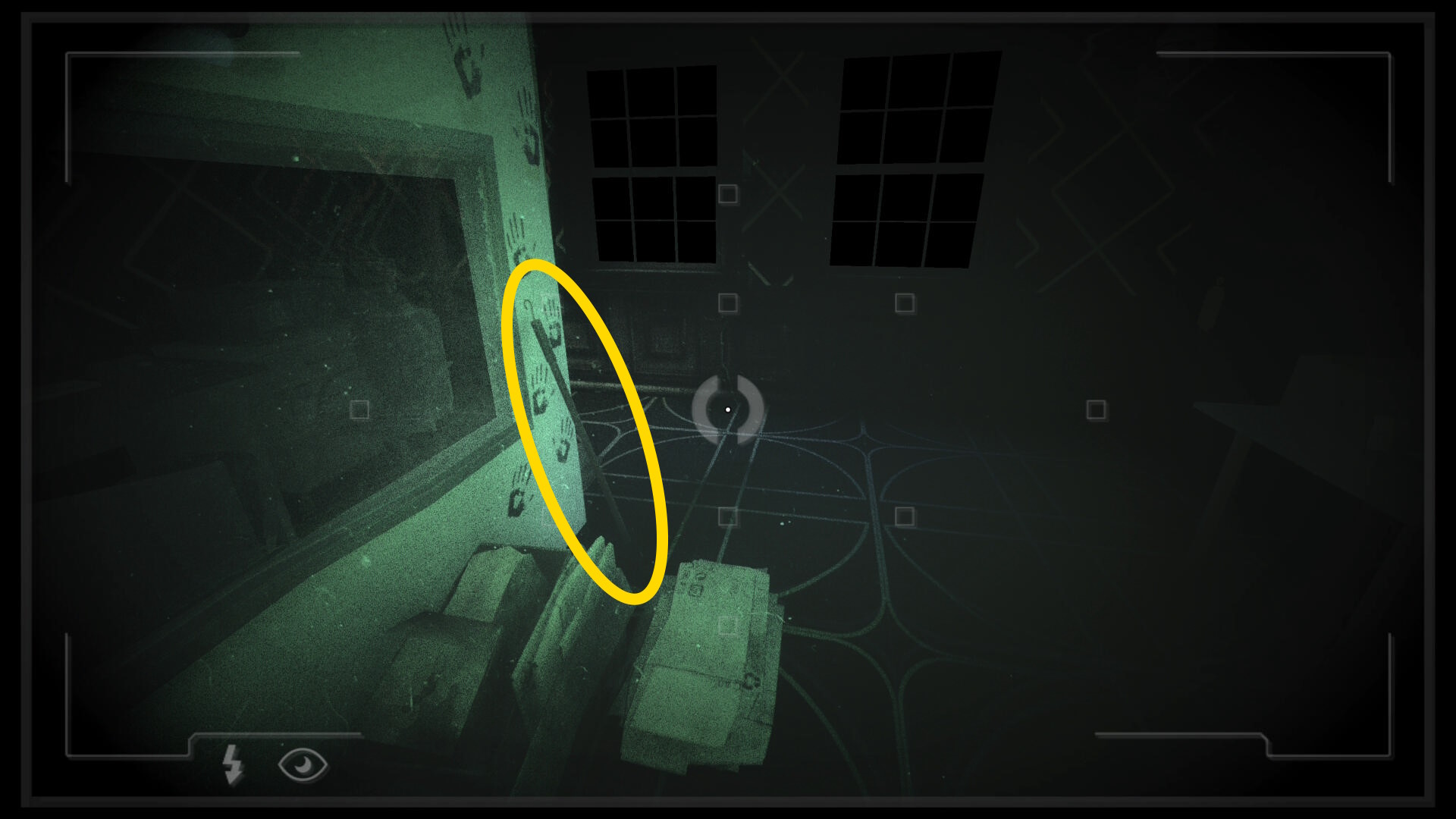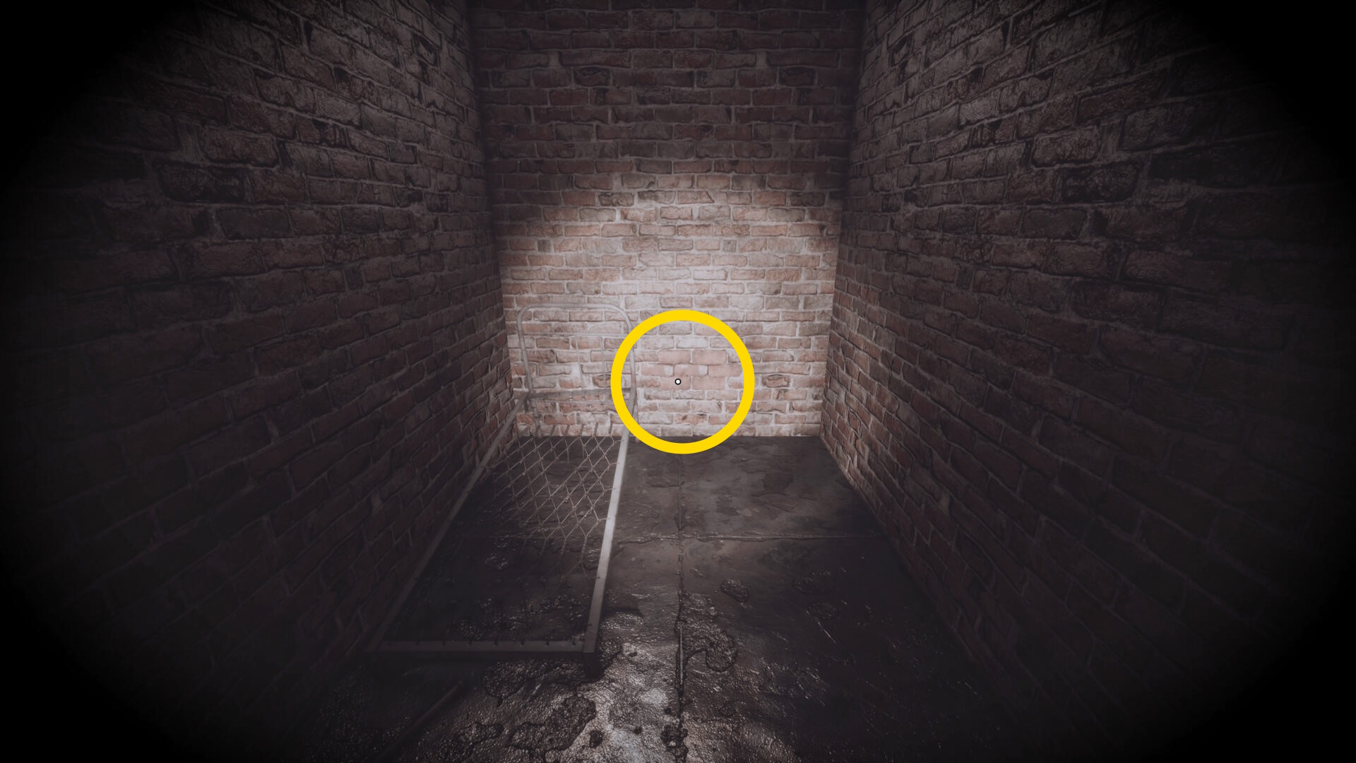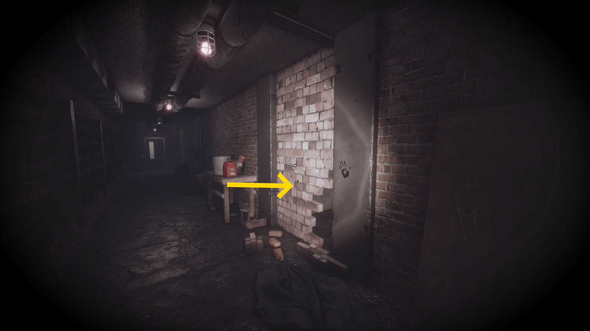 • 突き当りのドアを開け、暗視カメラを発動して右前方のレンガの通過